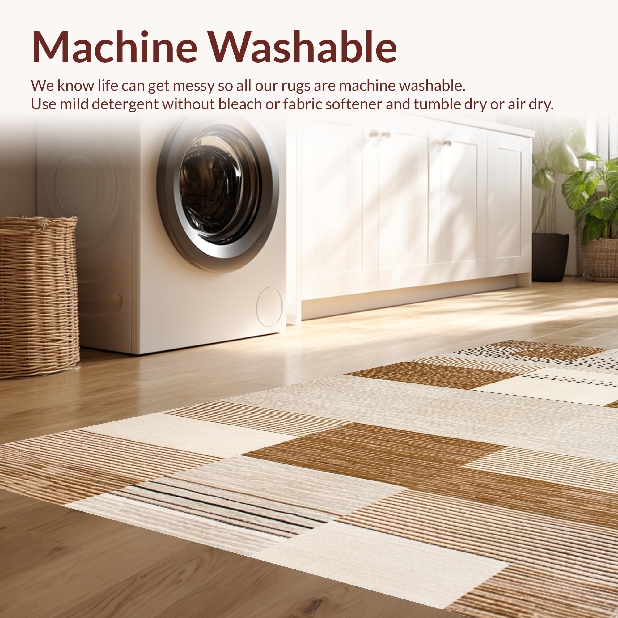 - Machine Washable: Our rugs can be easily thrown in the wash machine.