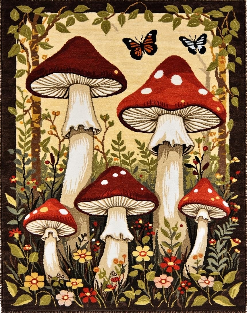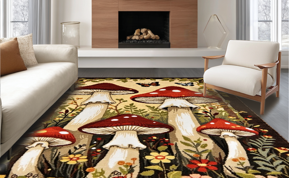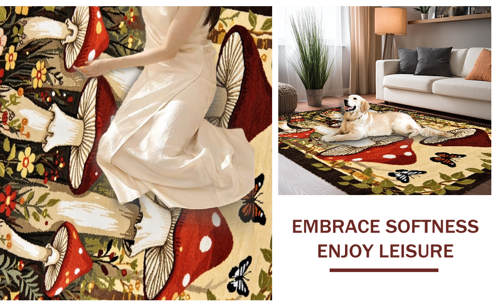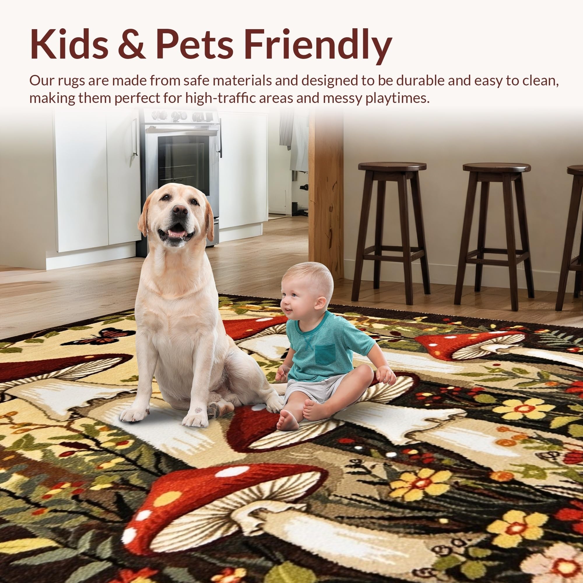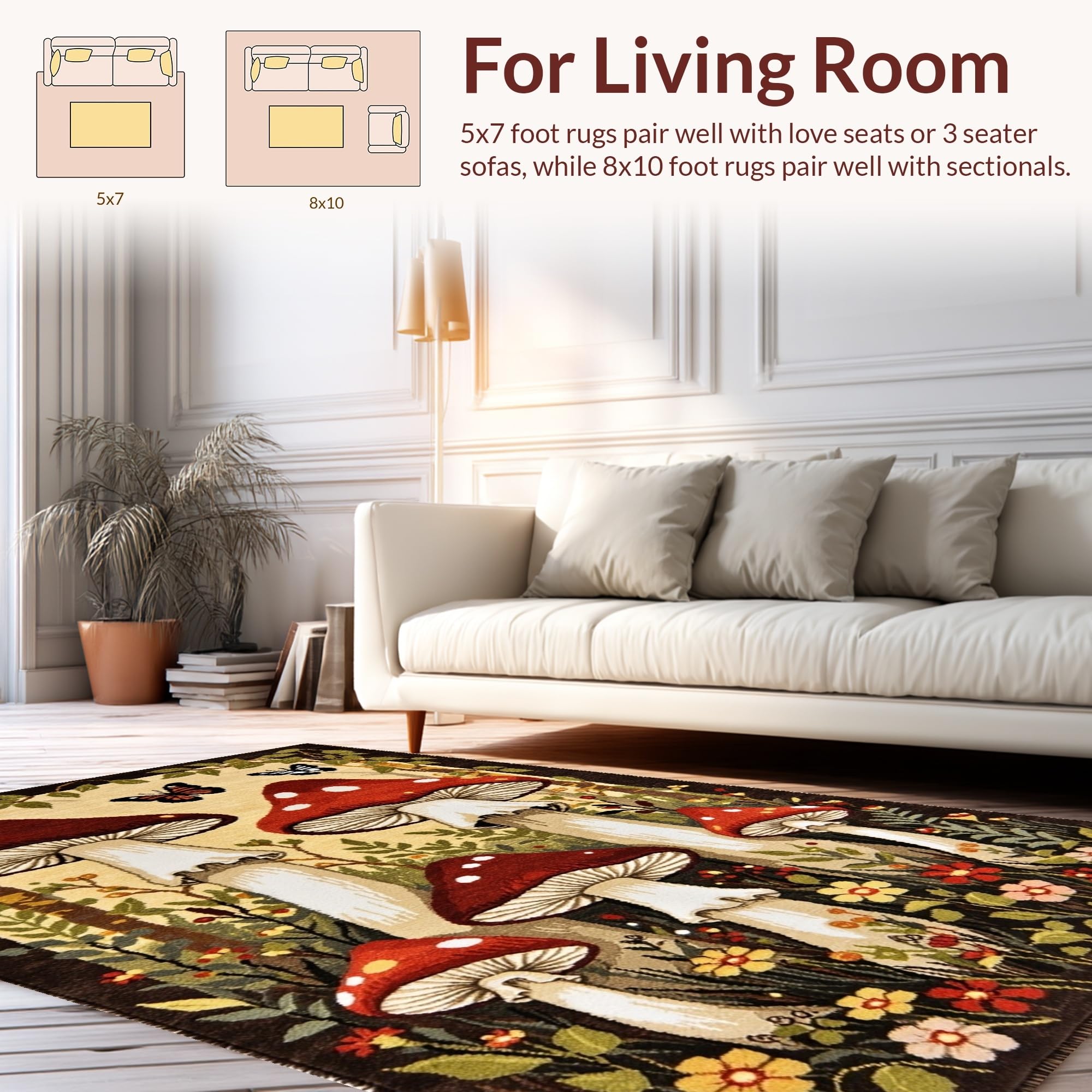 Ultra Soft Area Rug, Non Slip, Stain Resistant, Washable Area Rugs for Living Room, Bedroom, Artistic Nature-Themed Design(Red) Overview: