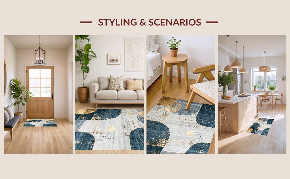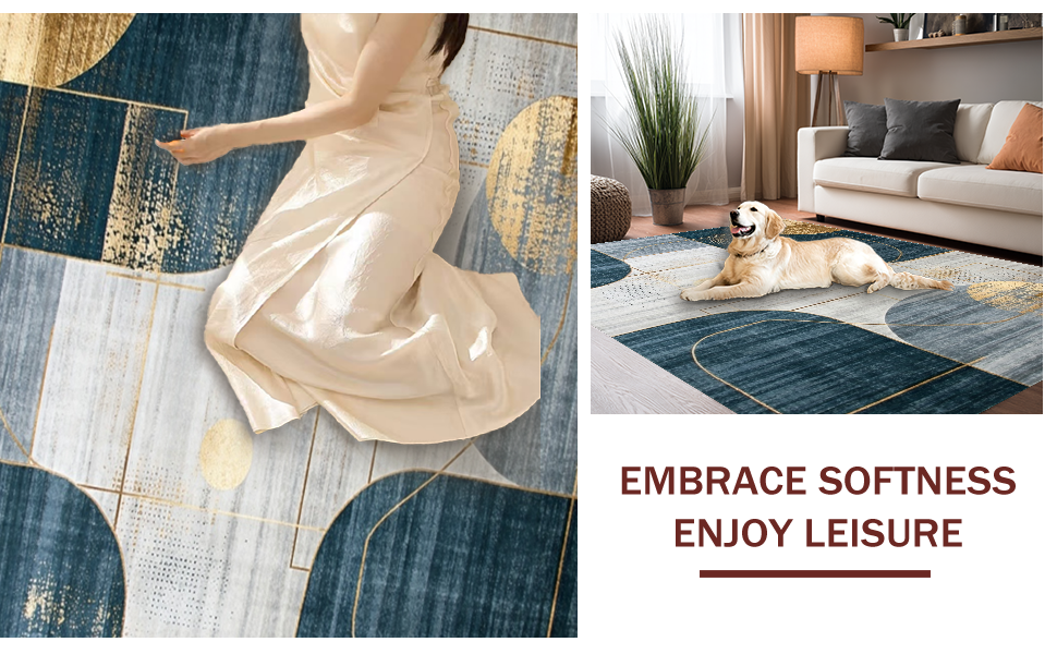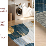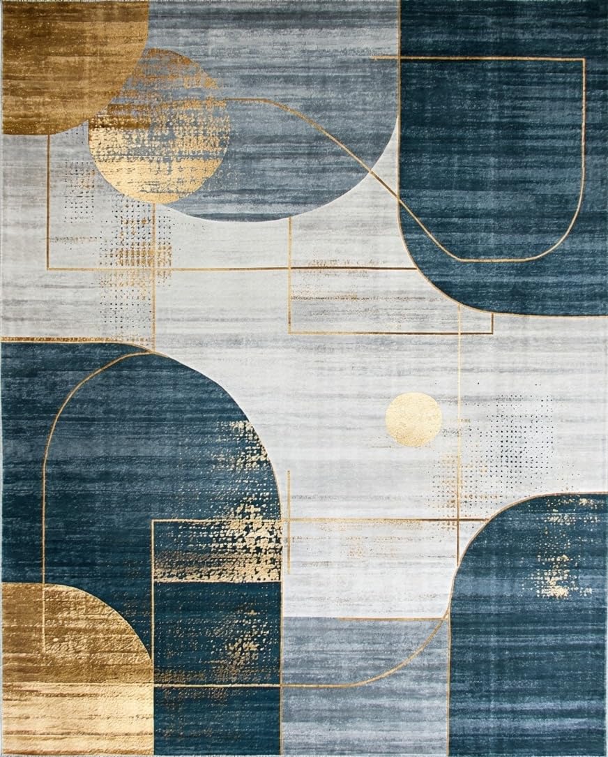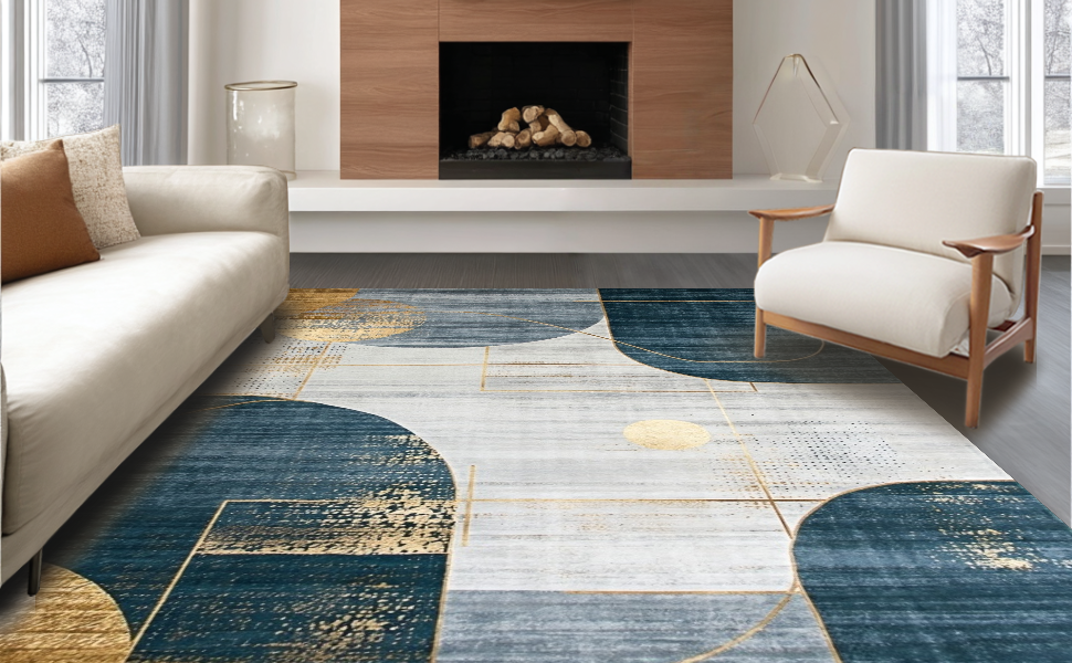 Ultra Soft Area Rug, Non Slip, Stain Resistant, Washable Area Rugs for Living Room, Bedroom, Artistic Navy and Gold Mosaic Theme(Blue) Overview: