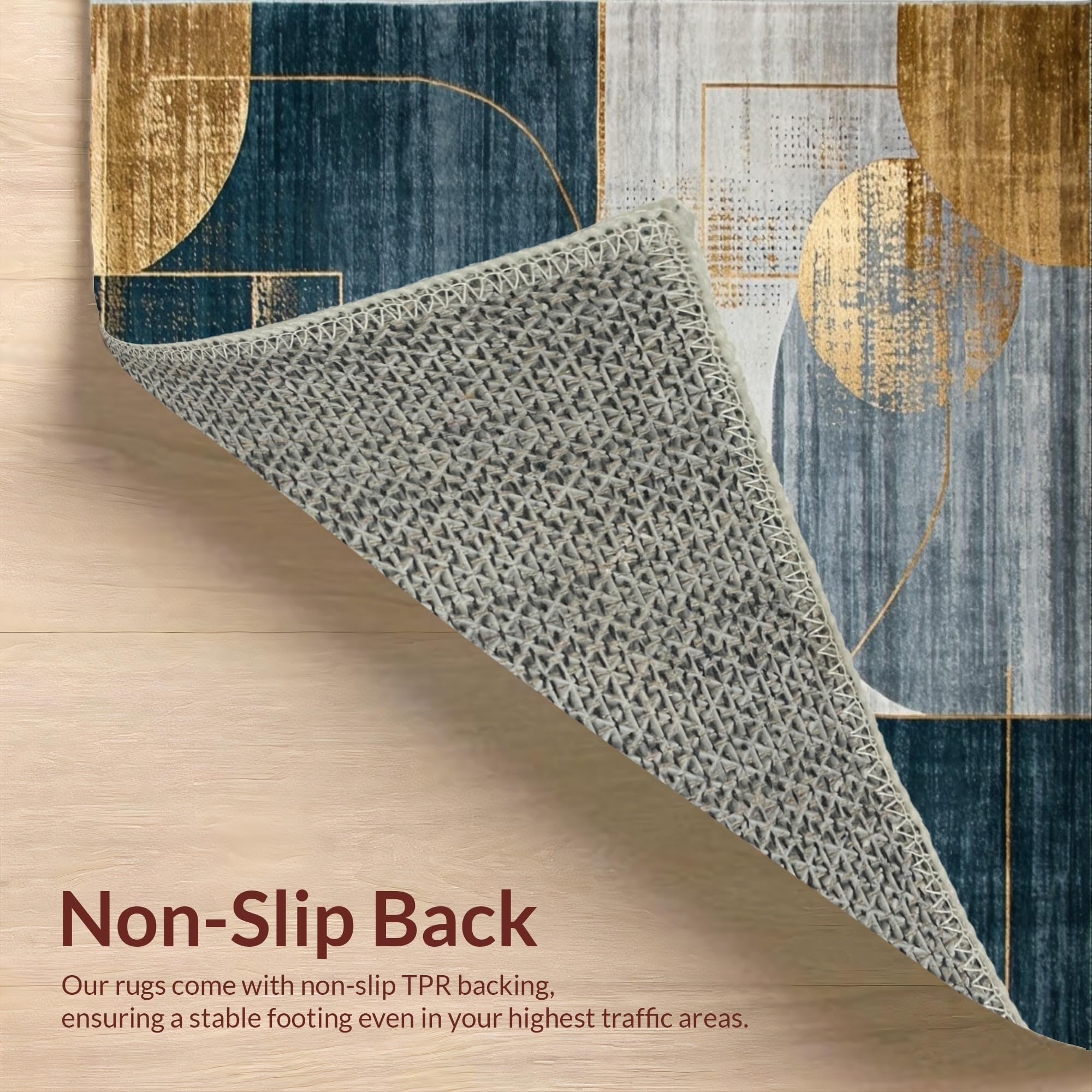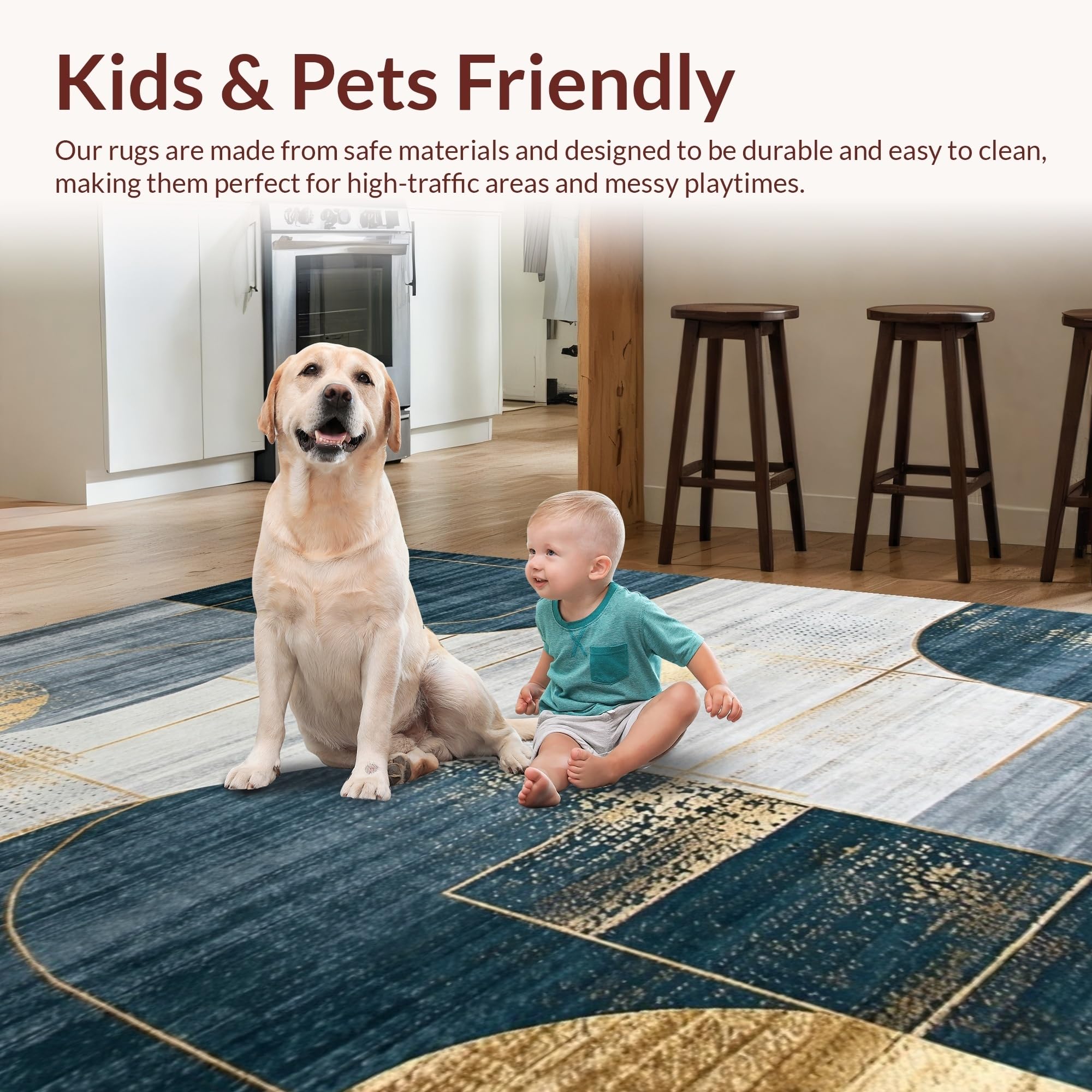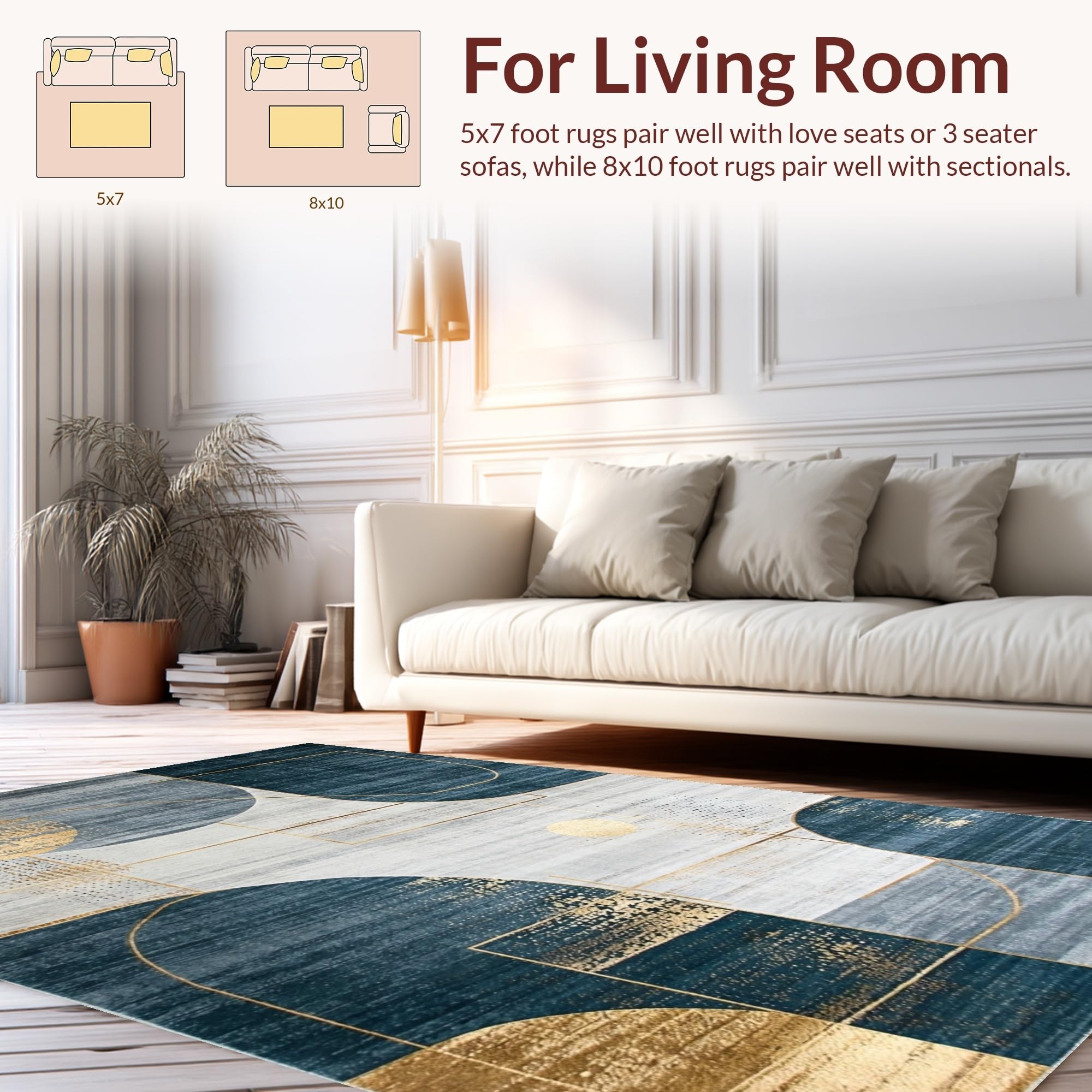 Ultra Soft Area Rug, Non Slip, Stain Resistant, Washable Area Rugs for Living Room, Bedroom, Artistic Navy and Gold Mosaic Theme(Blue) Overview: