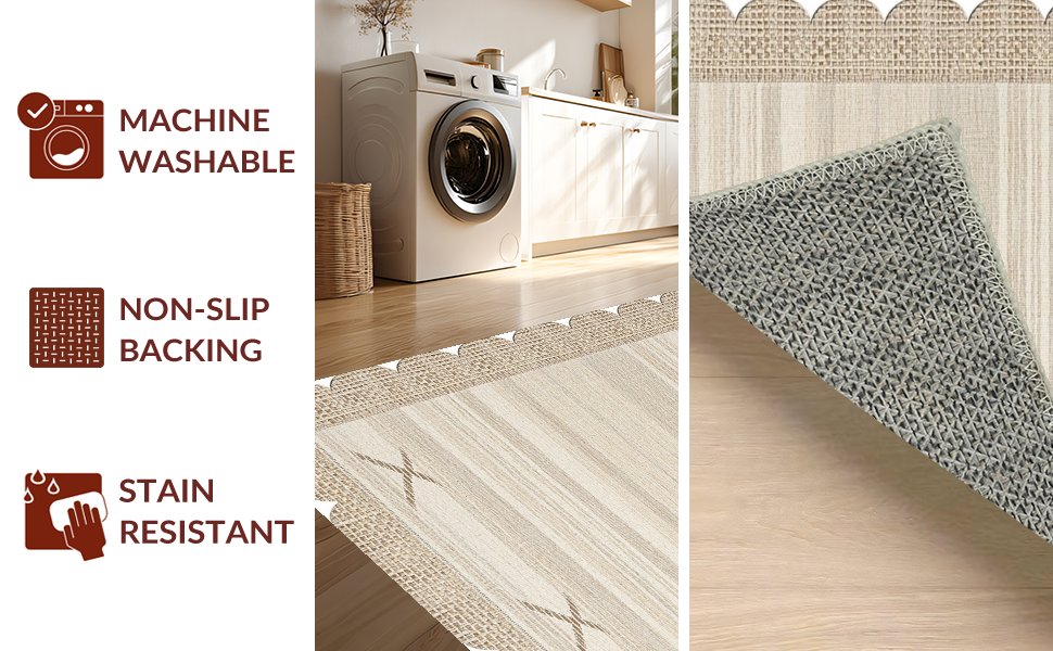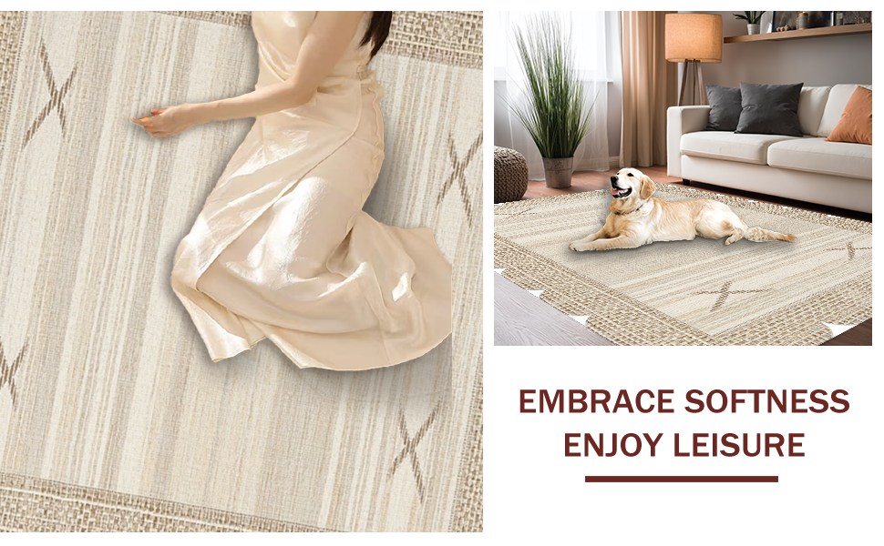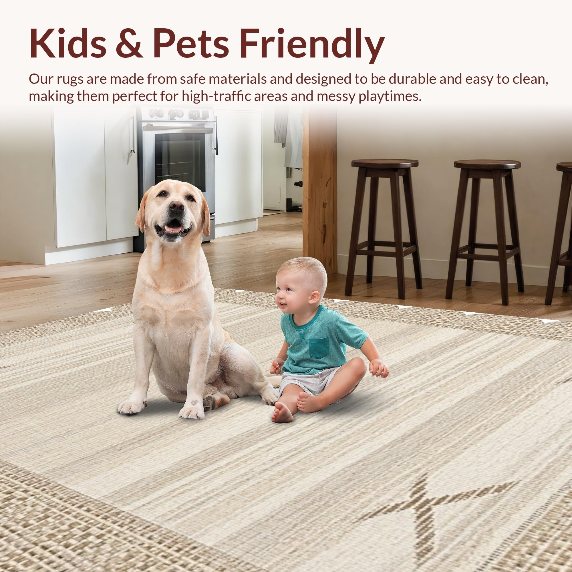 Ultra Soft Area Rug, Non Slip, Stain Resistant, Washable Area Rugs for Living Room, Bedroom, Artistic Neutral Color Palette Design(Beige) Overview: