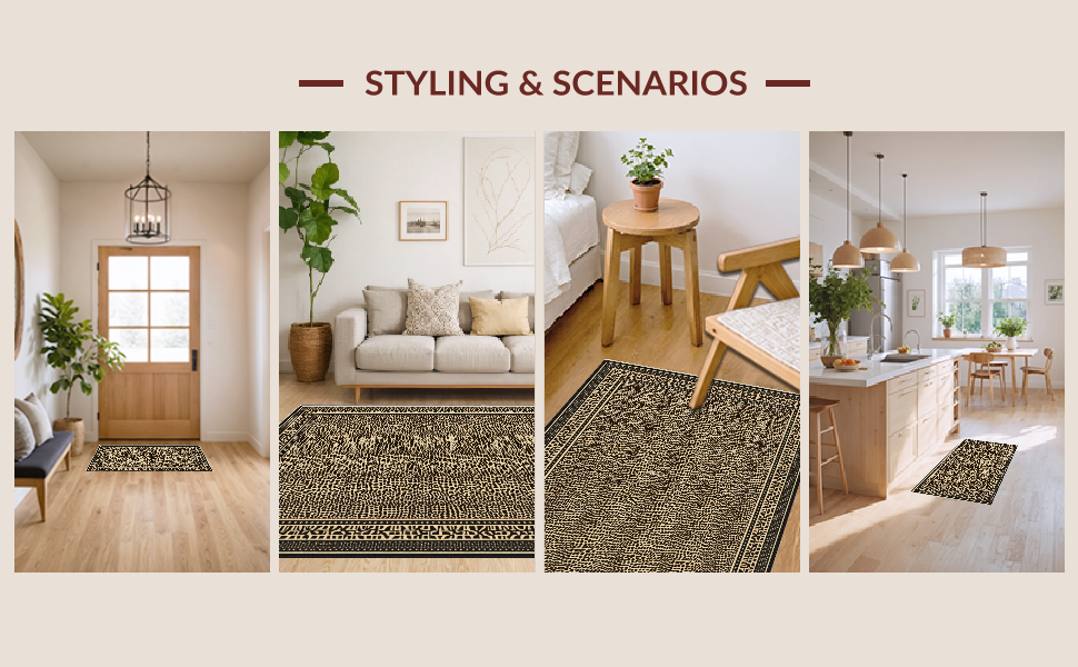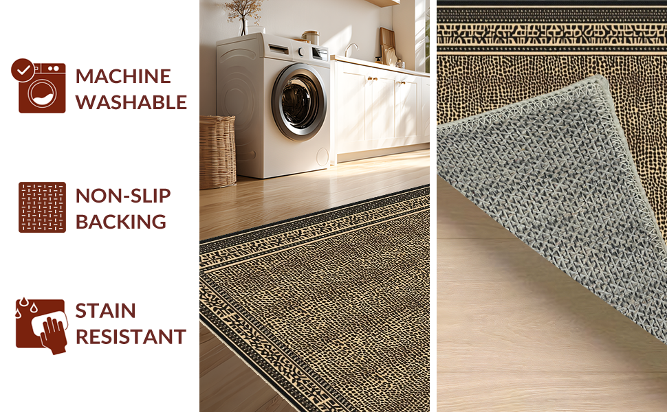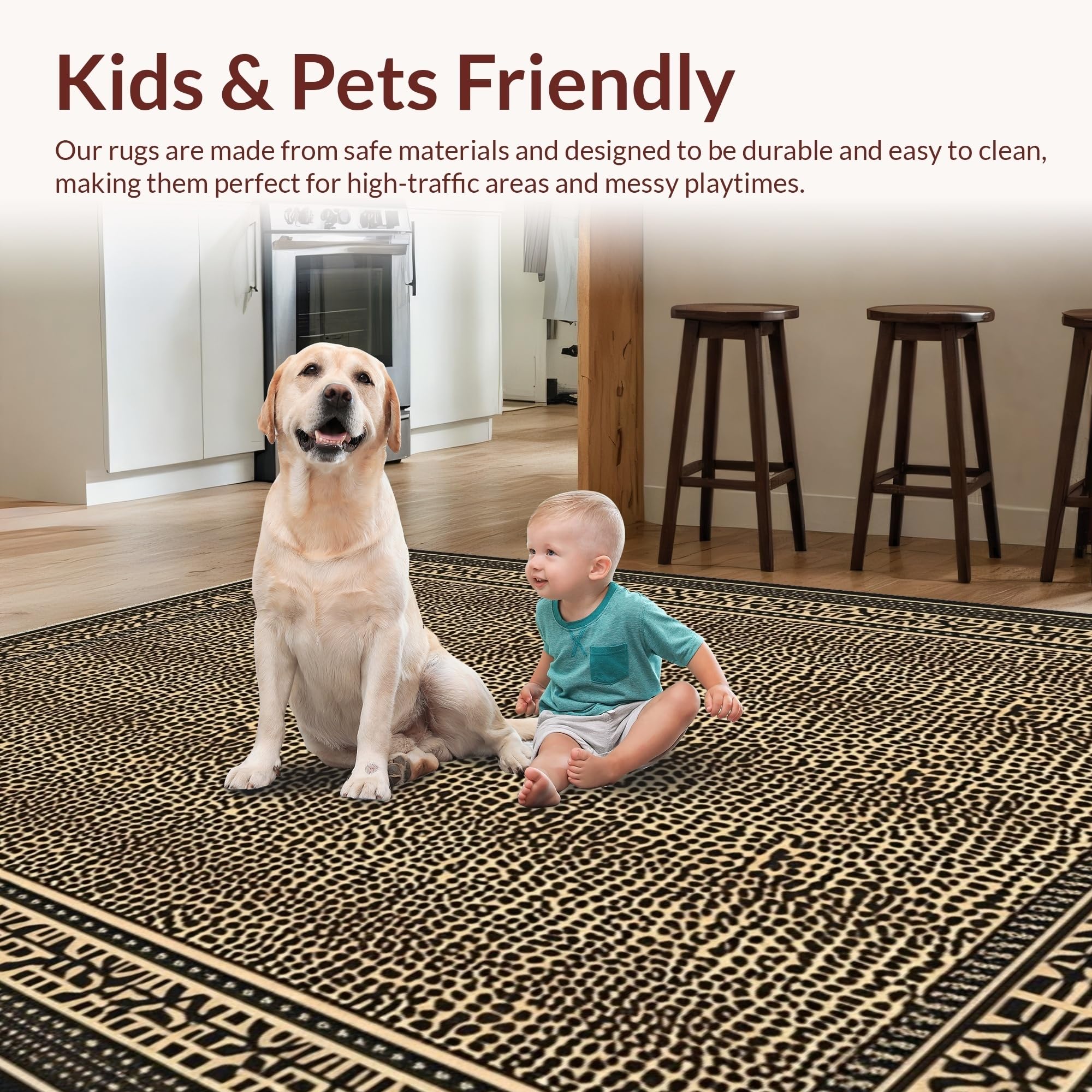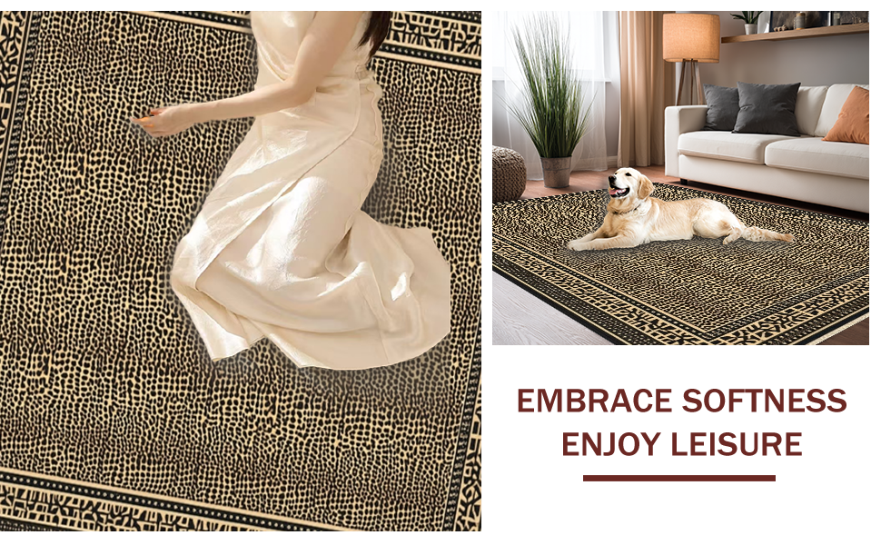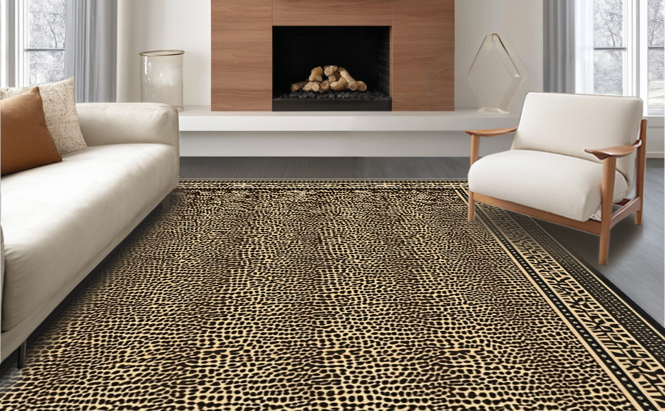Ultra Soft Area Rug, Non Slip, Stain Resistant, Washable Area Rugs for Living Room, Bedroom, Artistic Neutral Safari Influence(Beige) Overview:
