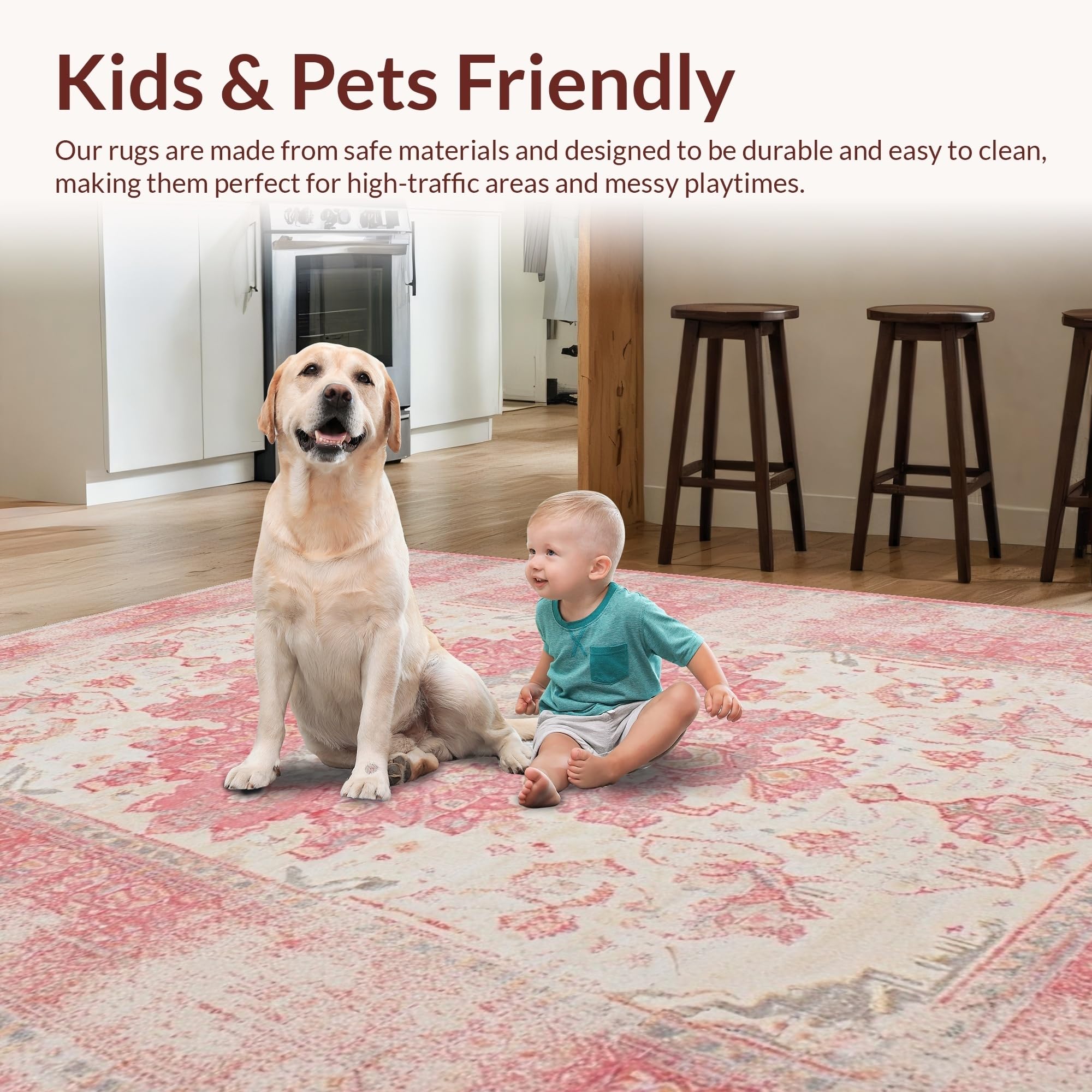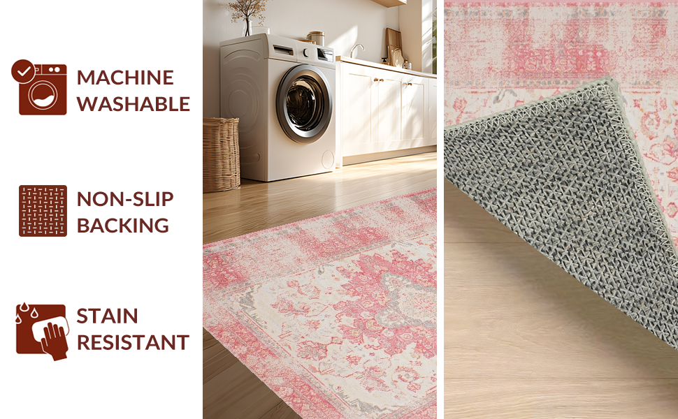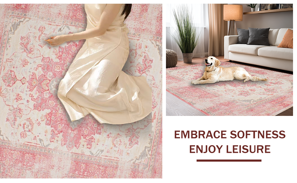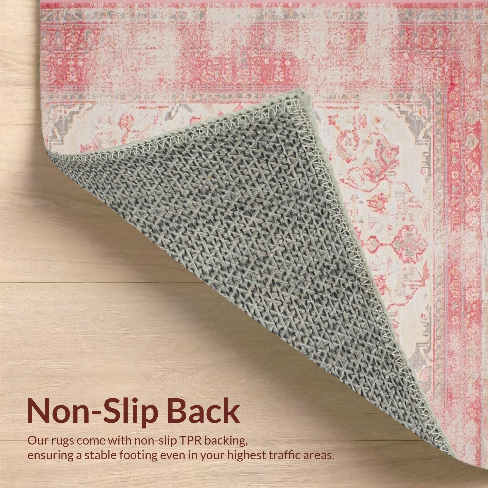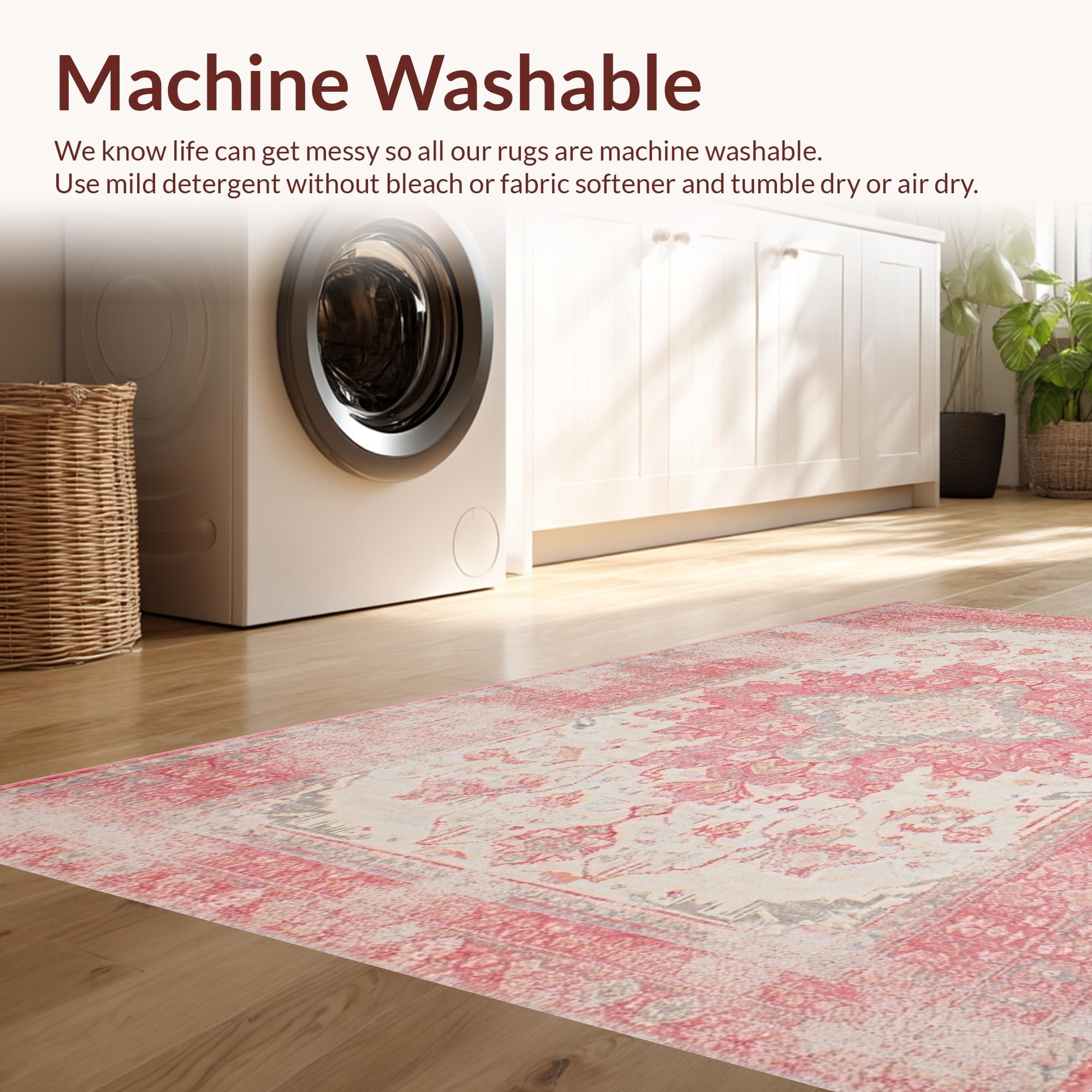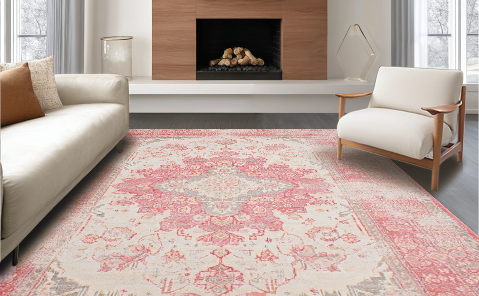 Ultra Soft Area Rug, Non Slip, Stain Resistant, Washable Area Rugs for Living Room, Bedroom, Artistic Nostalgic Swirl Design(Pink) Overview: