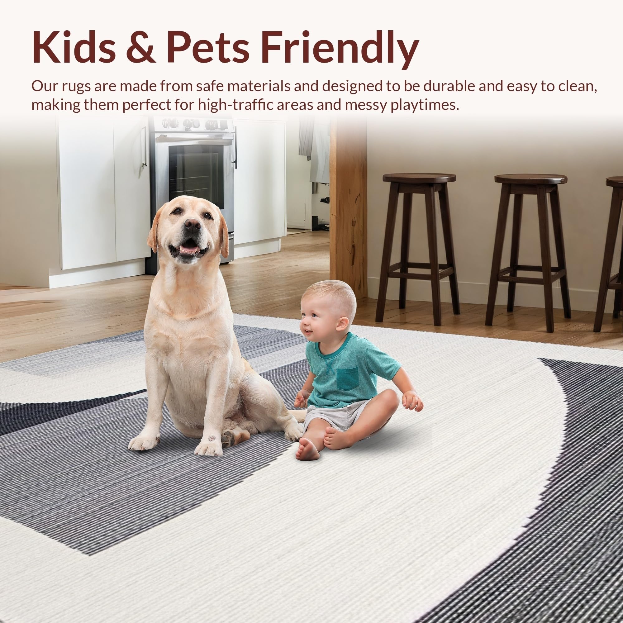 Ultra Soft Area Rug, Non Slip, Stain Resistant, Washable Area Rugs for Living Room, Bedroom, Artistic Ogee Patterned Accent Piece(Gray) Overview: