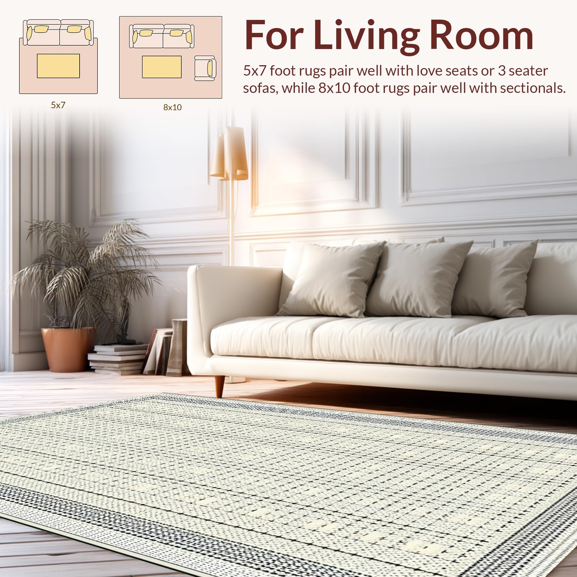 Ultra Soft Area Rug, Non Slip, Stain Resistant, Washable Area Rugs for Living Room, Bedroom, Artistic Ogee Patterned Aesthetic(Beige) Overview: