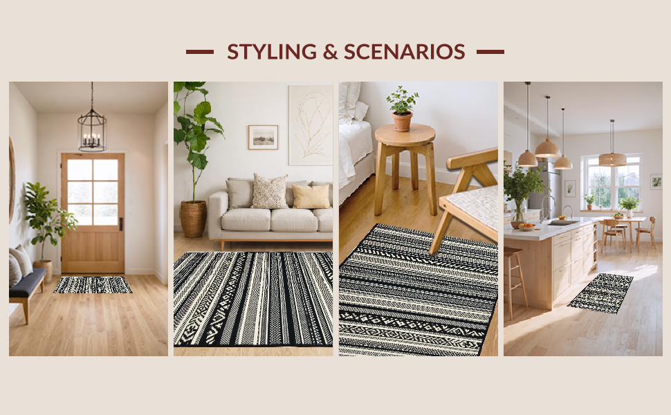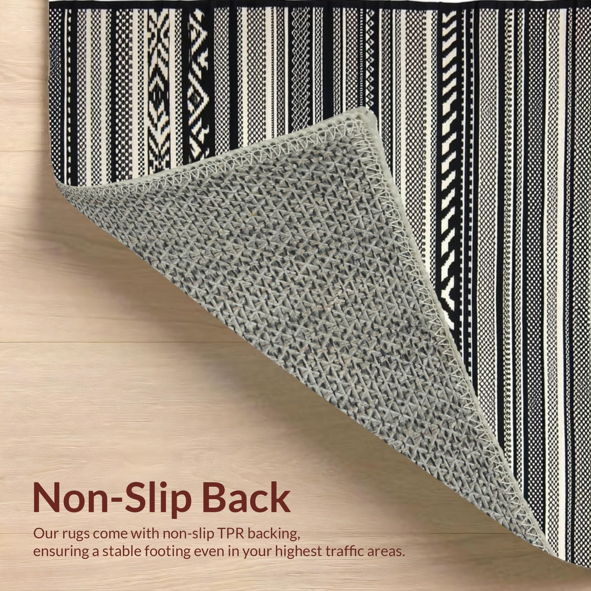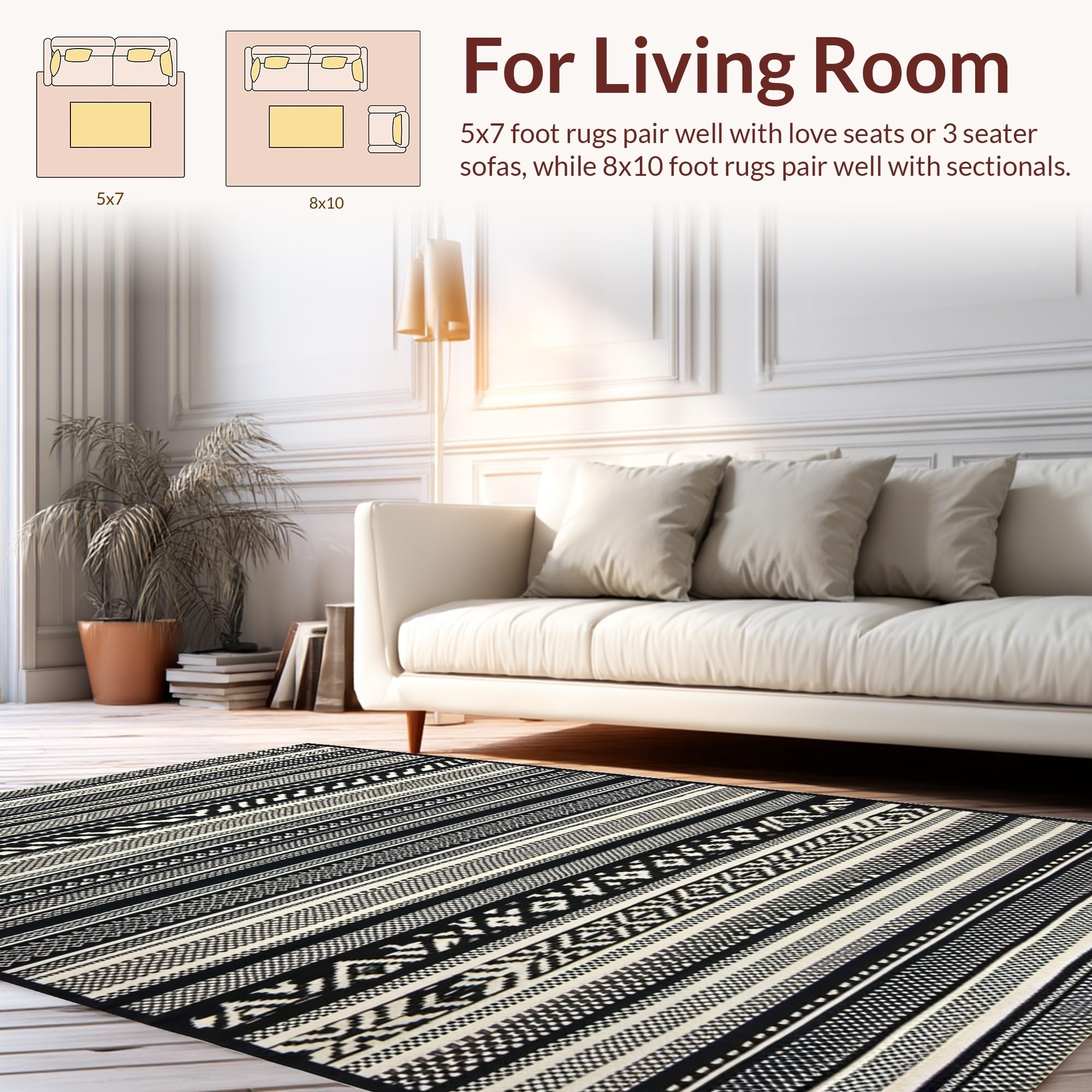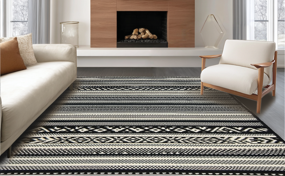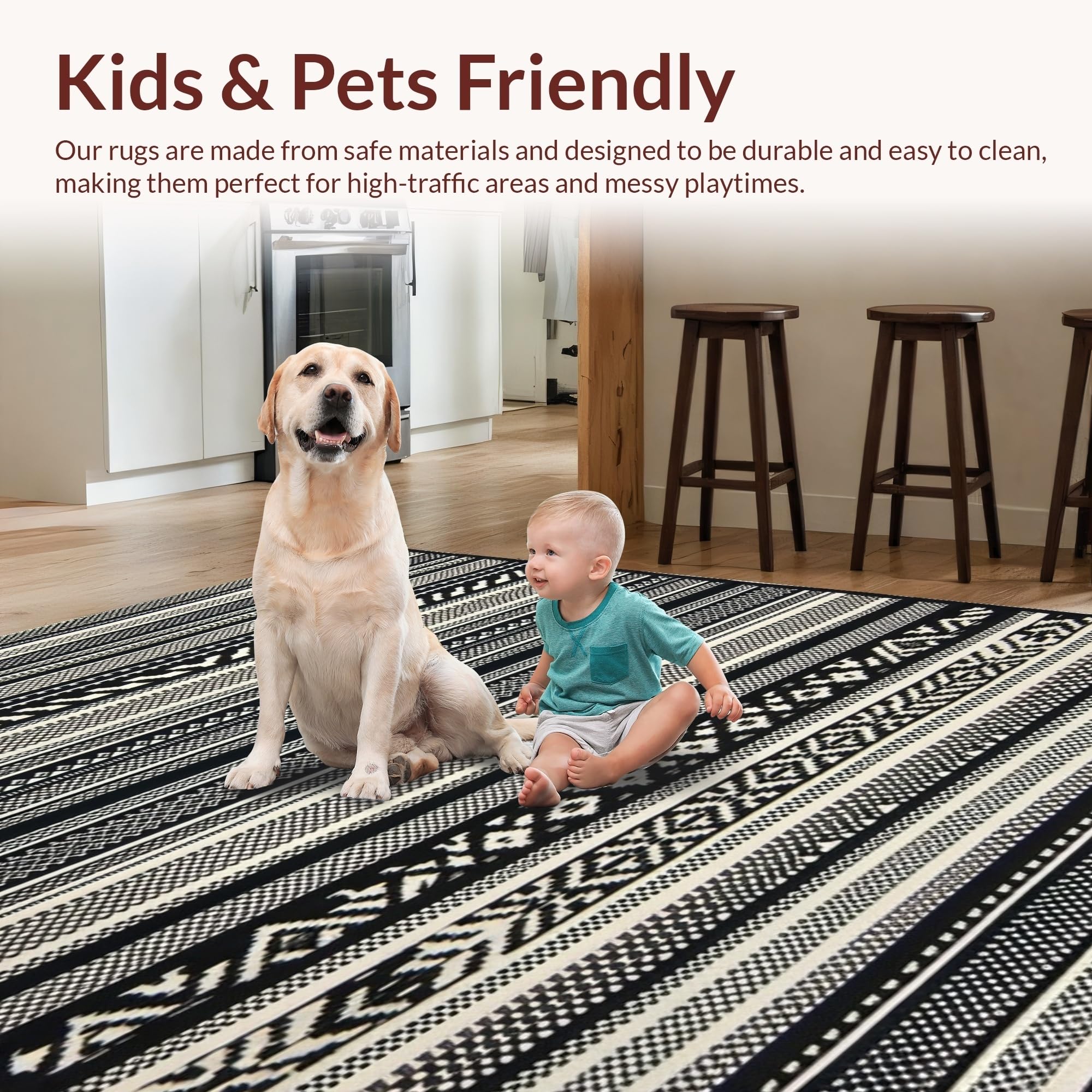 Ultra Soft Area Rug, Non Slip, Stain Resistant, Washable Area Rugs for Living Room, Bedroom, Artistic Ogee Print with Fringe Detail(Black) Overview:
