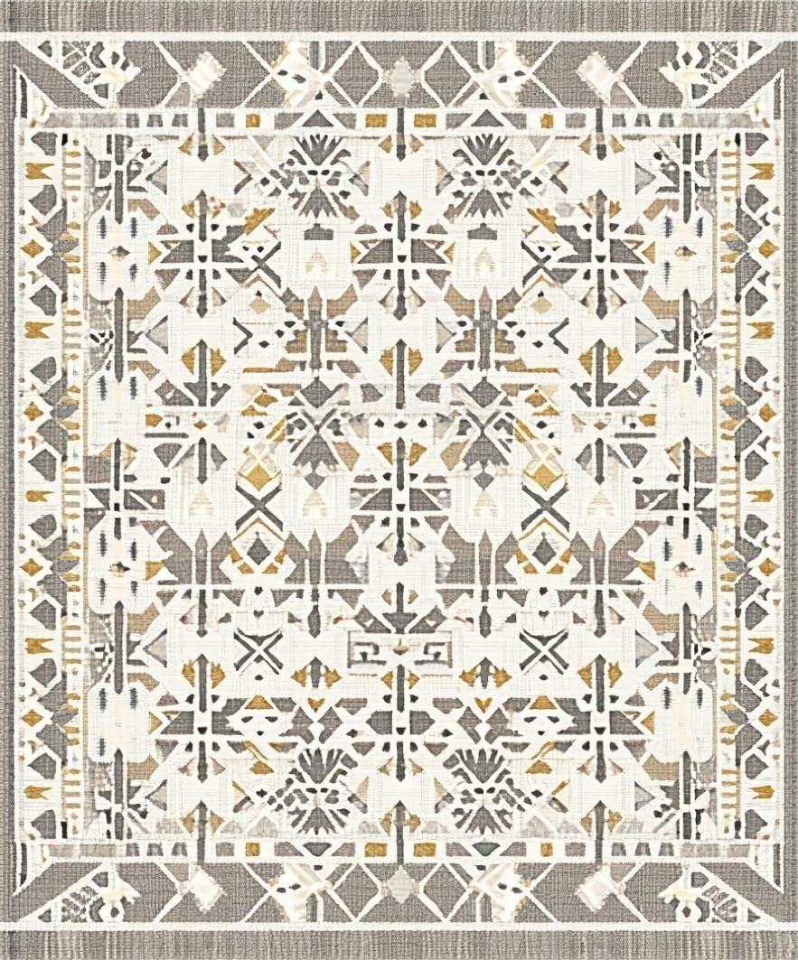 Ultra Soft Area Rug, Non Slip, Stain Resistant, Washable Area Rugs for Living Room, Bedroom, Artistic Ogee Shape Concept(Beige) Overview: