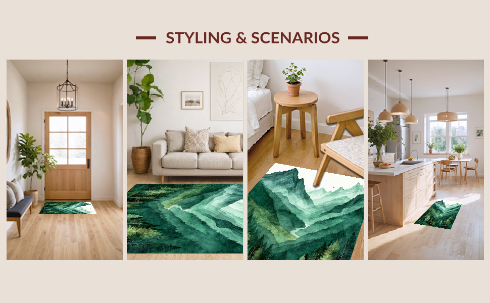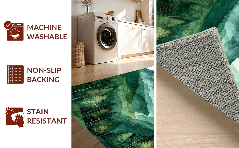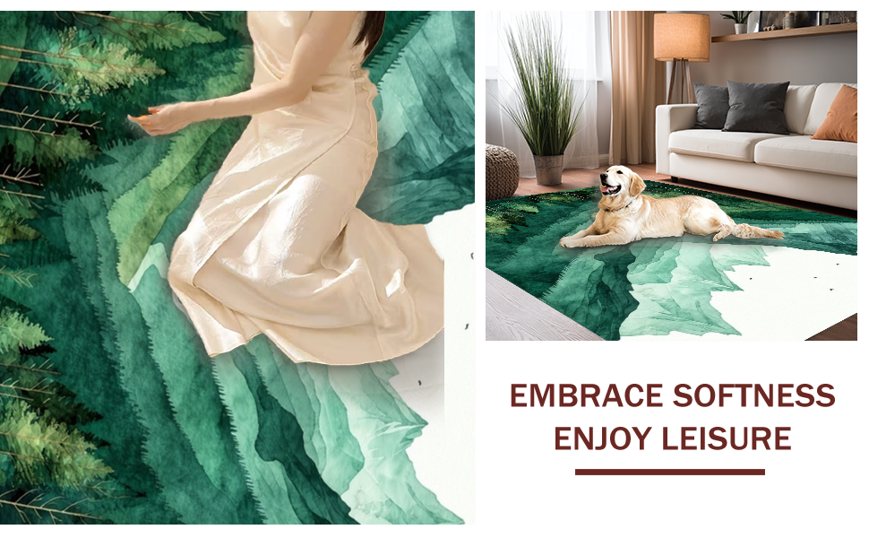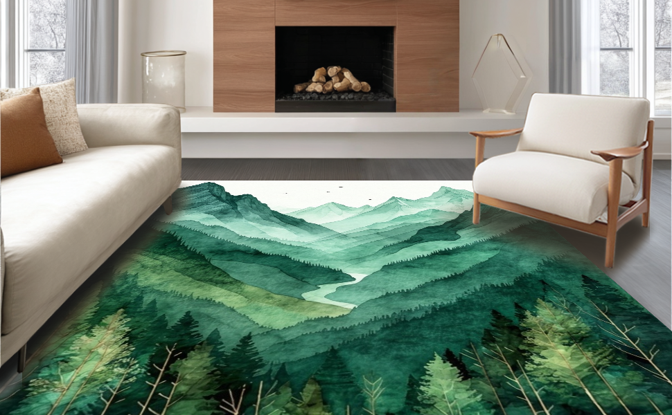 Ultra Soft Area Rug, Non Slip, Stain Resistant, Washable Area Rugs for Living Room, Bedroom, Artistic Outdoor Mountain Motif Mat(Green) Overview: