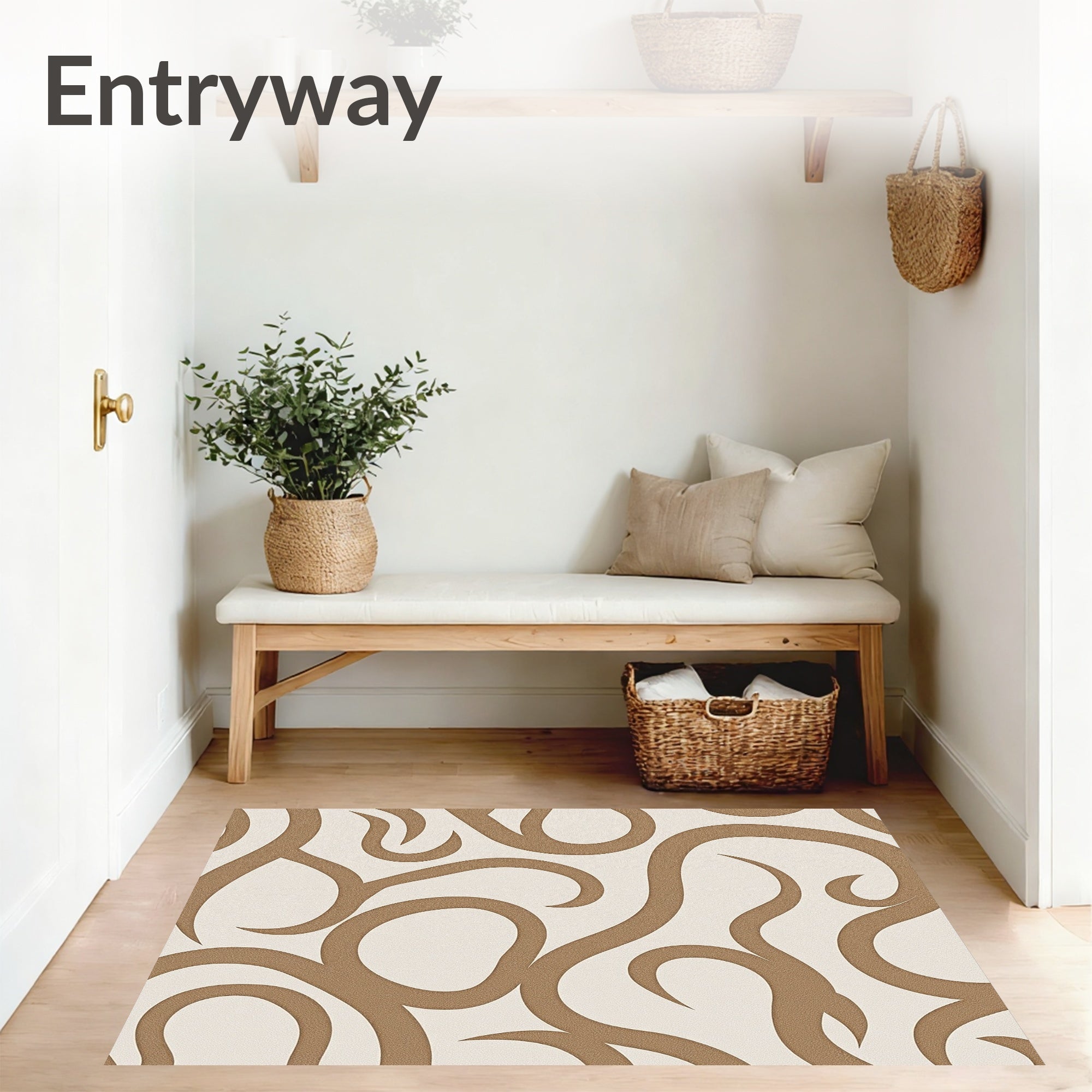 Flatwoven High Traffic Area Rug, Artistic Pebble Mosaic Marbled Textural Wave, Non Slip, Stain Resistant, Washable Area Rugs for Living Room, Bedroom (Brown) Overview: