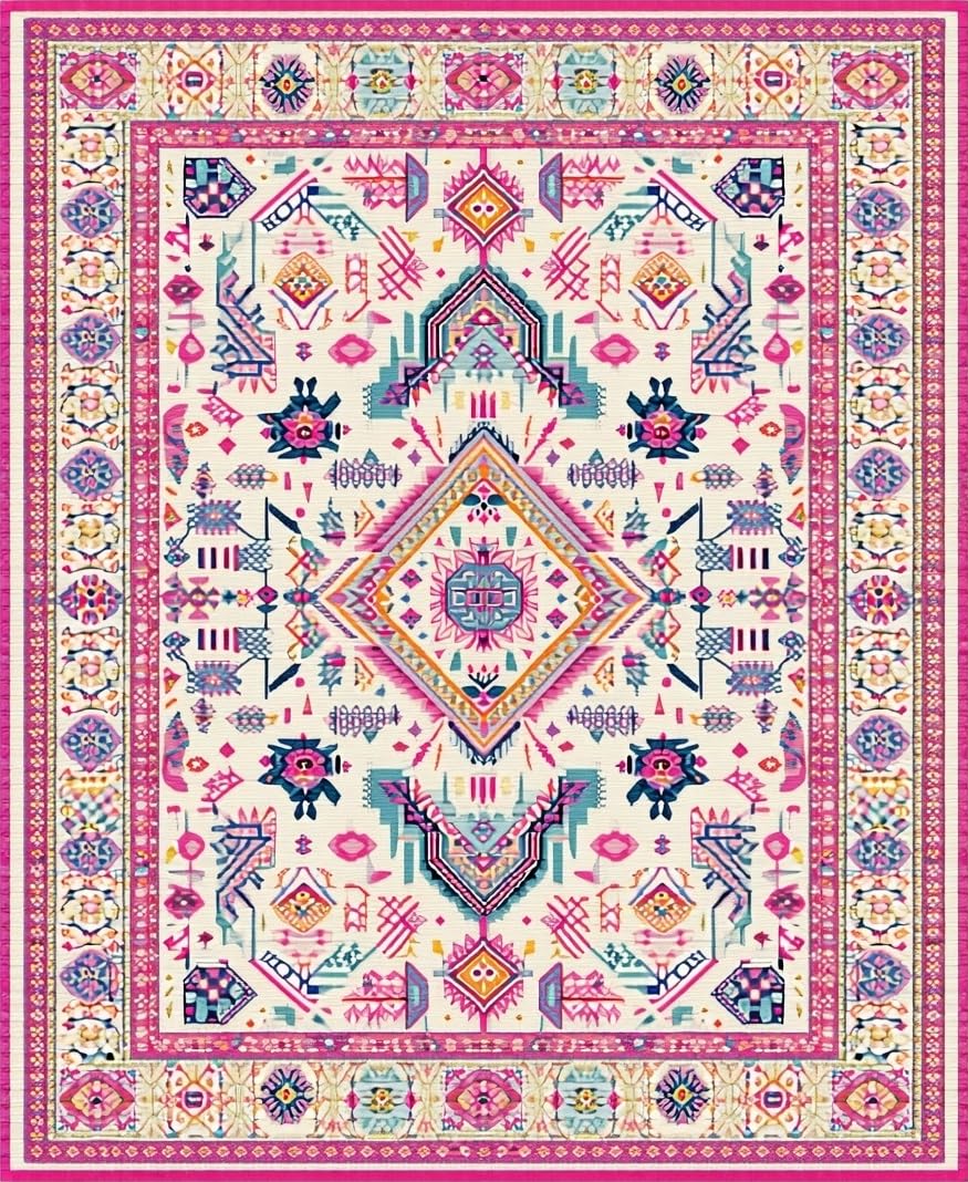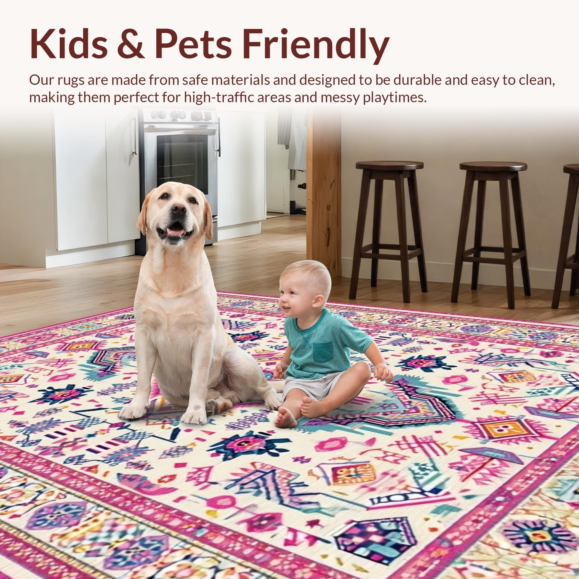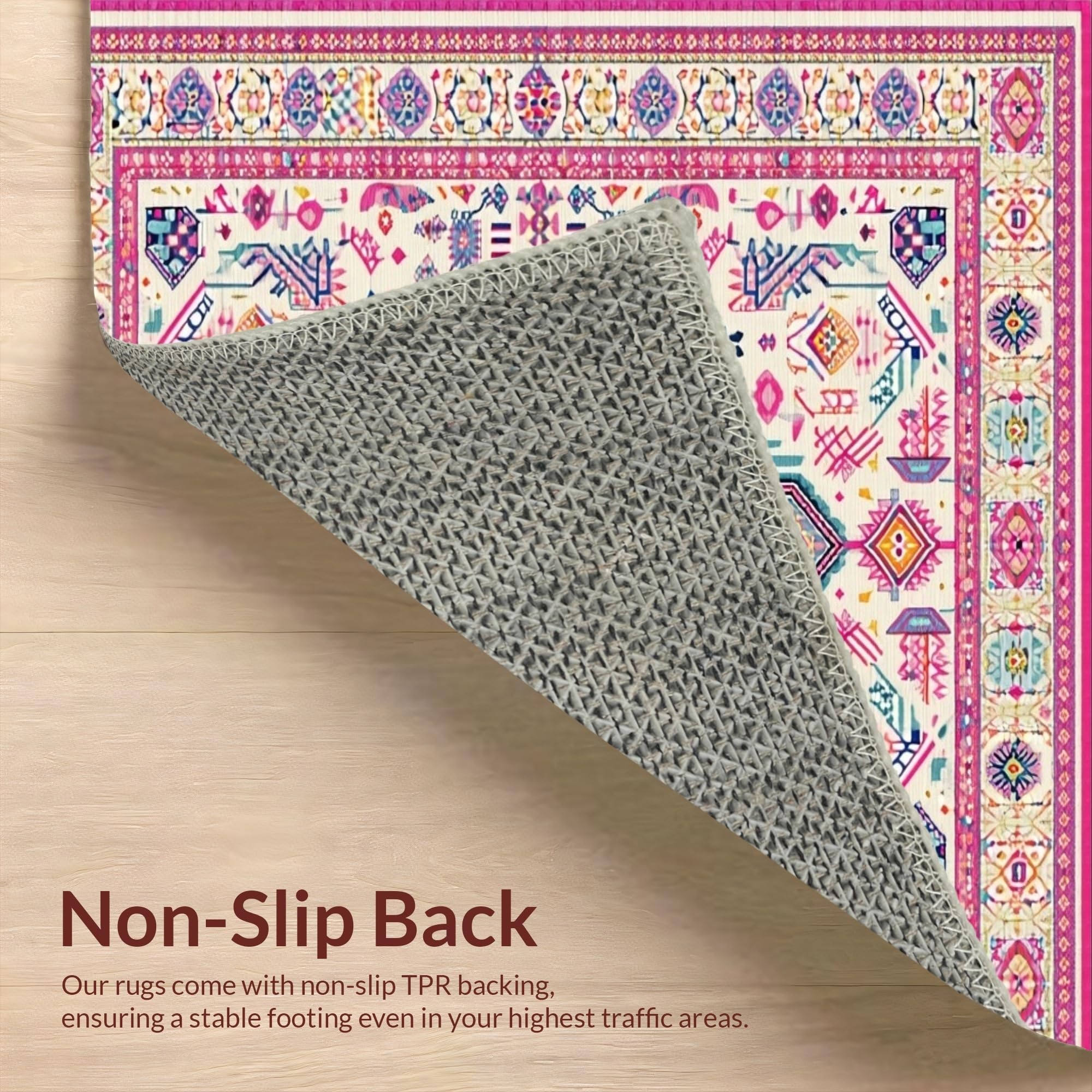 Ultra Soft Area Rug, Non Slip, Stain Resistant, Washable Area Rugs for Living Room, Bedroom, Artistic Pink Medallion Fusion(White) Overview: