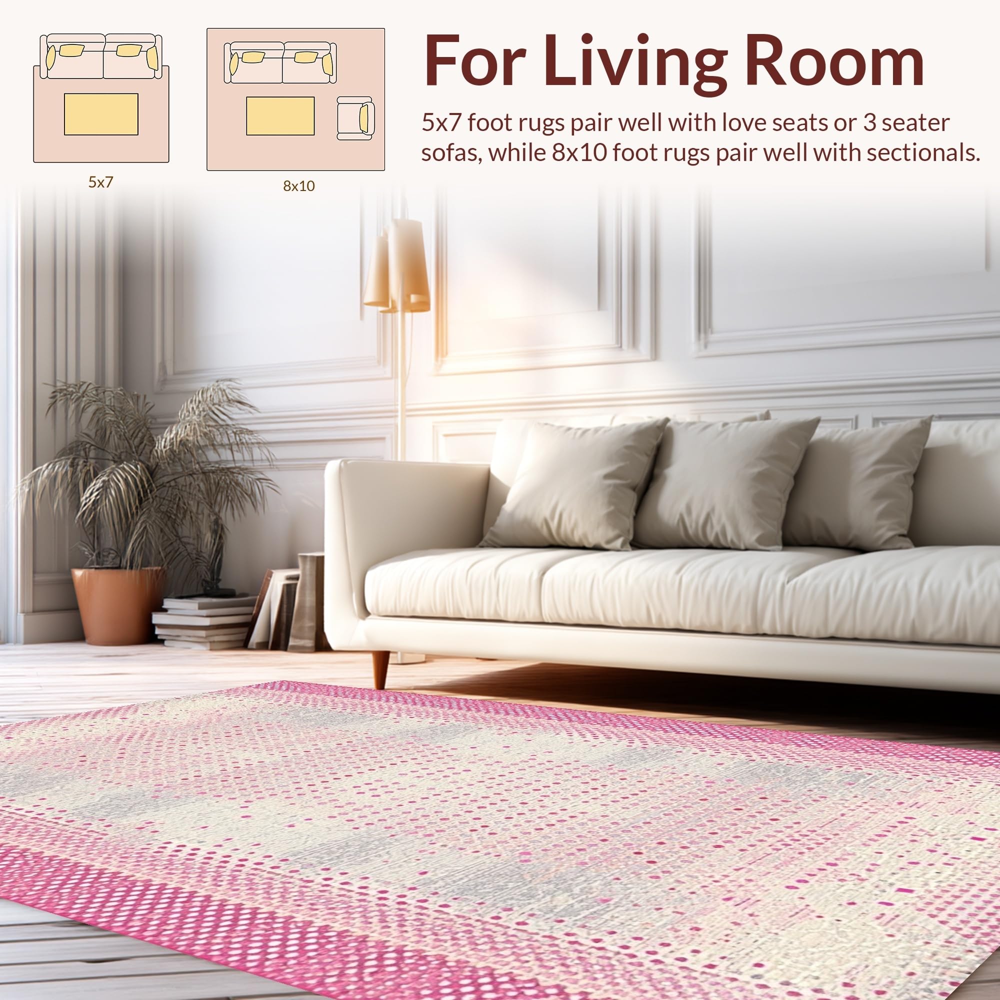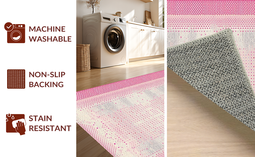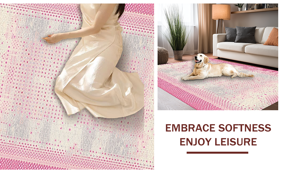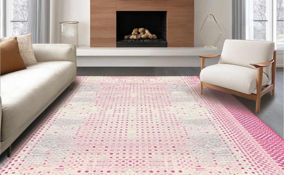 Ultra Soft Area Rug, Non Slip, Stain Resistant, Washable Area Rugs for Living Room, Bedroom, Artistic Plush Dot Composition(Pink) Overview: