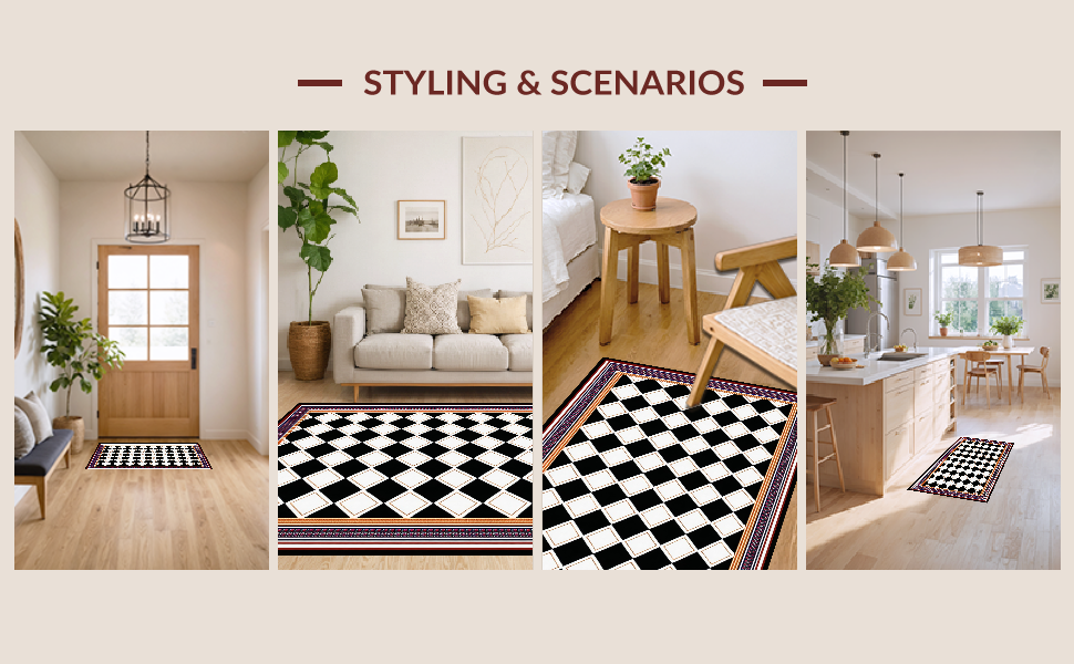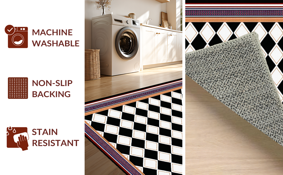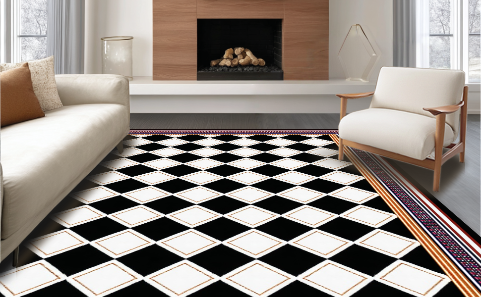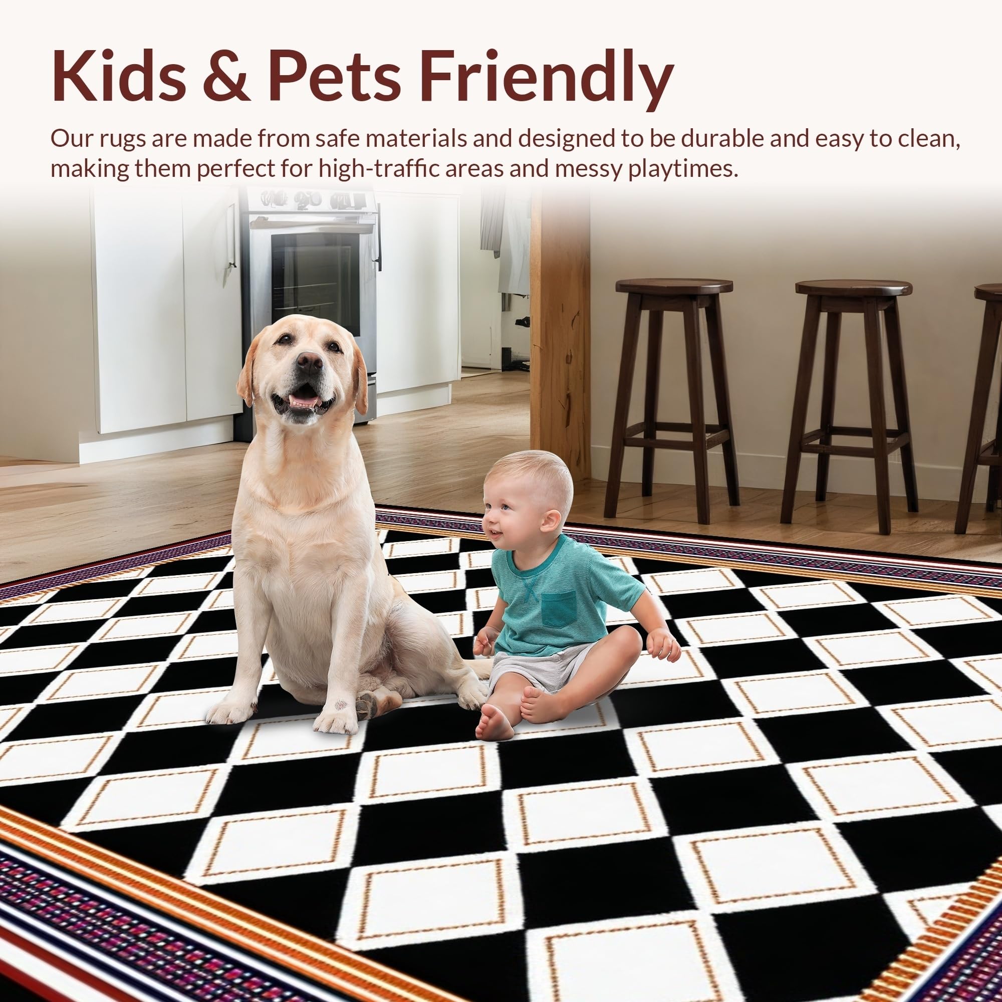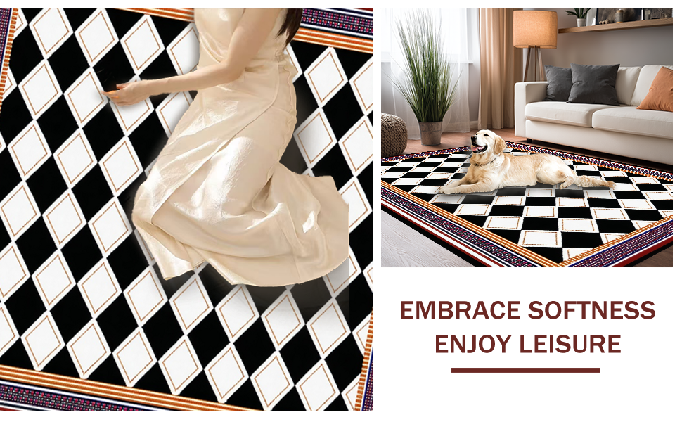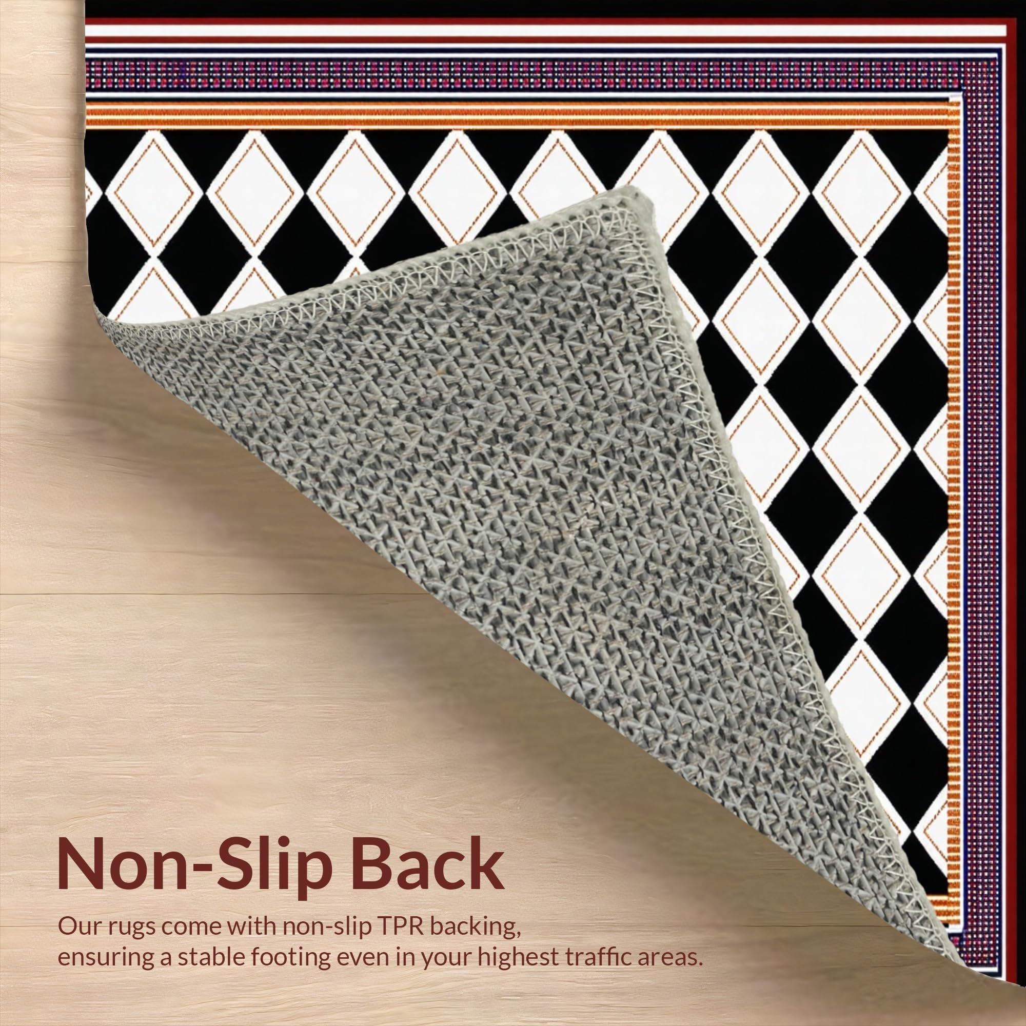 Ultra Soft Area Rug, Non Slip, Stain Resistant, Washable Area Rugs for Living Room, Bedroom, Artistic Retro-Inspired Geometric Layout(Black) Overview: