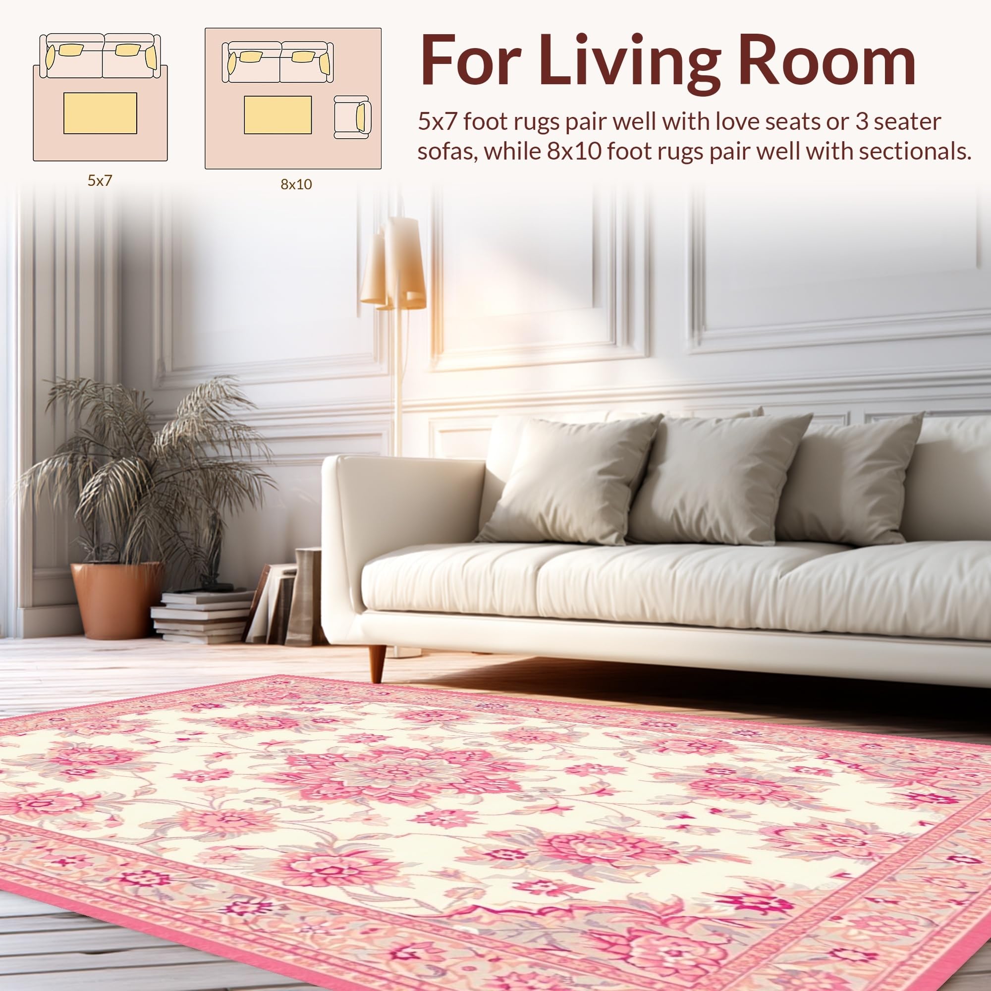 Ultra Soft Area Rug, Non Slip, Stain Resistant, Washable Area Rugs for Living Room, Bedroom, Artistic Round Nature-Inspired Design(Ivory) Overview: