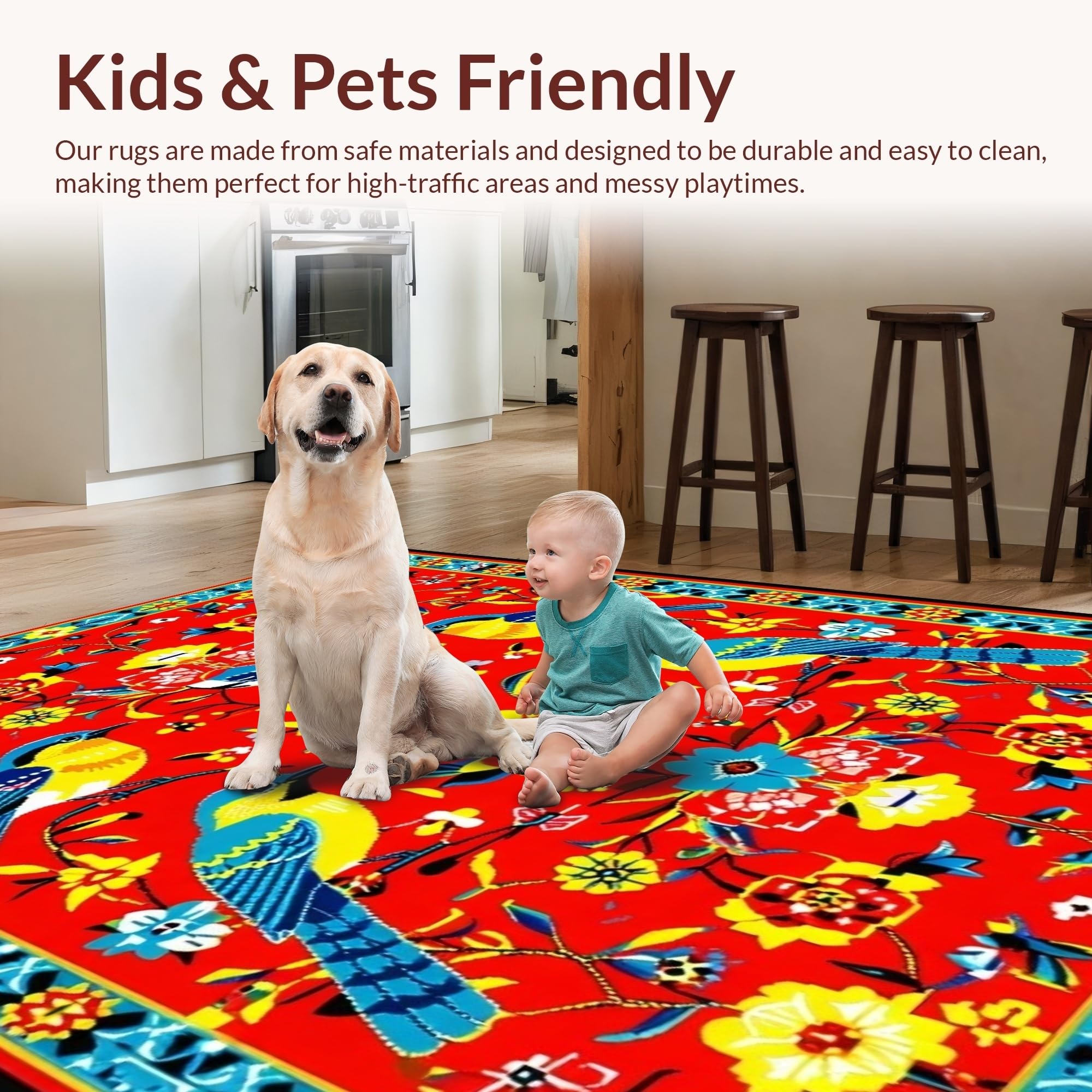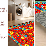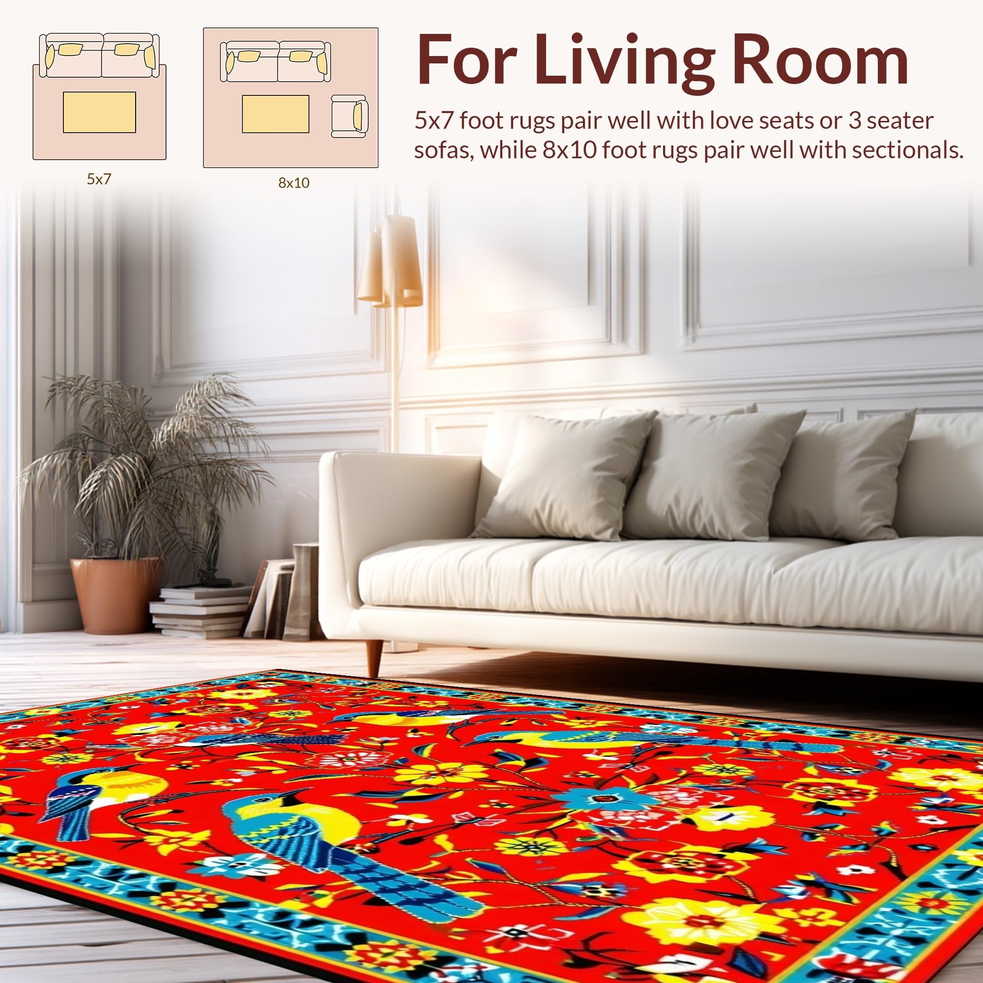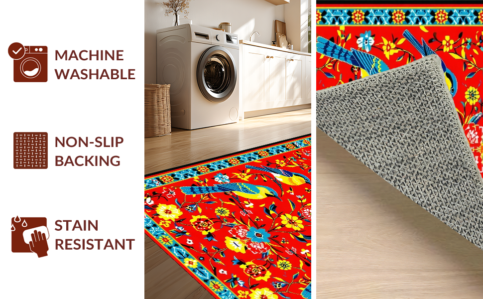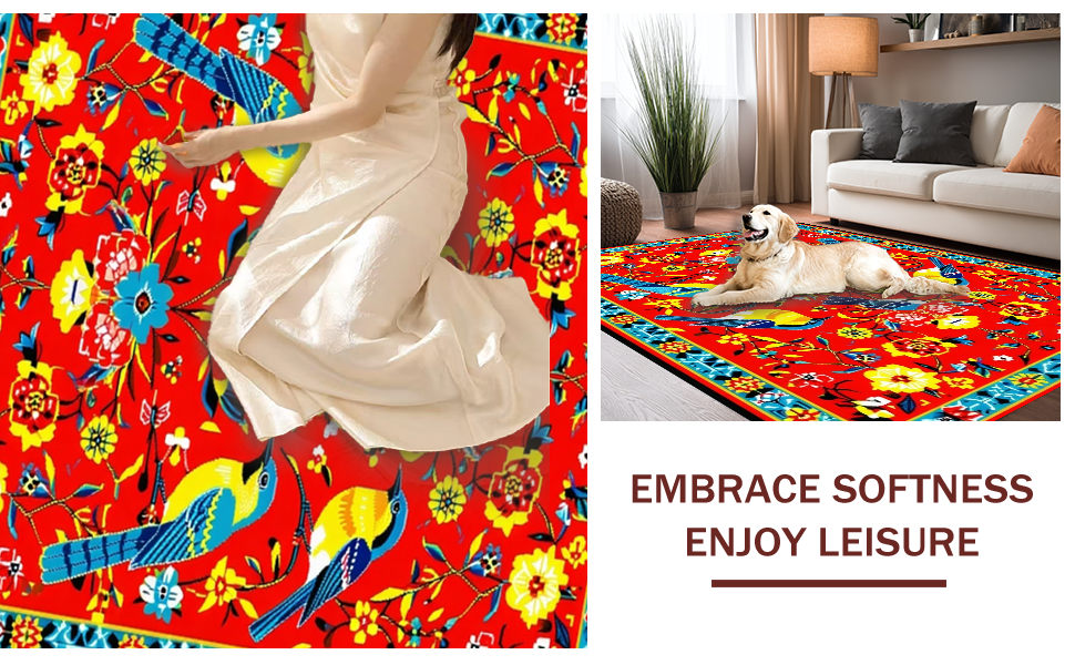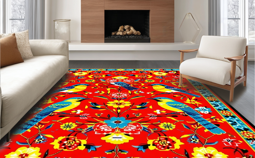 Ultra Soft Area Rug, Non Slip, Stain Resistant, Washable Area Rugs for Living Room, Bedroom, Artistic Rustic Floral Textures(Red) Overview: