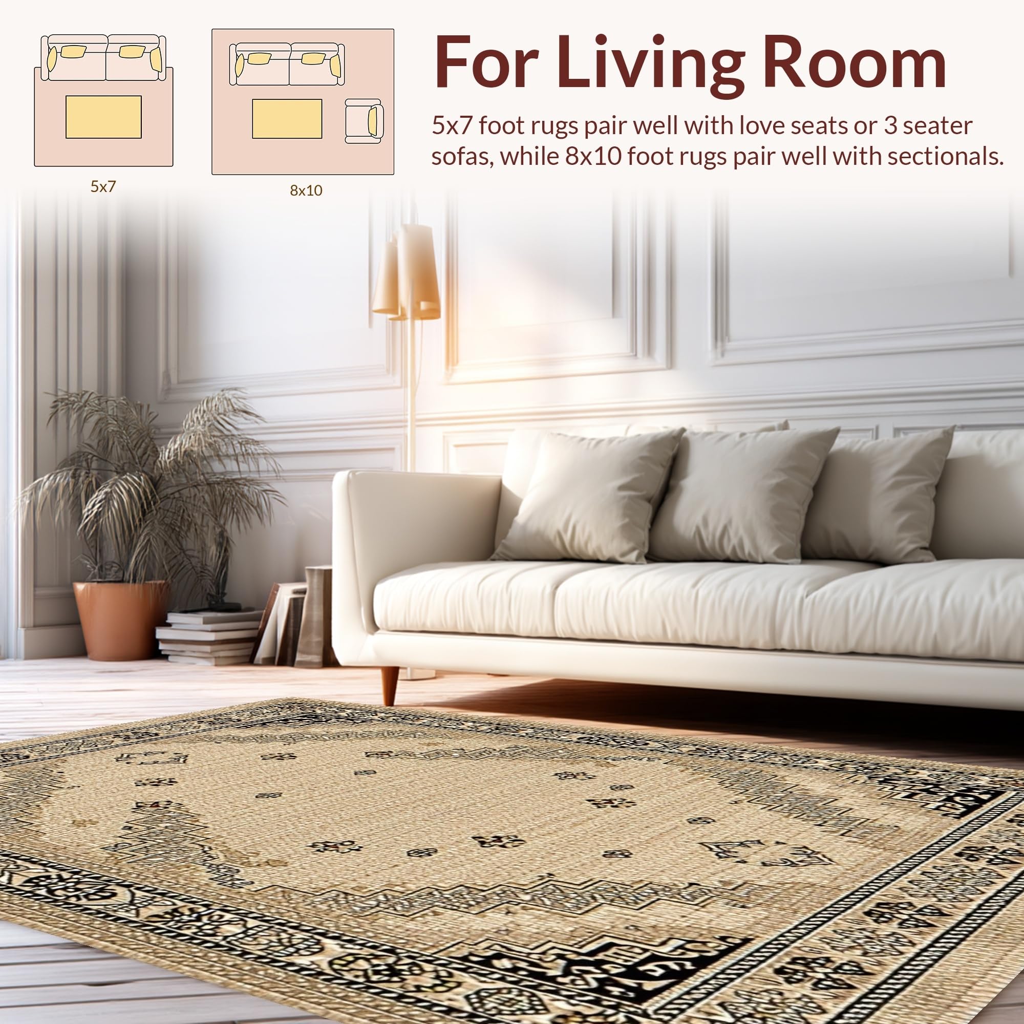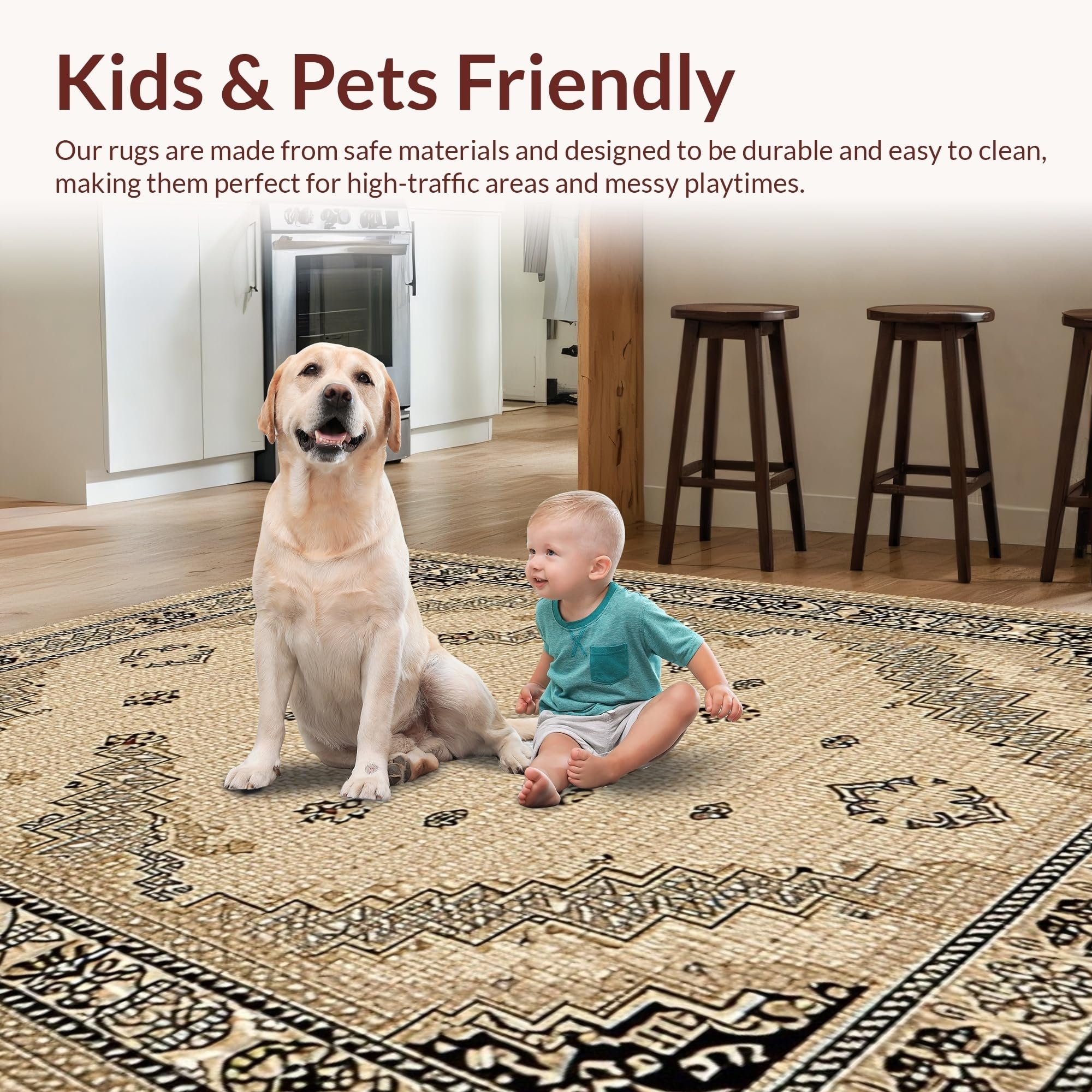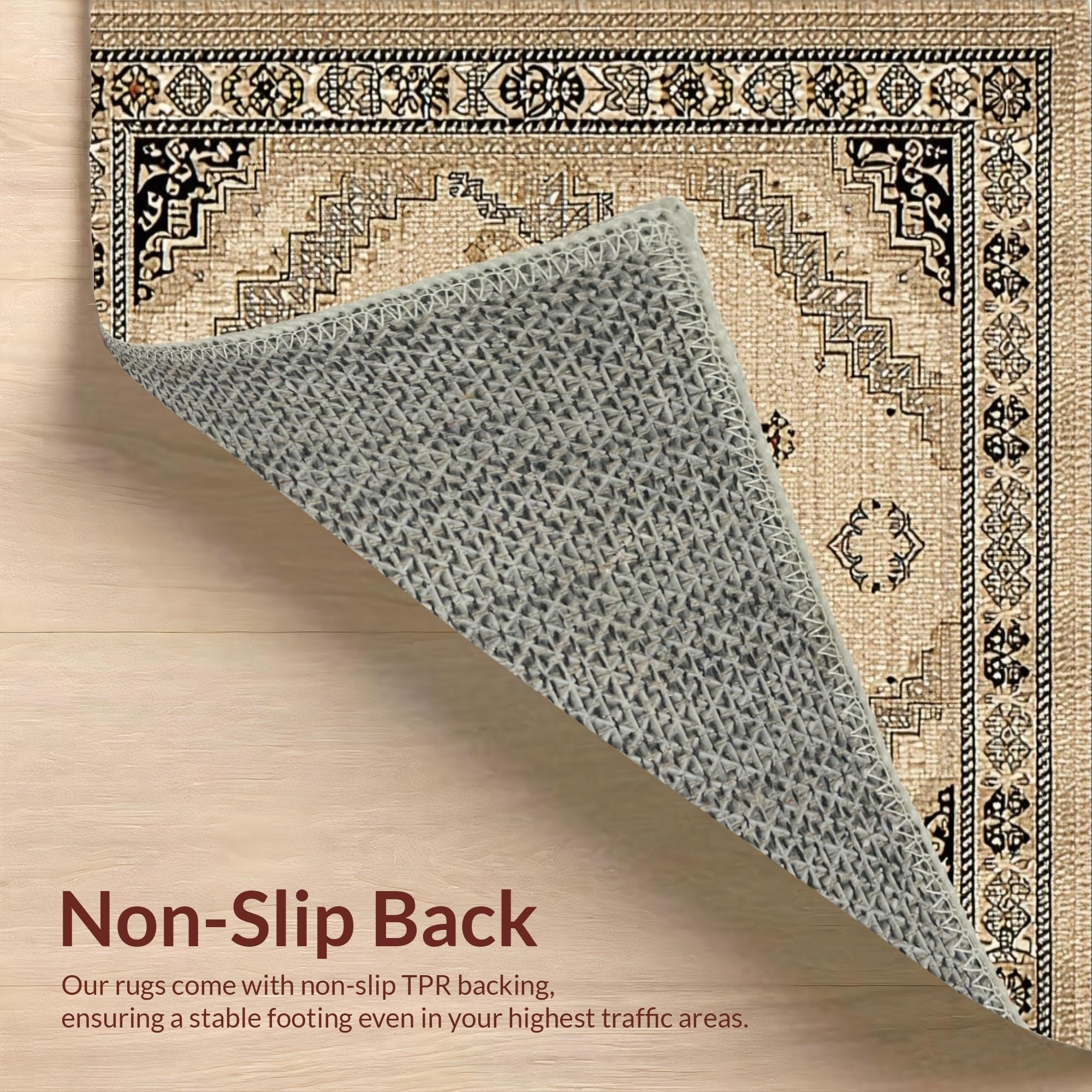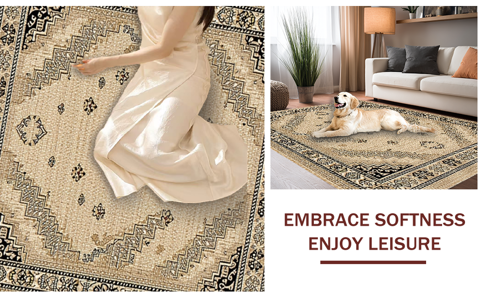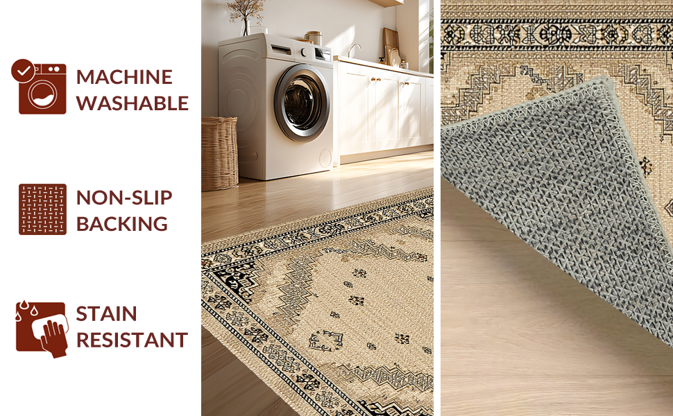 Ultra Soft Area Rug, Non Slip, Stain Resistant, Washable Area Rugs for Living Room, Bedroom, Artistic Rustic Welcome Phrase Decor(Beige) Overview: