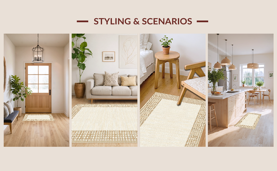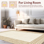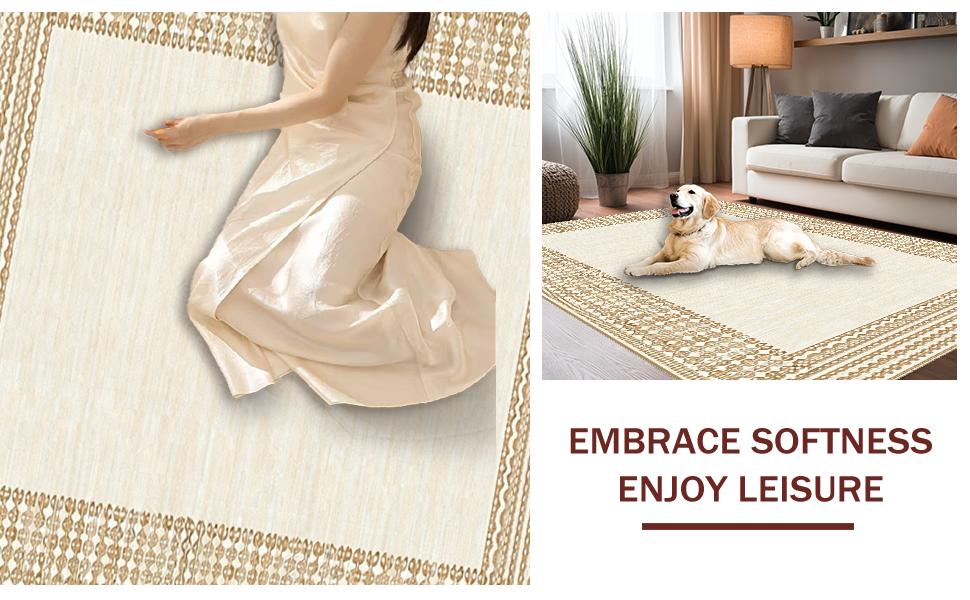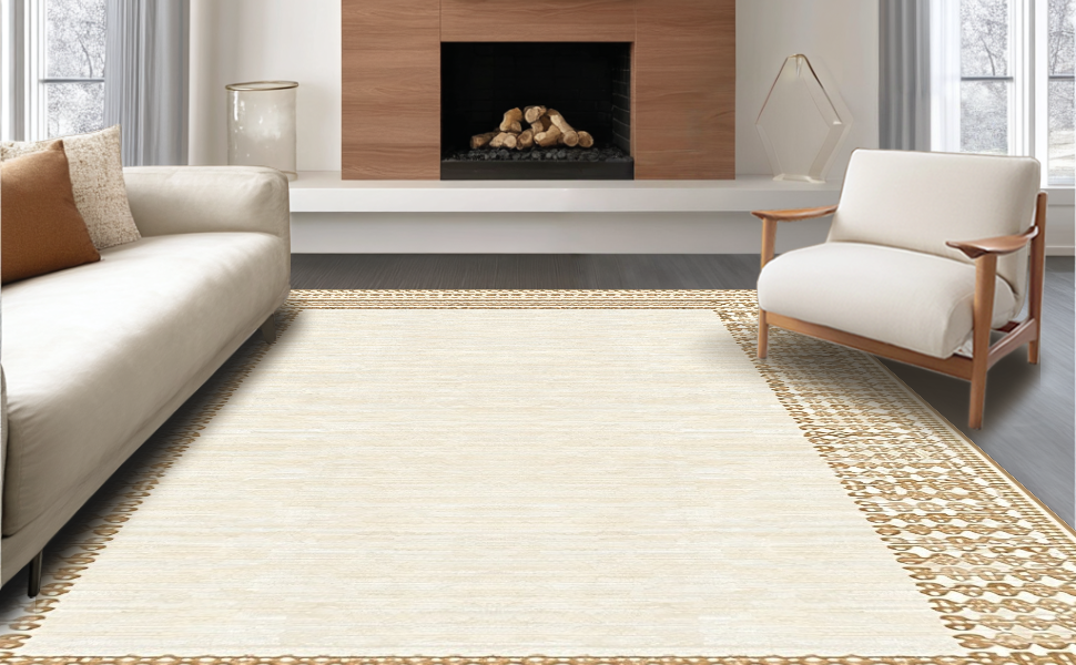 Ultra Soft Area Rug, Non Slip, Stain Resistant, Washable Area Rugs for Living Room, Bedroom, Artistic Scalloped Layered Look(Beige) Overview: