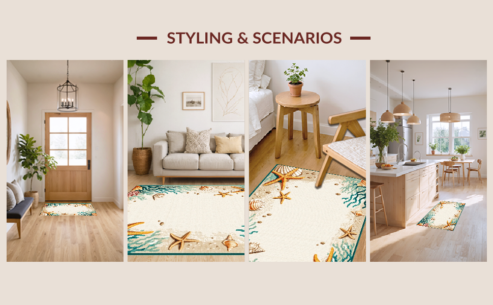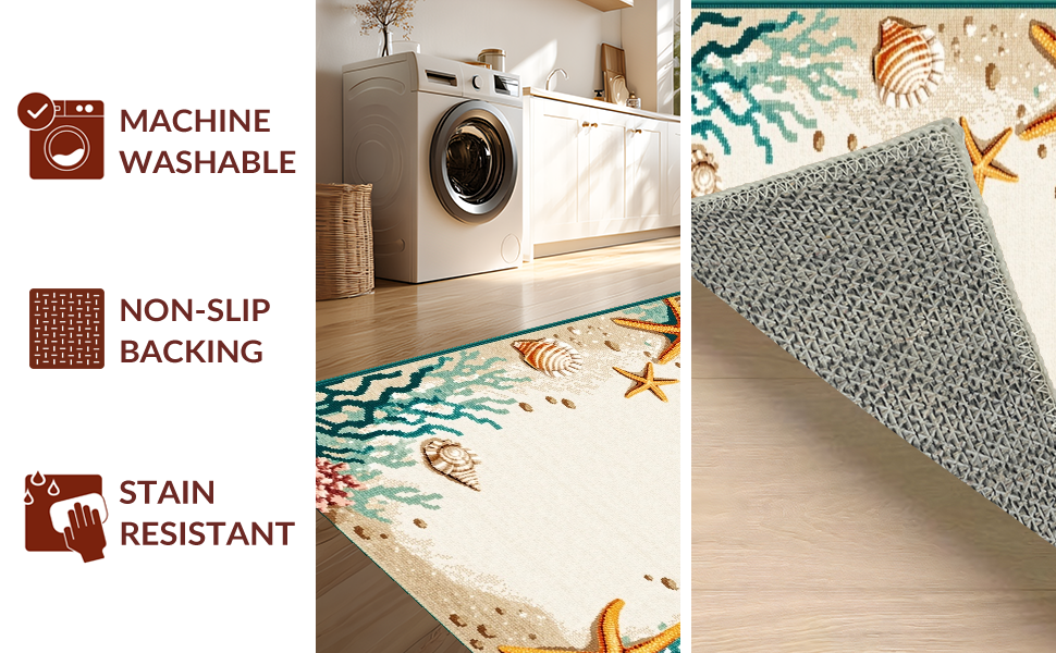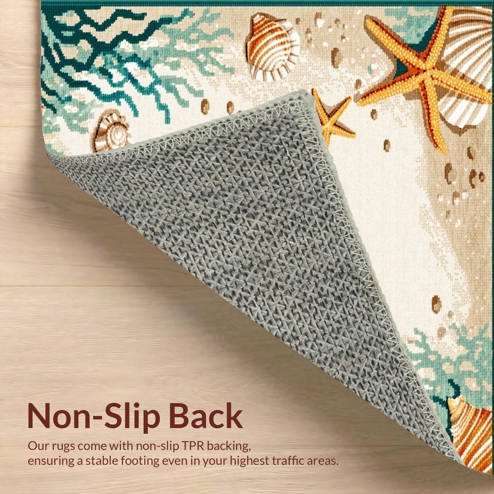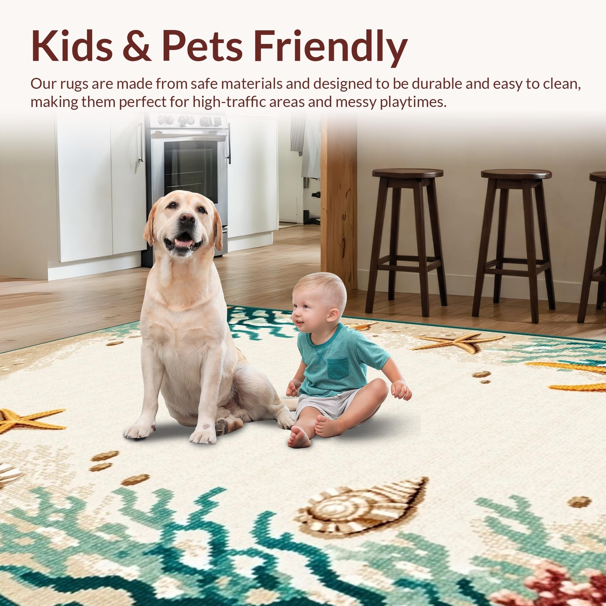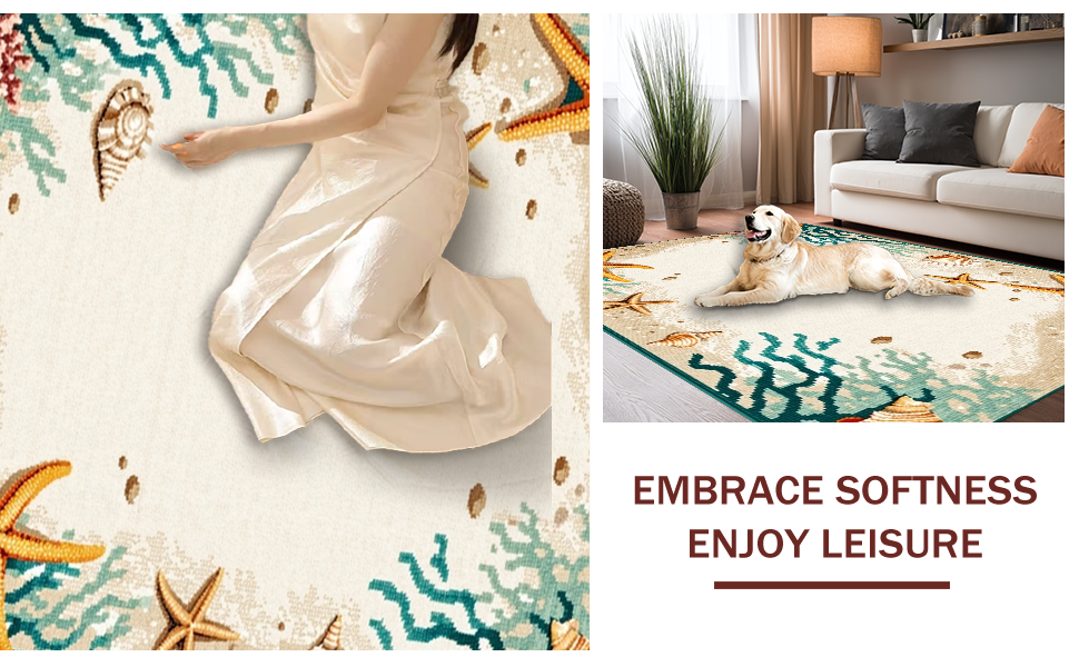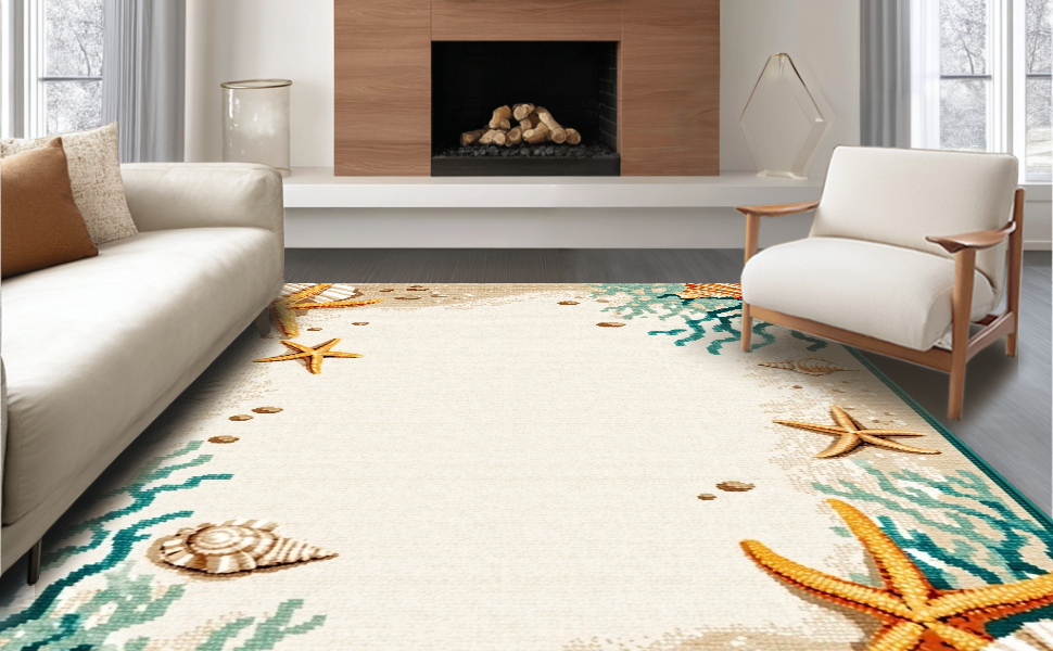Ultra Soft Area Rug, Non Slip, Stain Resistant, Washable Area Rugs for Living Room, Bedroom, Artistic Shoreline Elemental Theme(Beige) Overview: