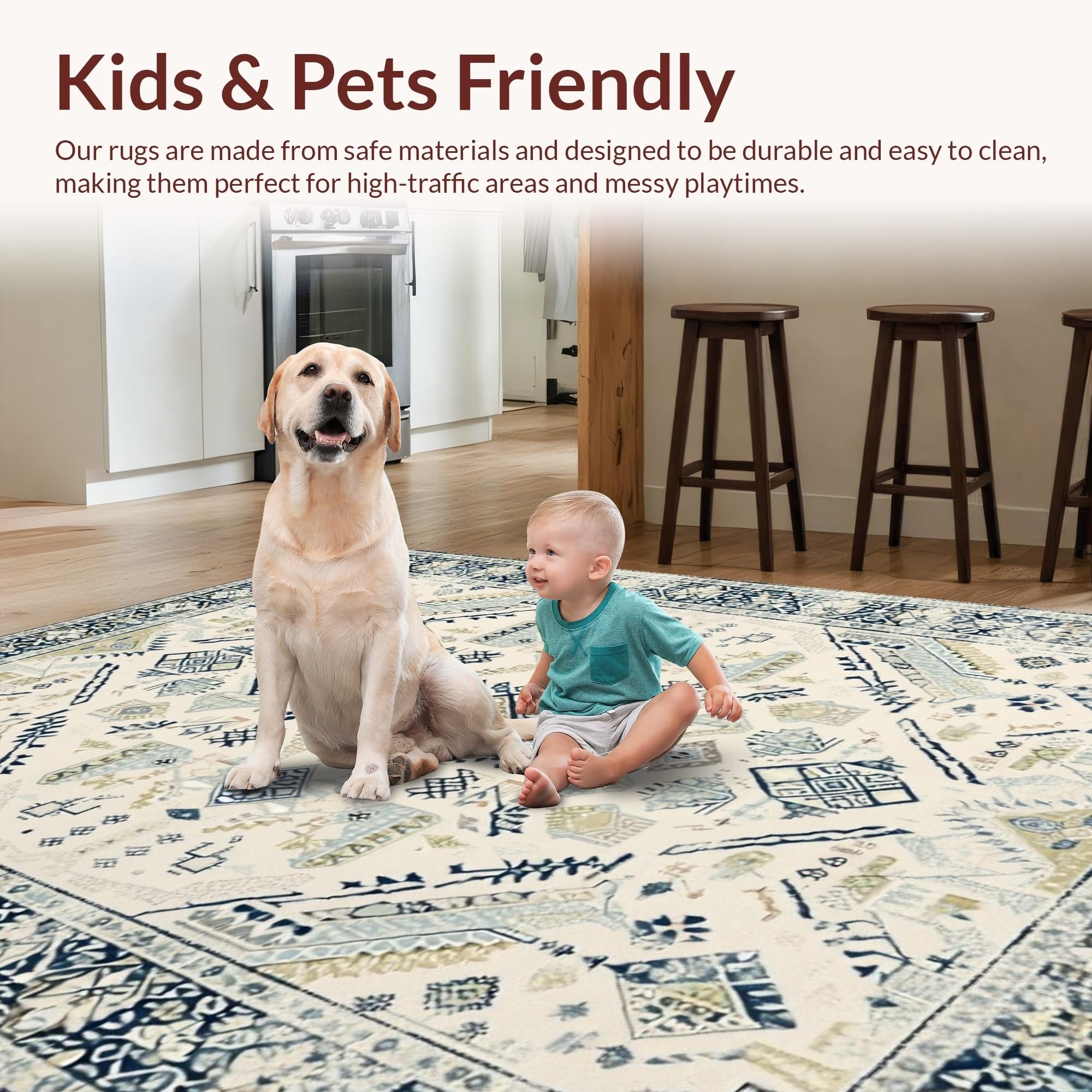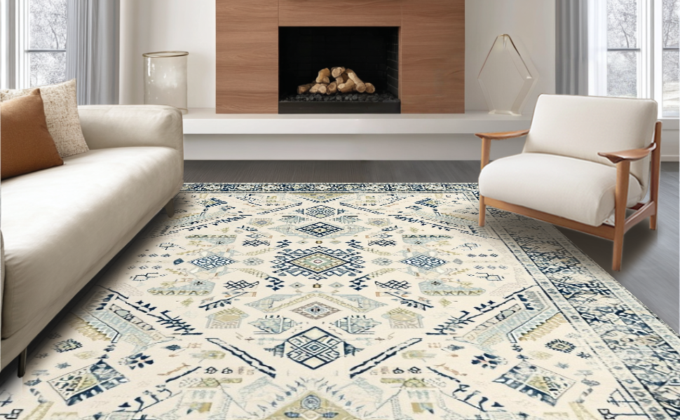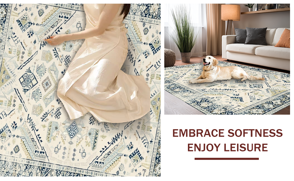 Ultra Soft Area Rug, Non Slip, Stain Resistant, Washable Area Rugs for Living Room, Bedroom, Artistic Soft Cream Geometric Motif(Beige) Overview: