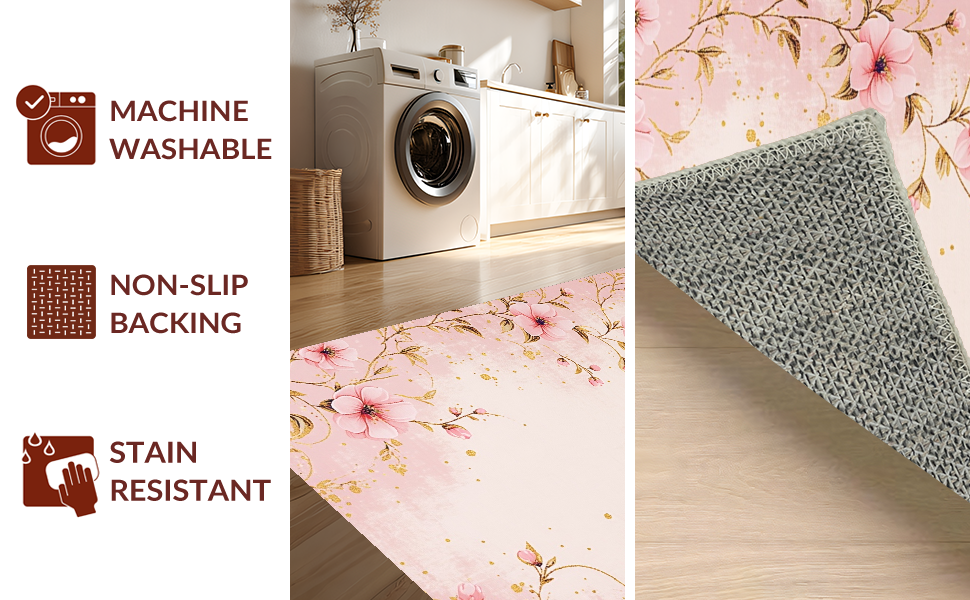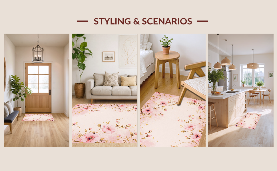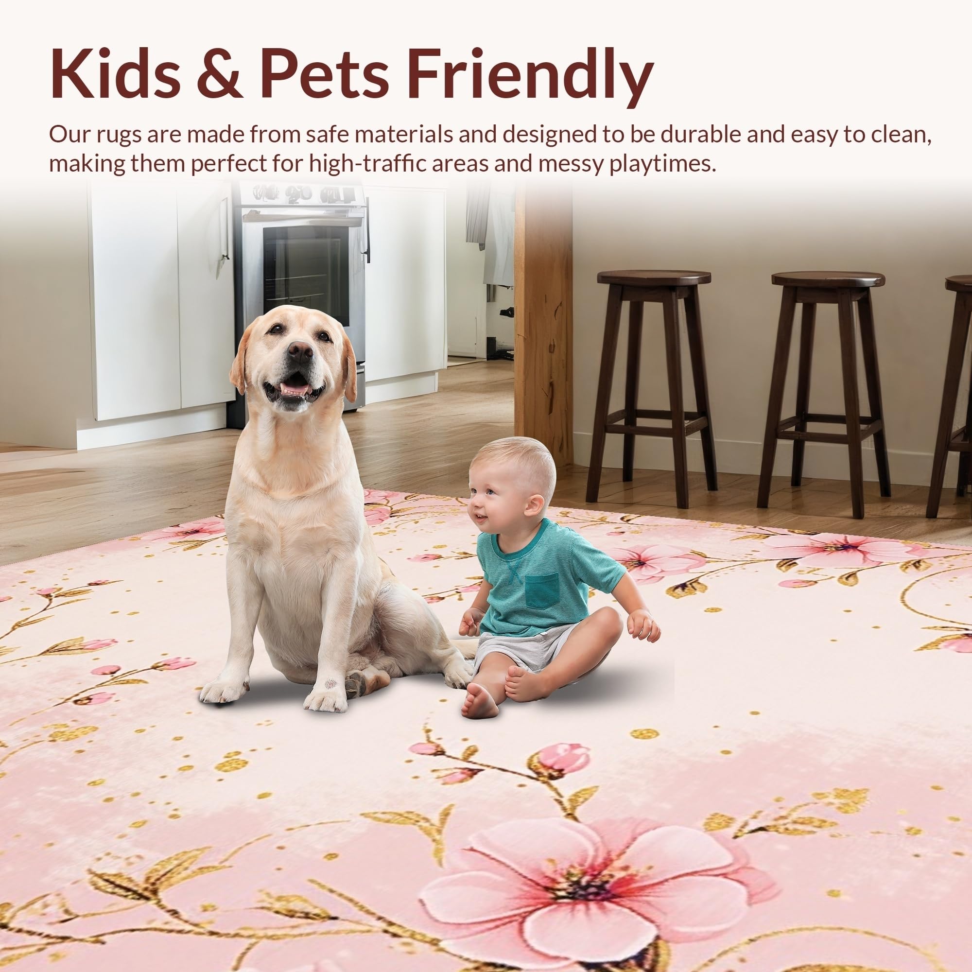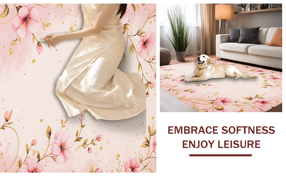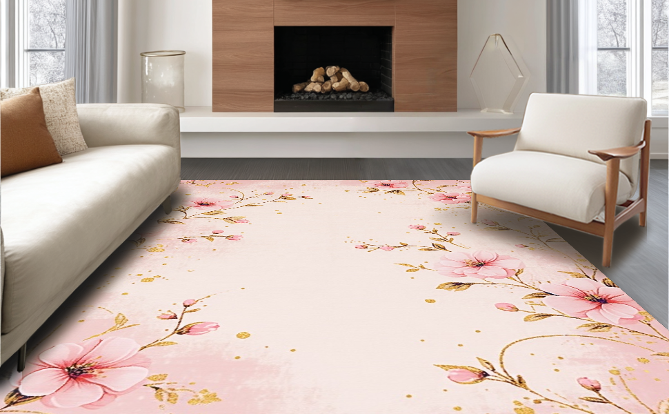 Ultra Soft Area Rug, Non Slip, Stain Resistant, Washable Area Rugs for Living Room, Bedroom, Artistic Soft-Edged Floral Style(Pink) Overview: