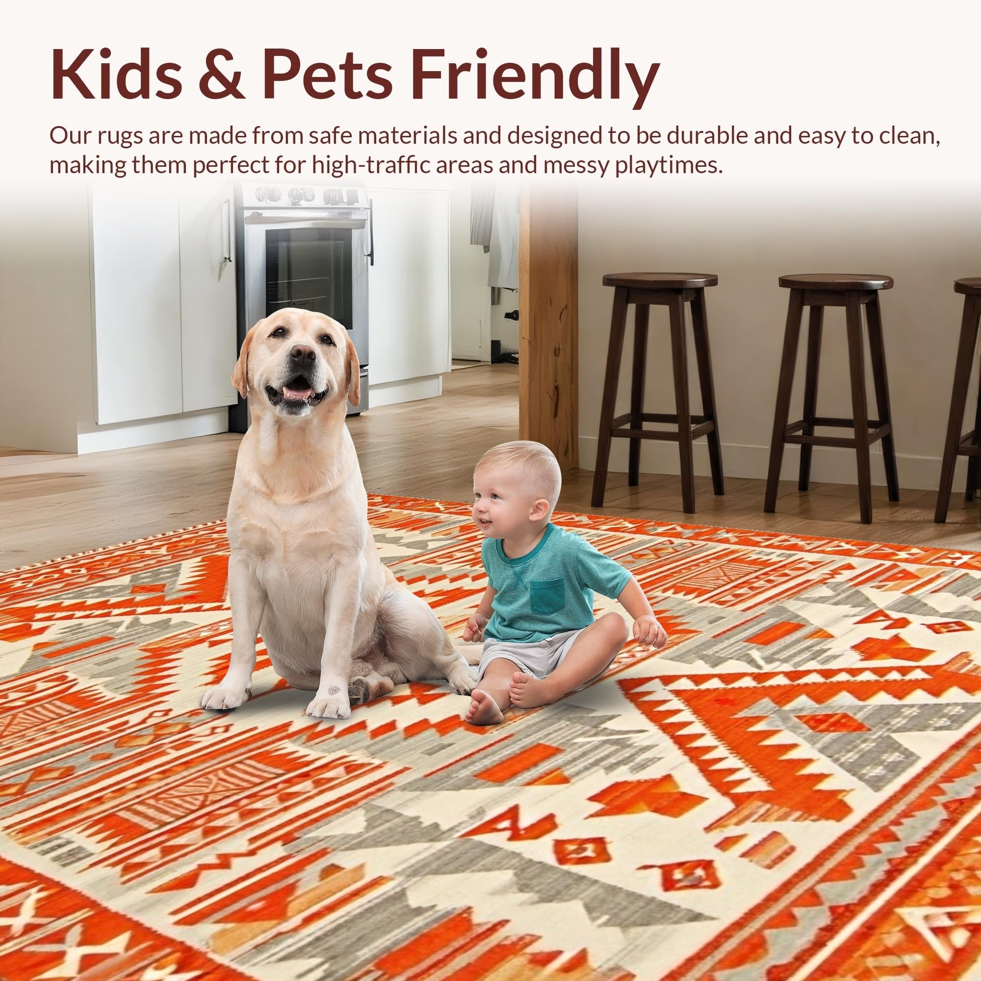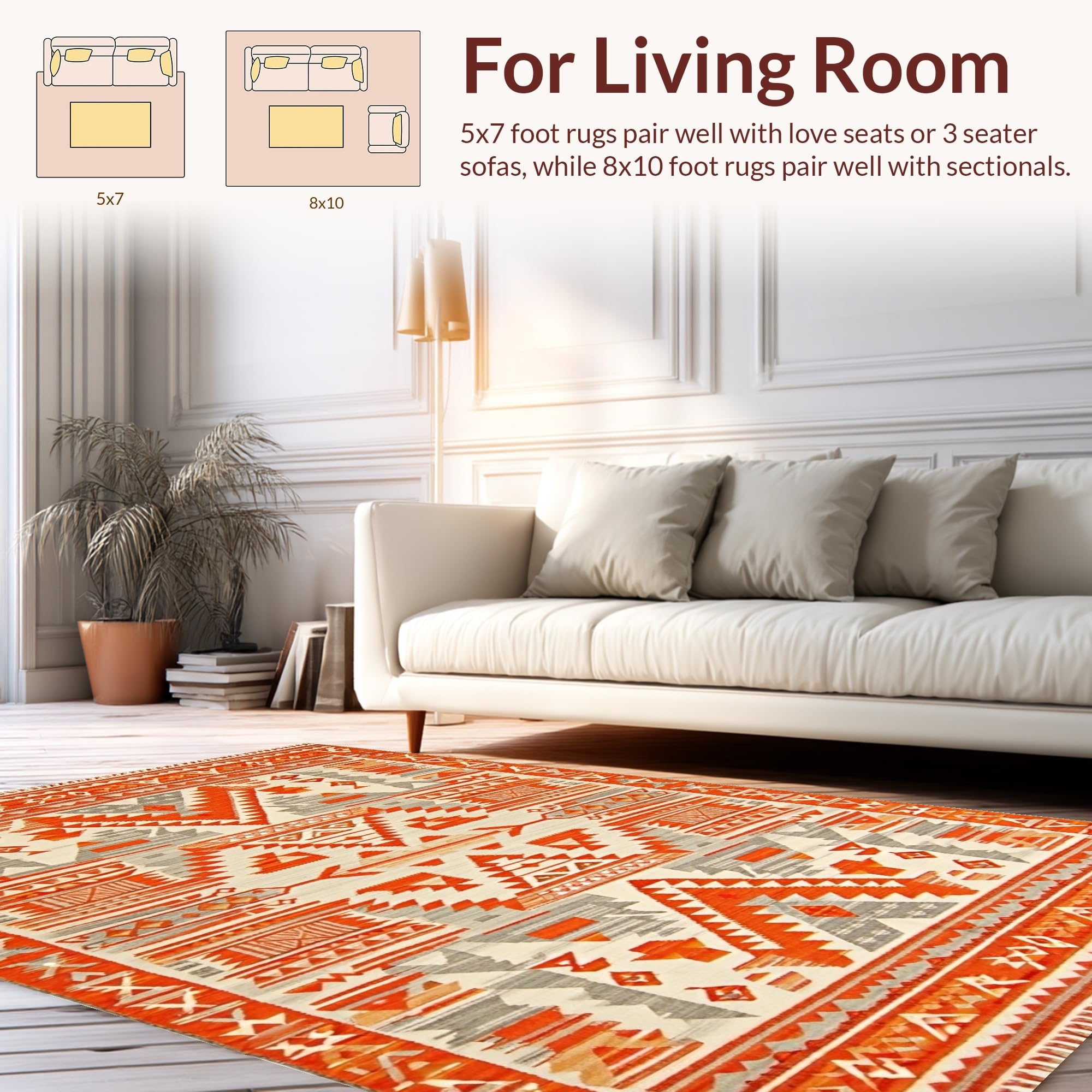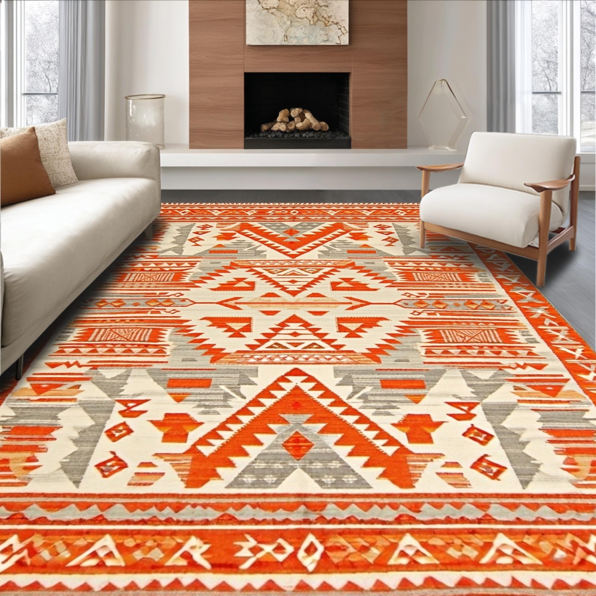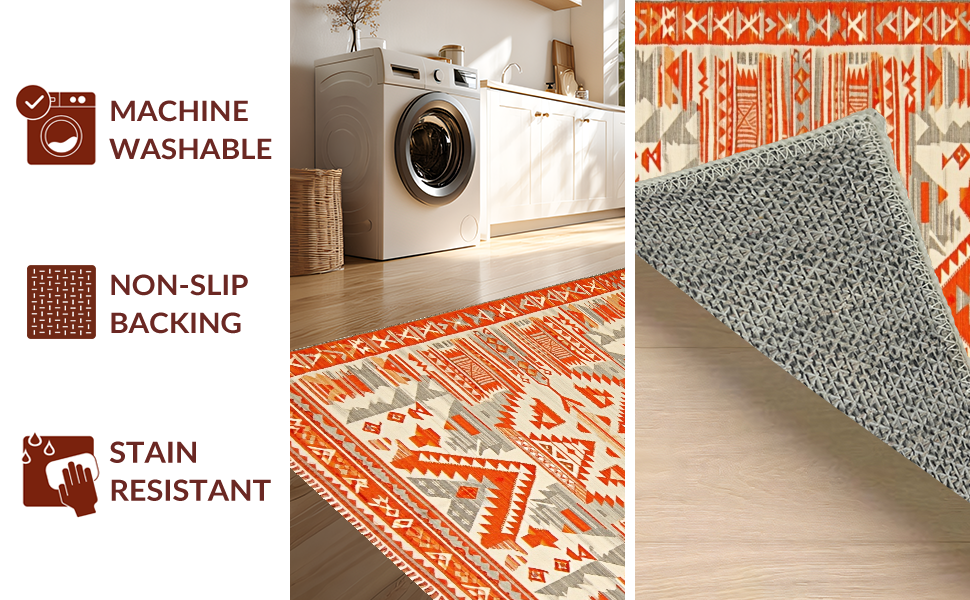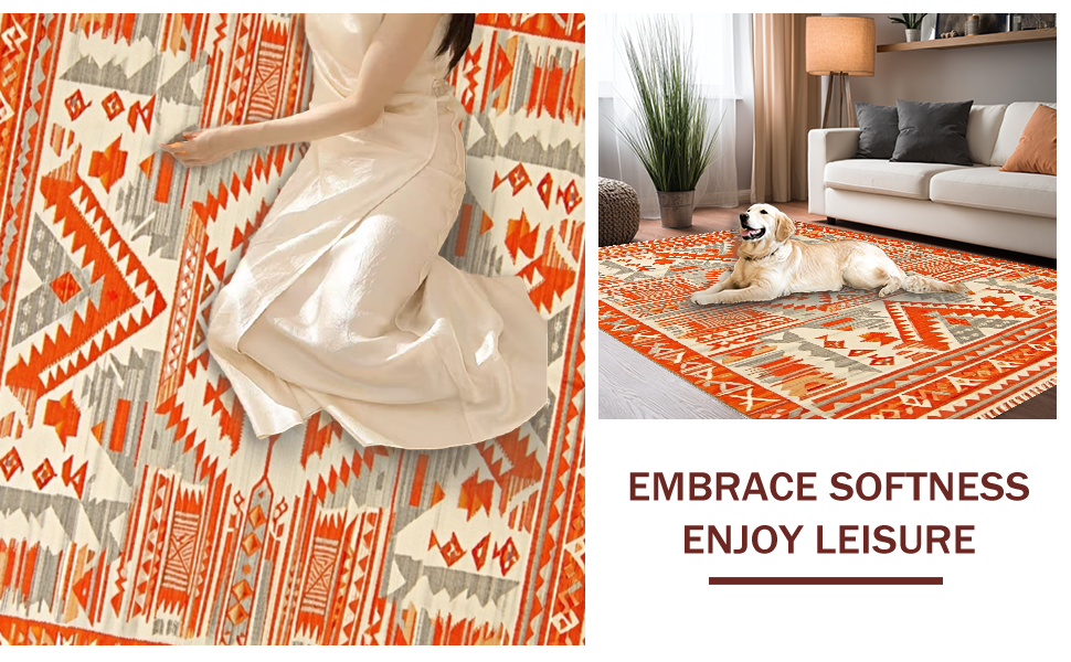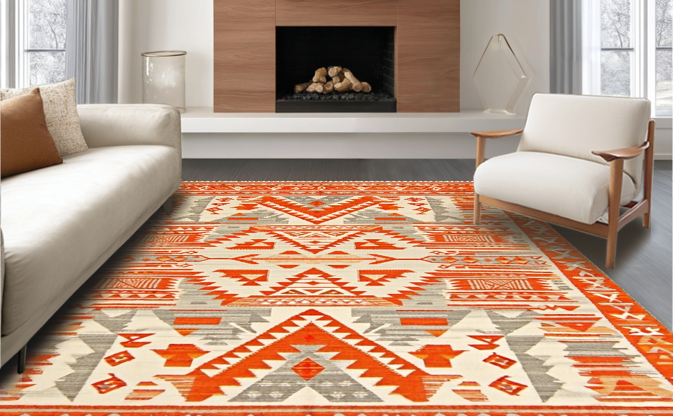 Ultra Soft Area Rug, Non Slip, Stain Resistant, Washable Area Rugs for Living Room, Bedroom, Artistic Southwestern Textured Design(Orange) Overview: