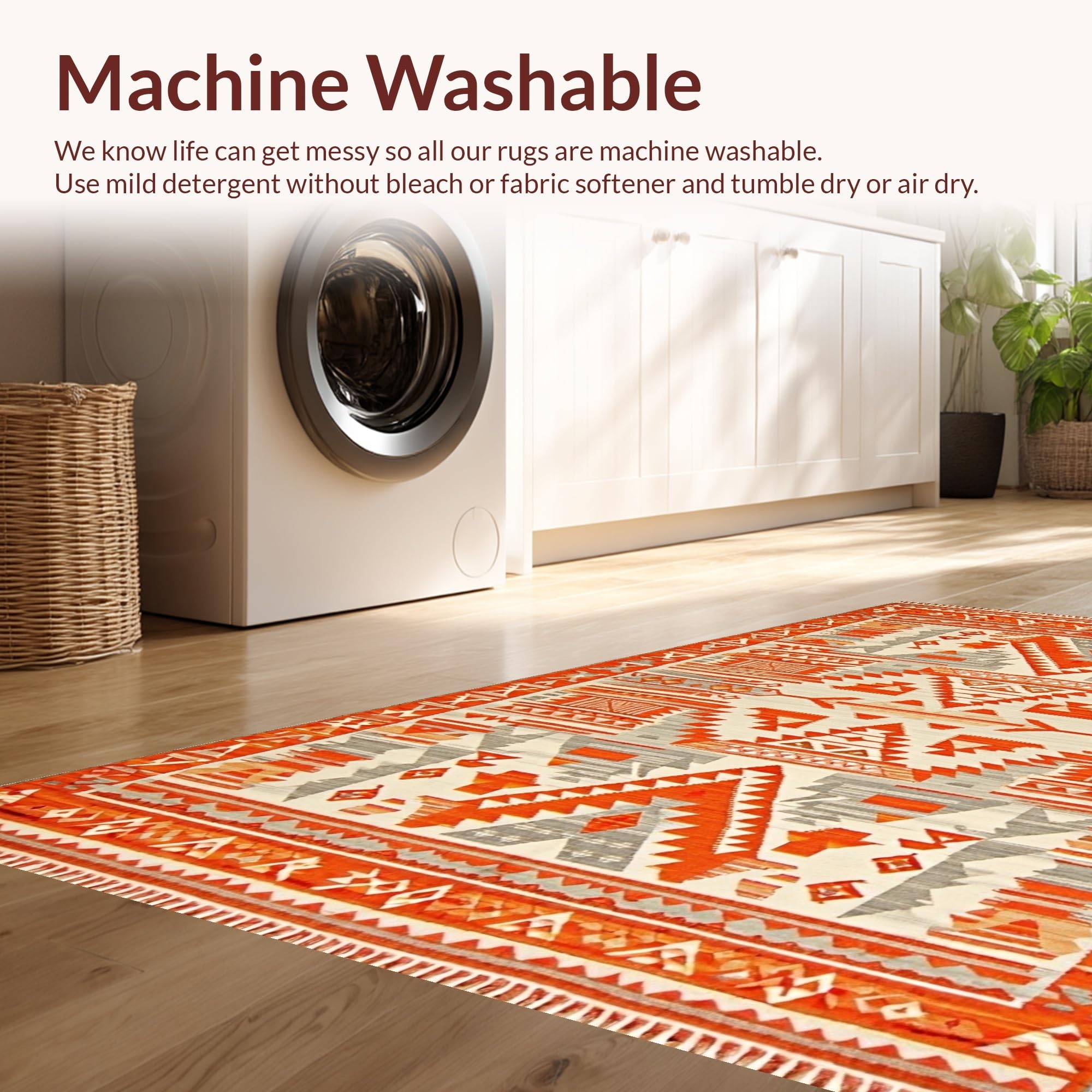 - Machine Washable: Our rugs can be easily thrown in the wash machine.