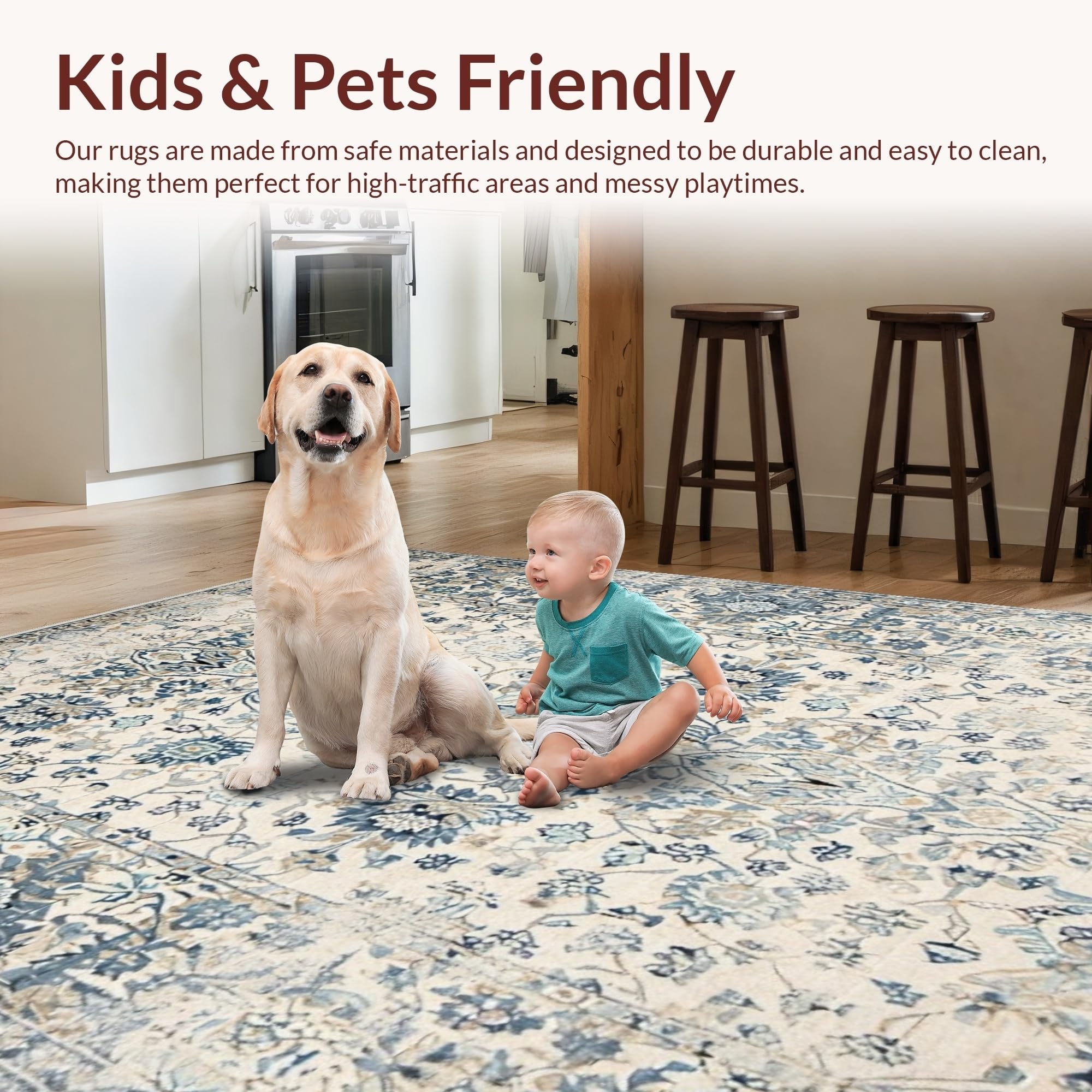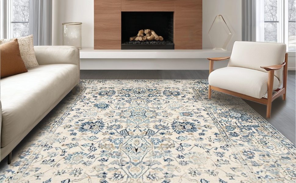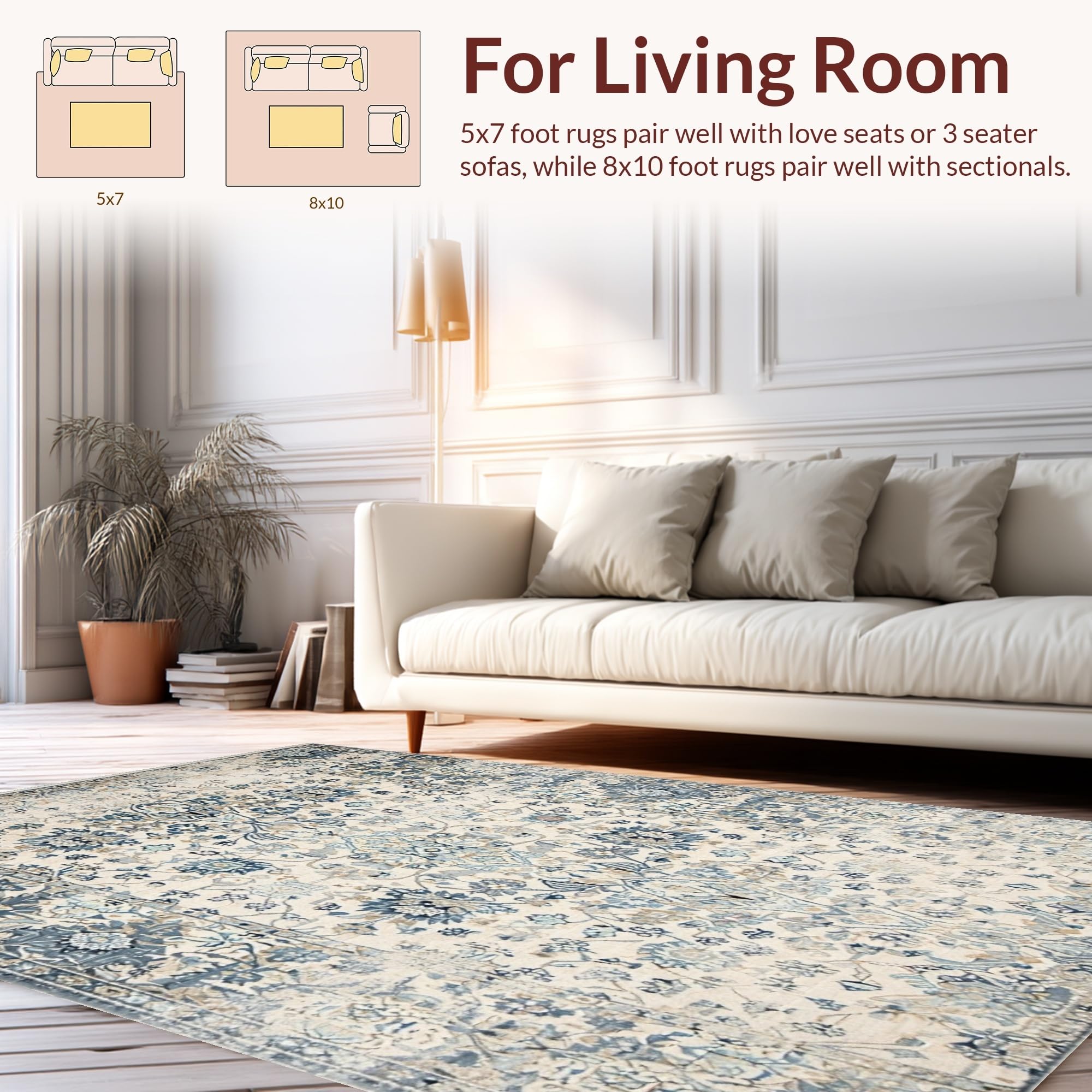 Ultra Soft Area Rug, Non Slip, Stain Resistant, Washable Area Rugs for Living Room, Bedroom, Artistic Subtle Floral Arrangement(Beige) Overview: