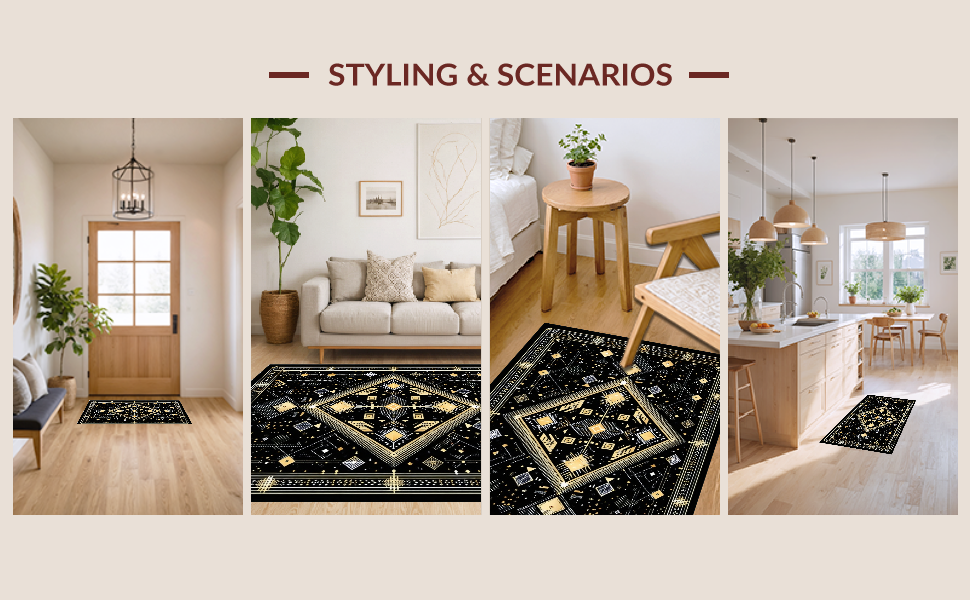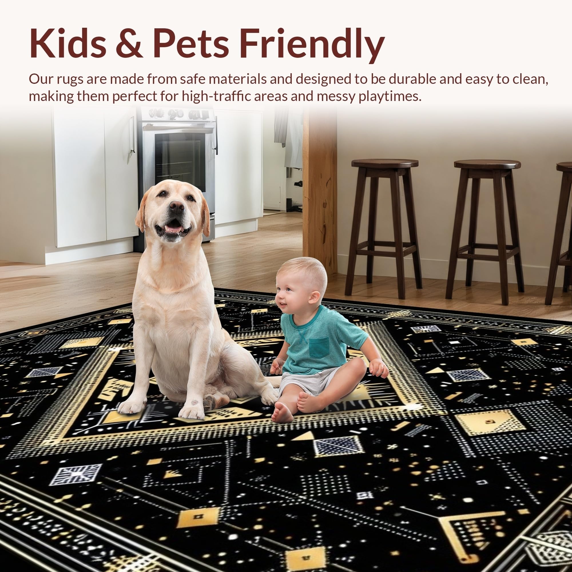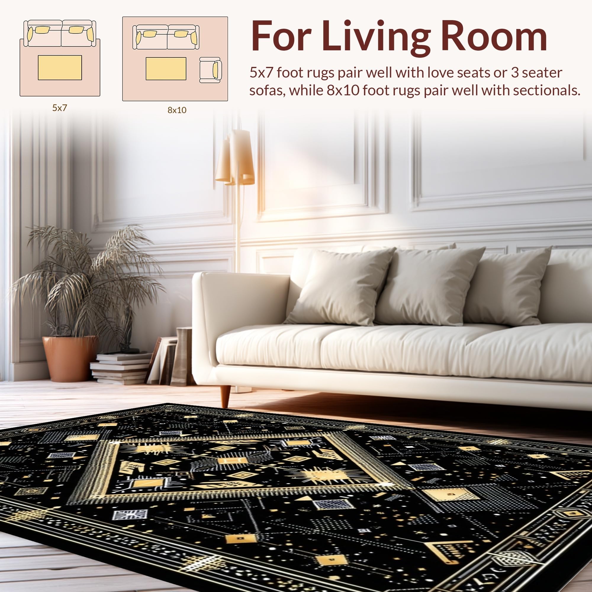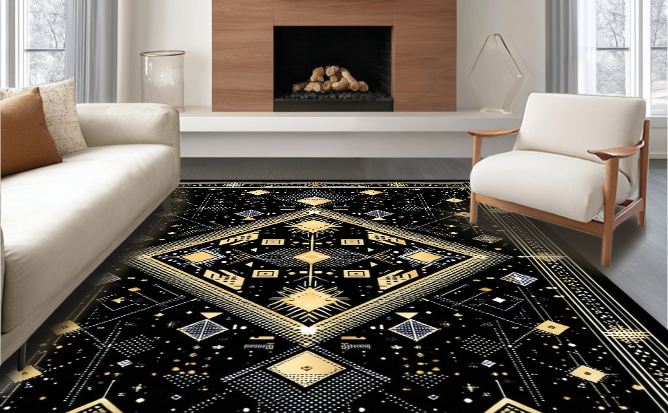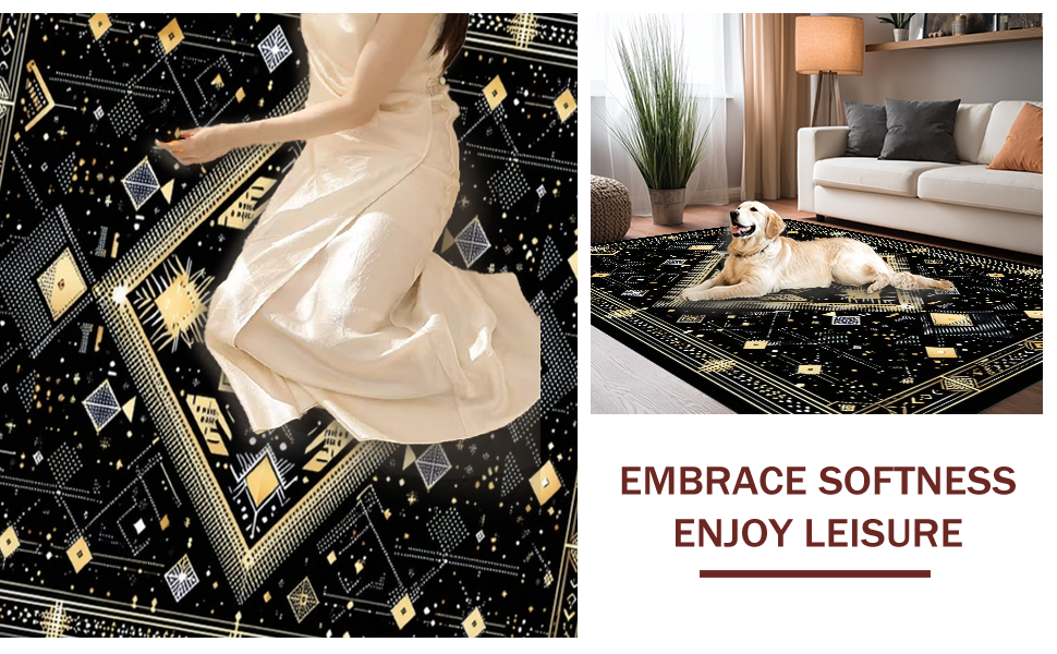 Ultra Soft Area Rug, Non Slip, Stain Resistant, Washable Area Rugs for Living Room, Bedroom, Artistic Symmetrical Color Fusion(Black) Overview:
