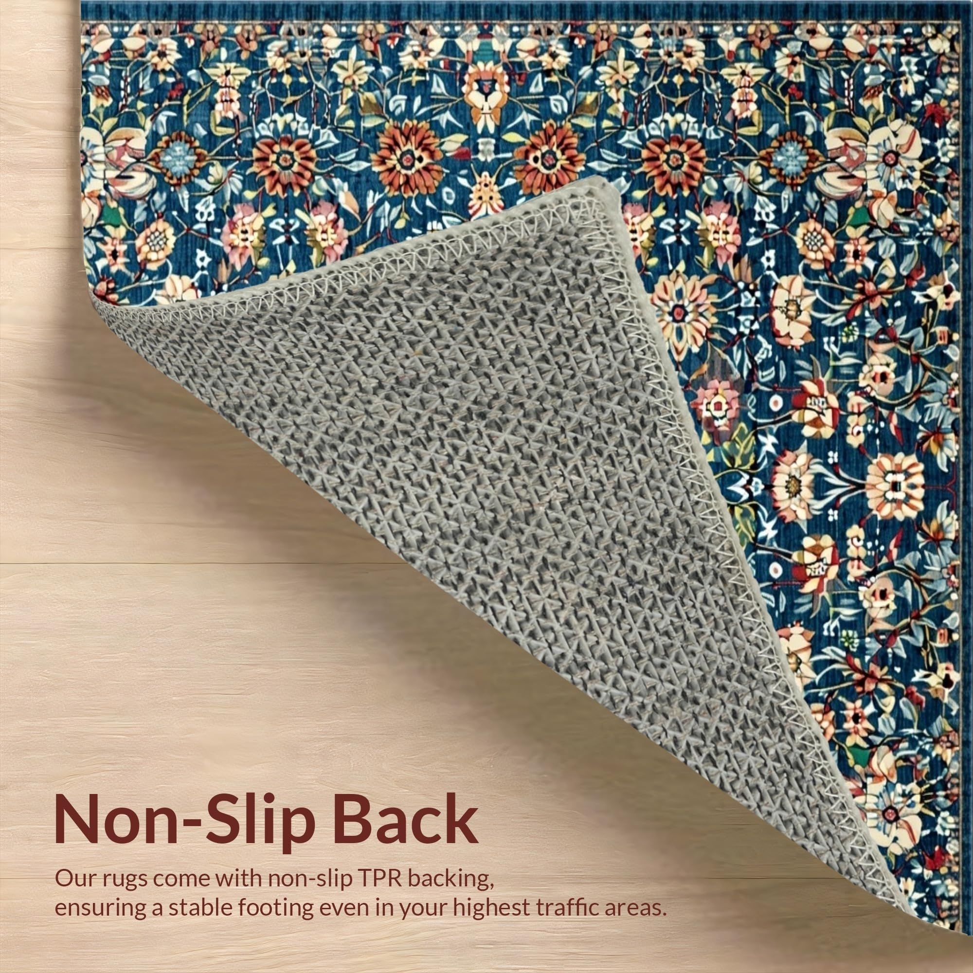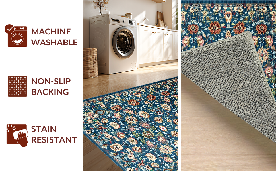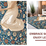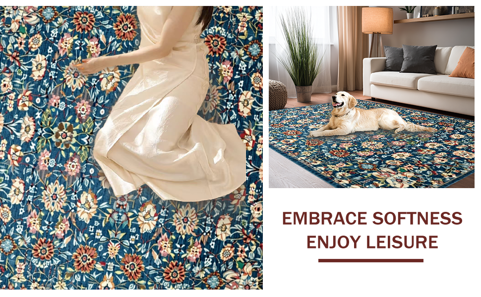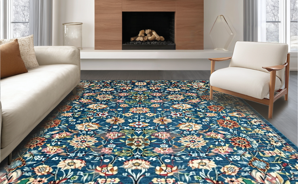Ultra Soft Area Rug, Non Slip, Stain Resistant, Washable Area Rugs for Living Room, Bedroom, Artistic Symmetrical Floral Arrangement(Blue) Overview: