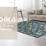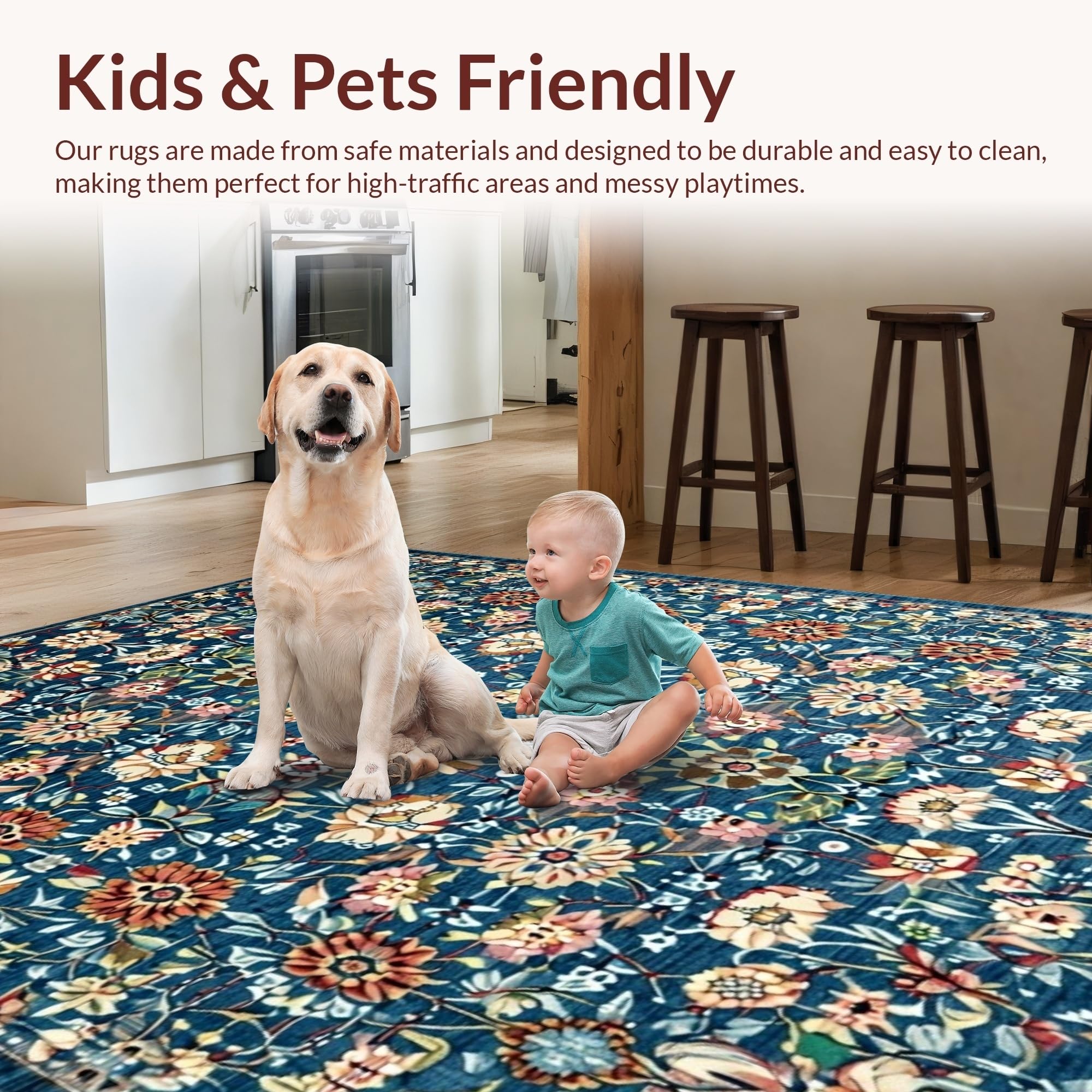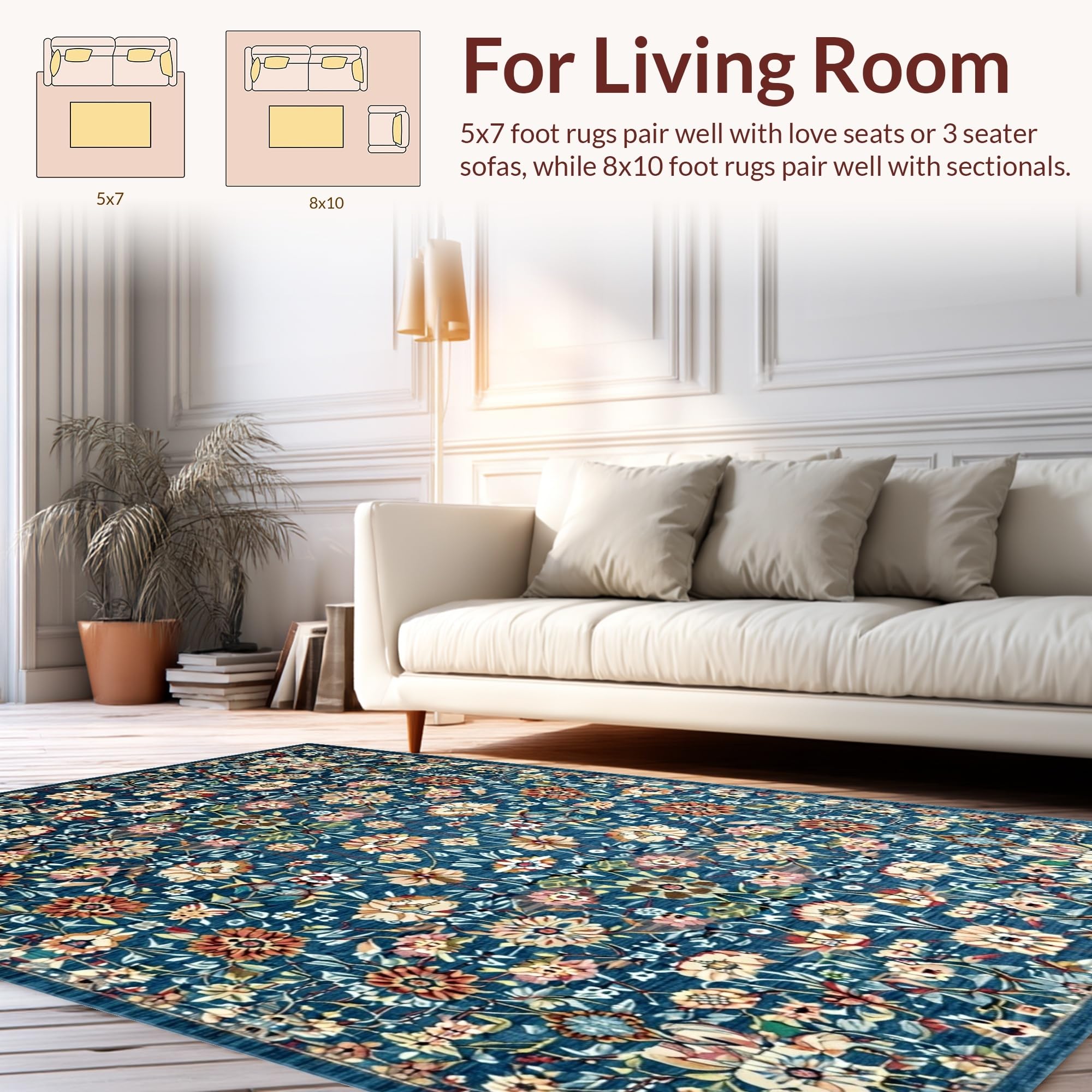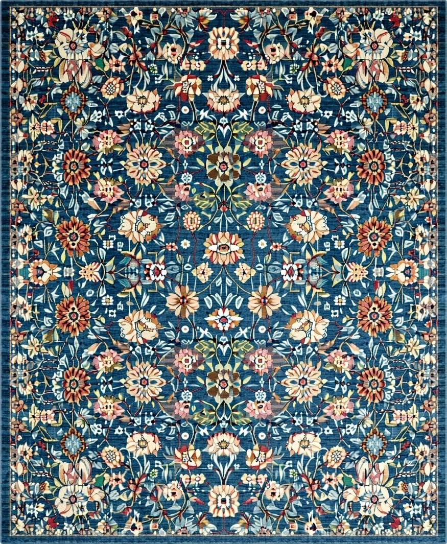Ultra Soft Area Rug, Non Slip, Stain Resistant, Washable Area Rugs for Living Room, Bedroom, Artistic Symmetrical Floral Arrangement(Blue) Overview: