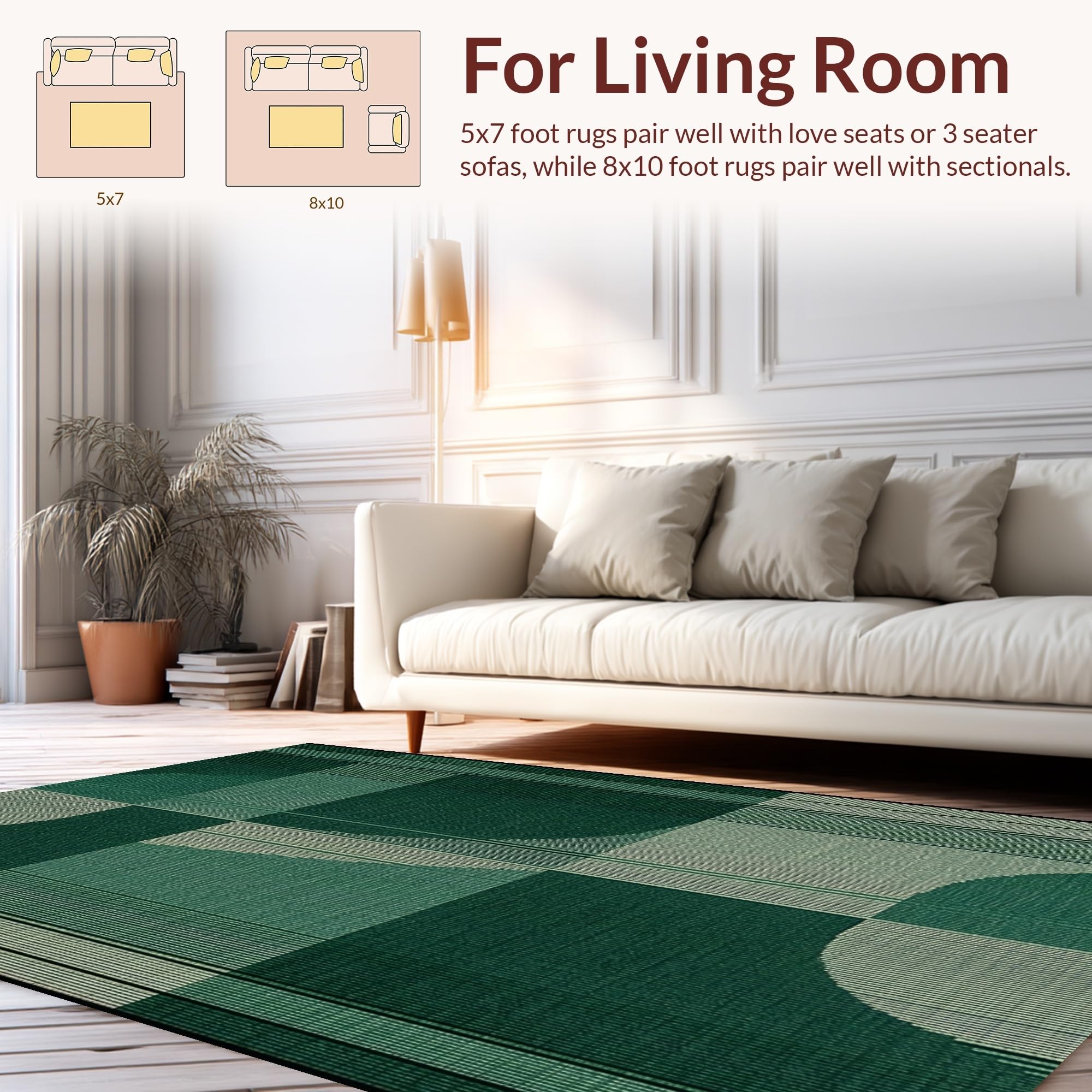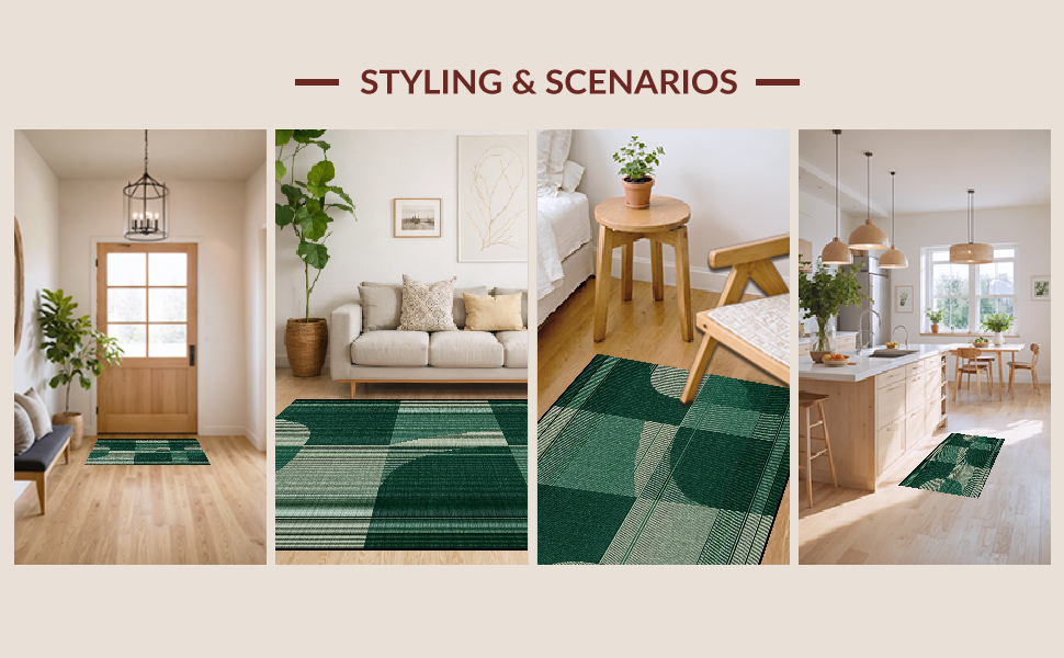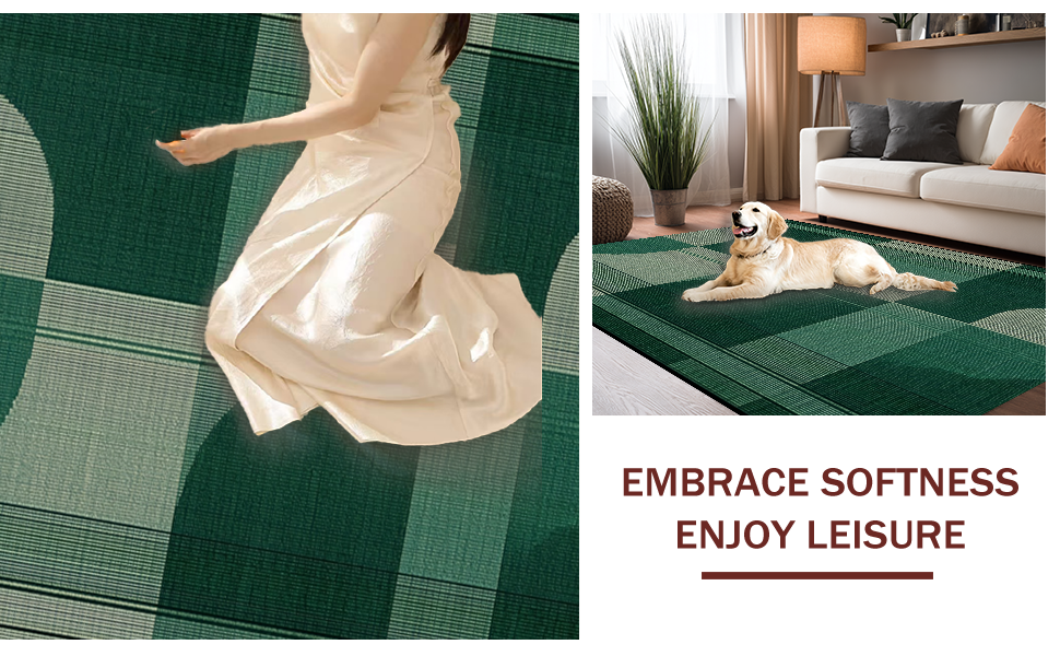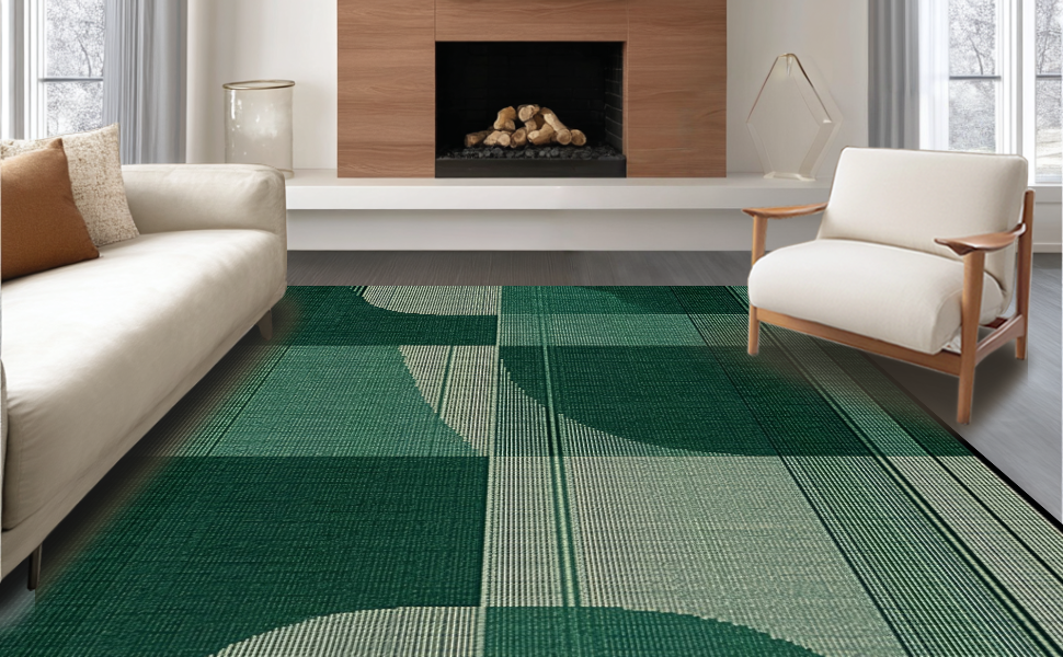 Ultra Soft Area Rug, Non Slip, Stain Resistant, Washable Area Rugs for Living Room, Bedroom, Artistic Textured Geometric Waves(Green) Overview: