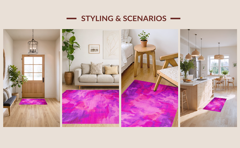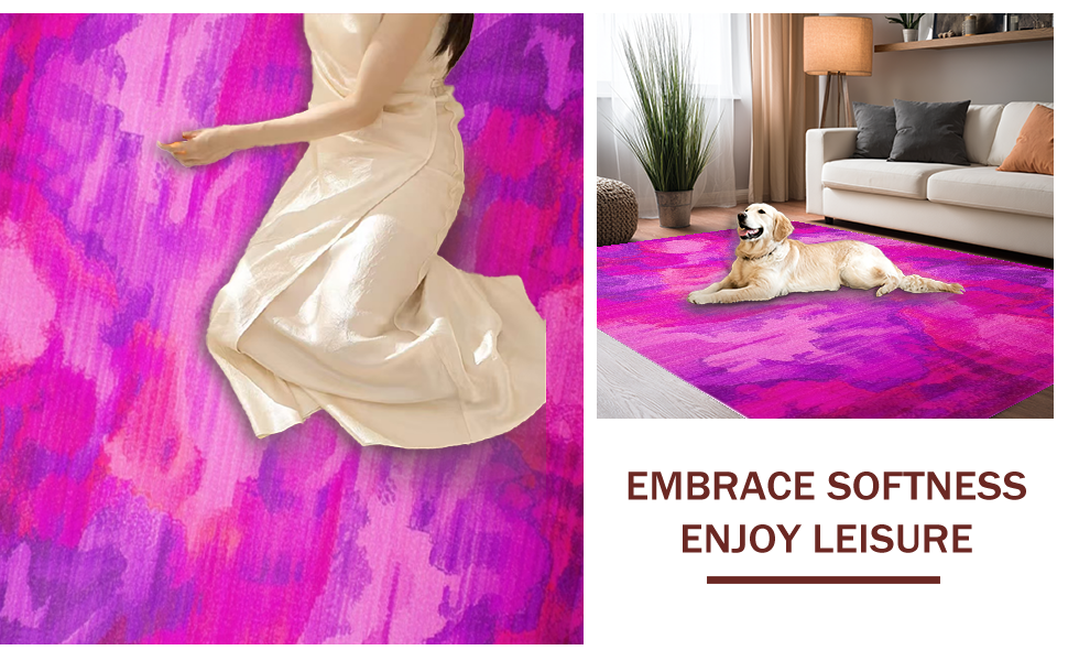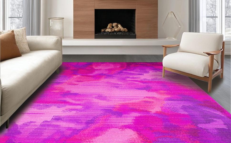 Ultra Soft Area Rug, Non Slip, Stain Resistant, Washable Area Rugs for Living Room, Bedroom, Artistic Textured Softness Fusion(Pink) Overview: