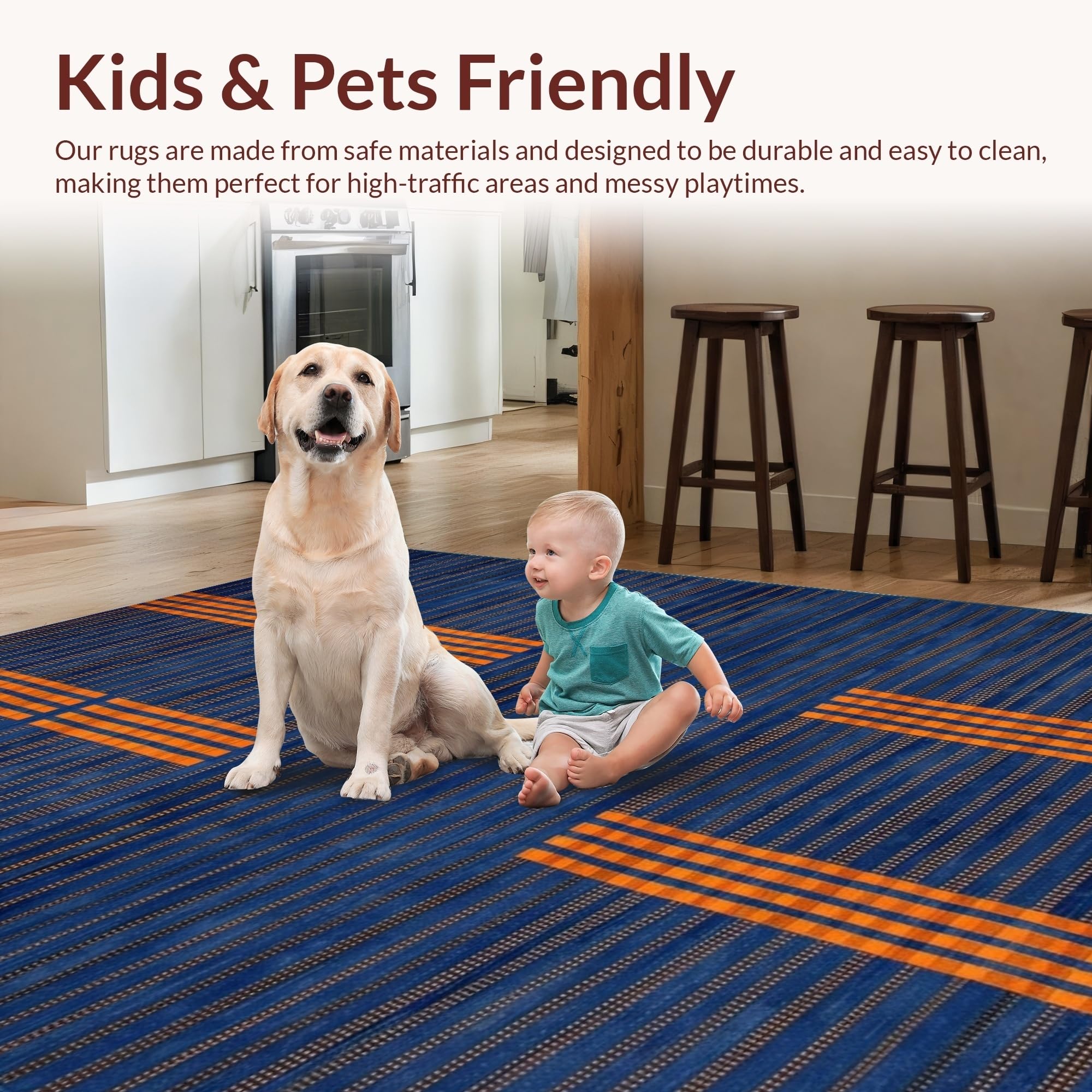 Ultra Soft Area Rug, Non Slip, Stain Resistant, Washable Area Rugs for Living Room, Bedroom, Artistic Tiled Colorful Arrangement(Blue) Overview: