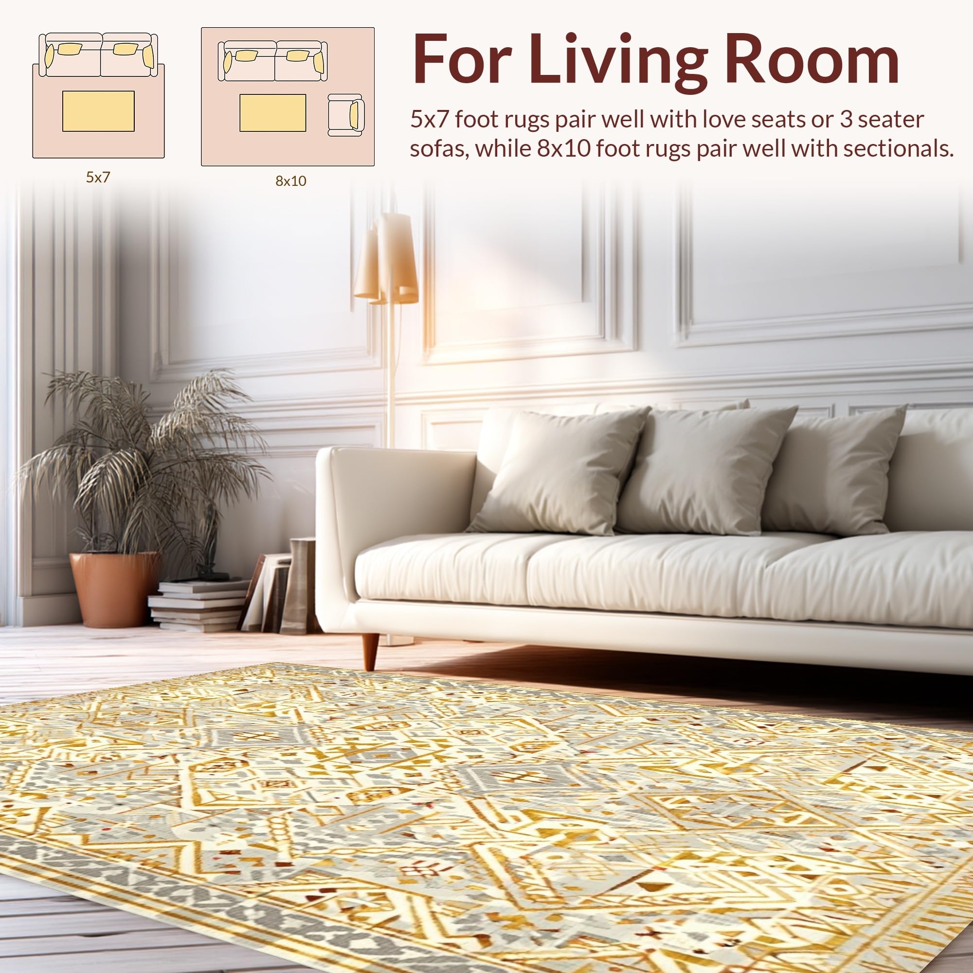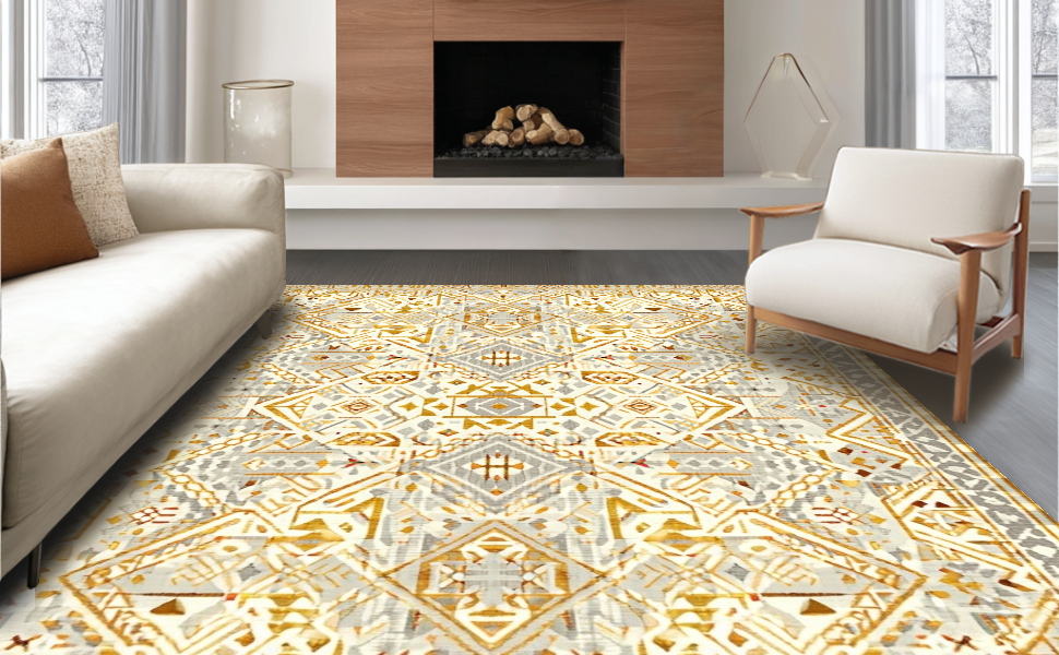 Ultra Soft Area Rug, Non Slip, Stain Resistant, Washable Area Rugs for Living Room, Bedroom, Artistic Tiled Pattern Arrangement(Beige) Overview: