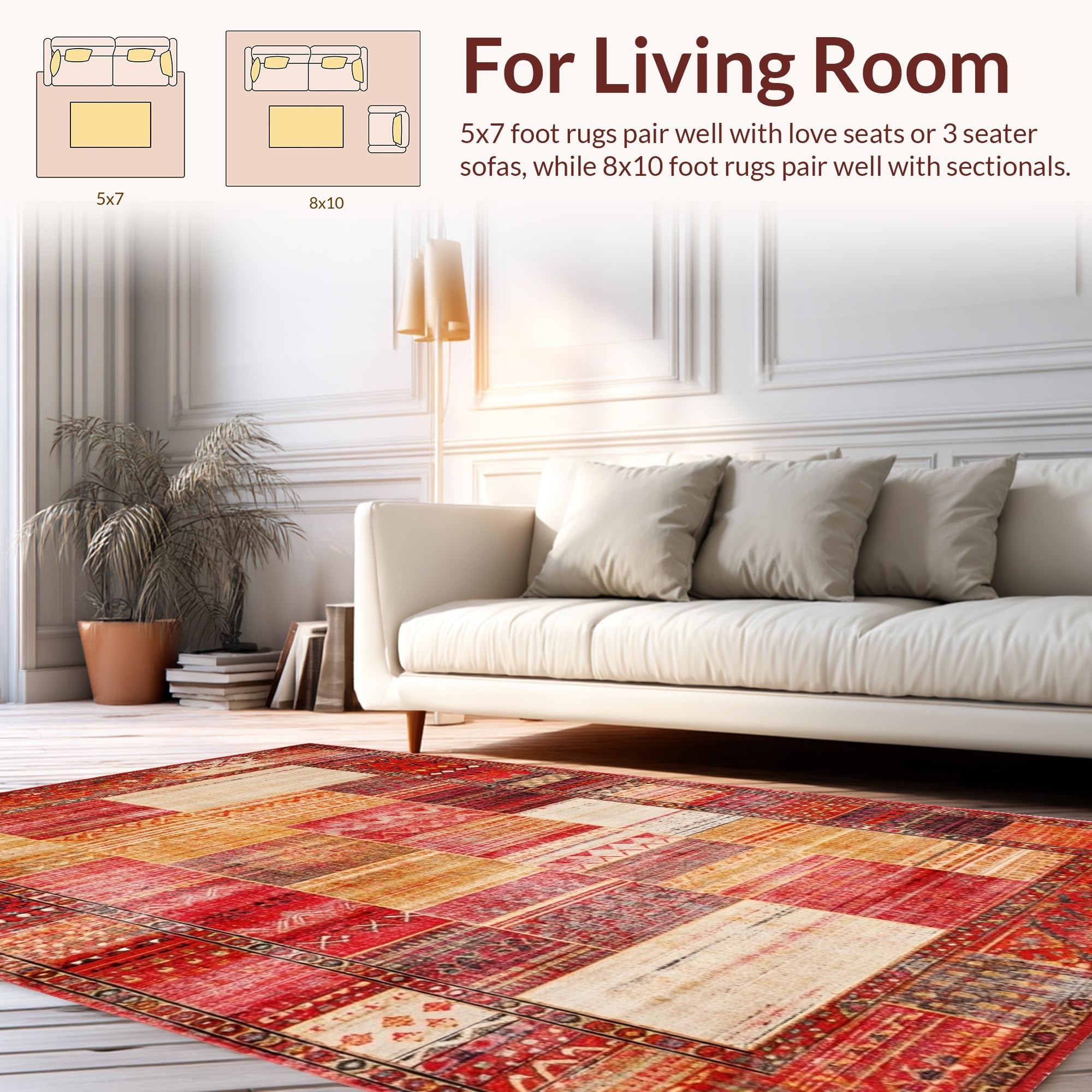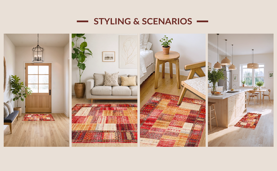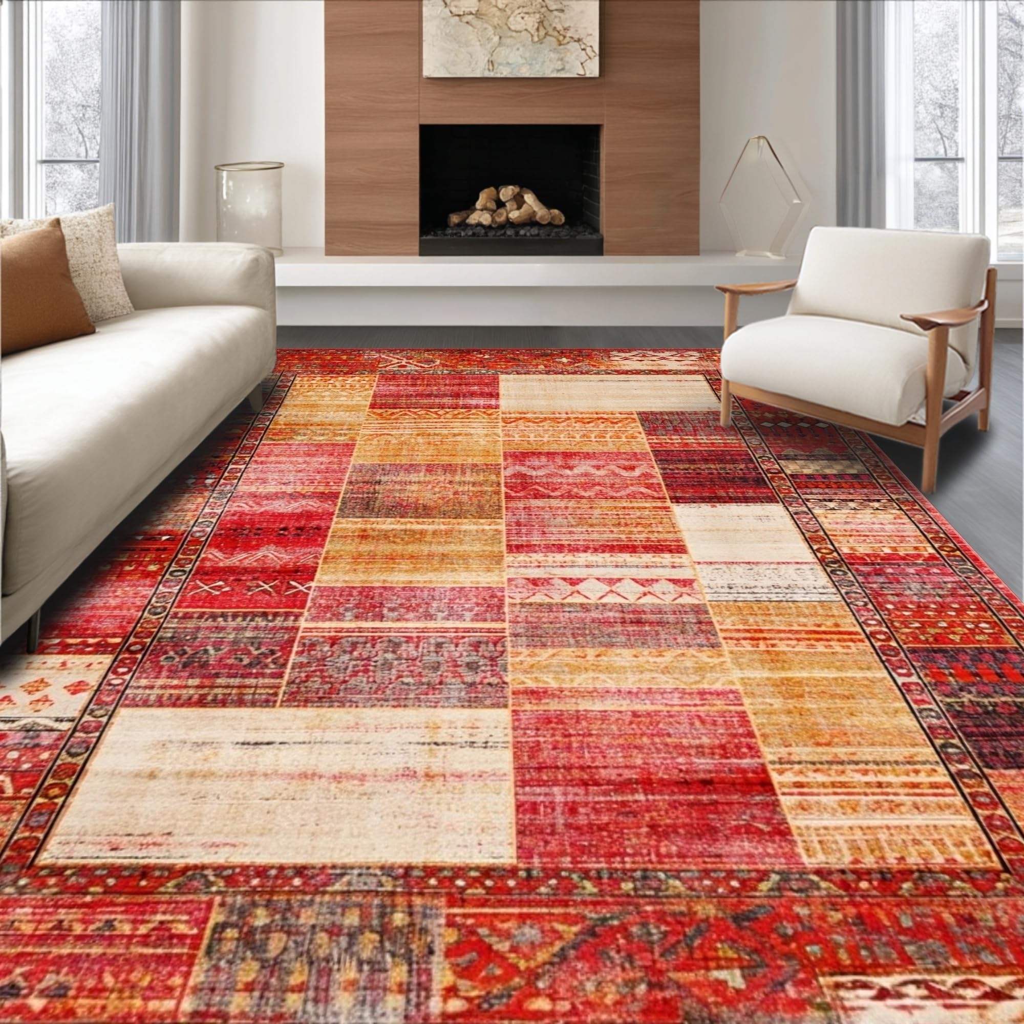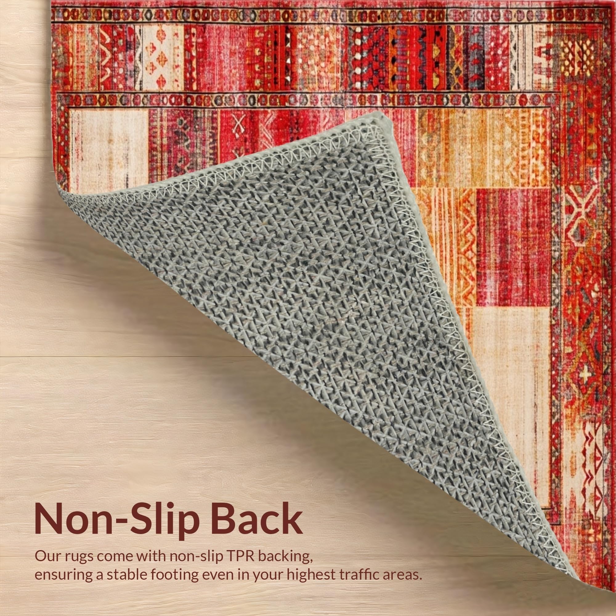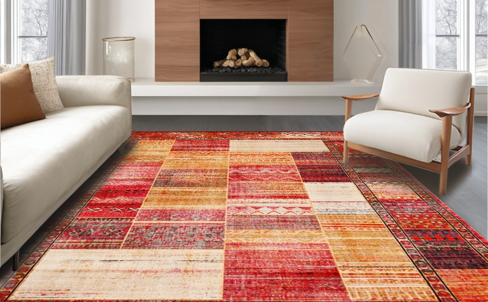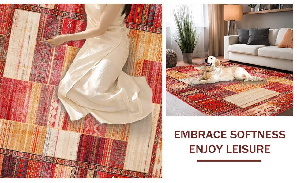 Ultra Soft Area Rug, Non Slip, Stain Resistant, Washable Area Rugs for Living Room, Bedroom, Artistic Trellis Pattern in Bold Hues(Red) Overview: