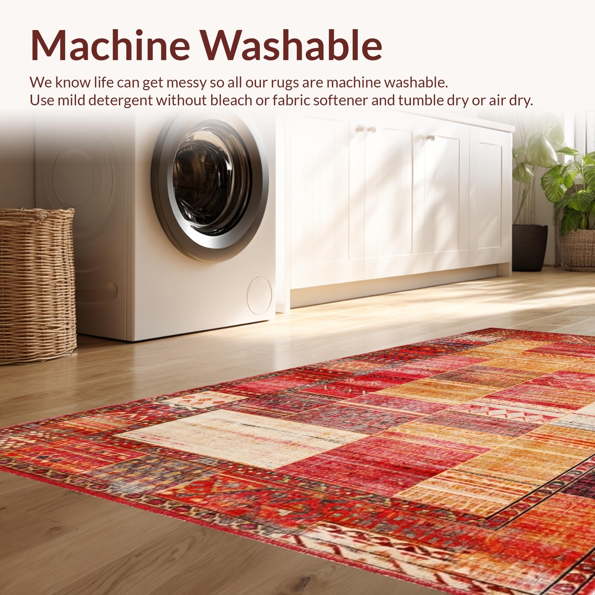- Machine Washable: Our rugs can be easily thrown in the wash machine.