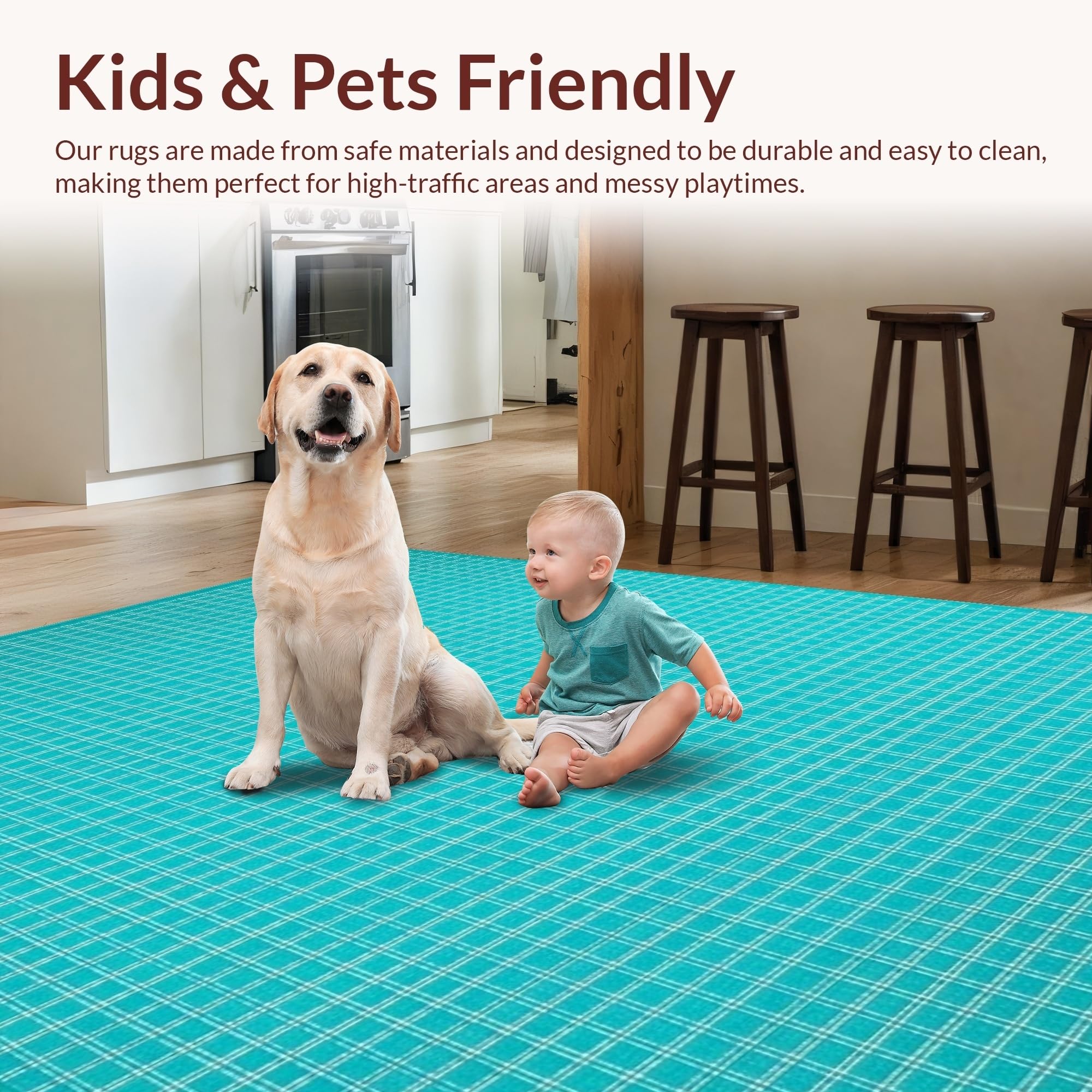 Ultra Soft Area Rug, Non Slip, Stain Resistant, Washable Area Rugs for Living Room, Bedroom, Artistic Turquoise Textured Swirls(Blue) Overview: