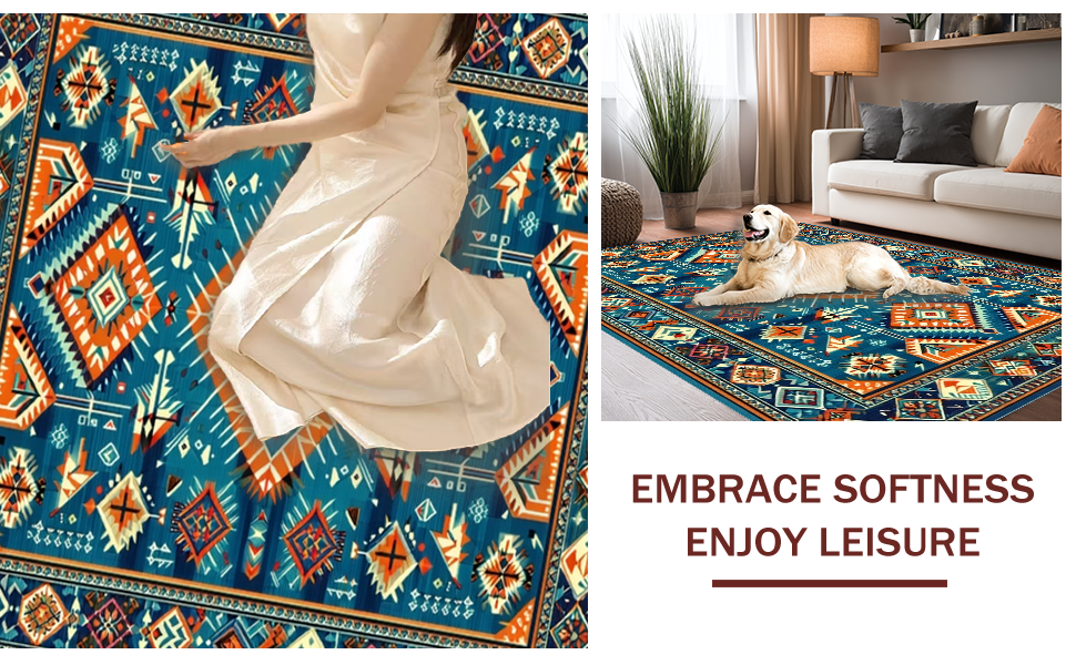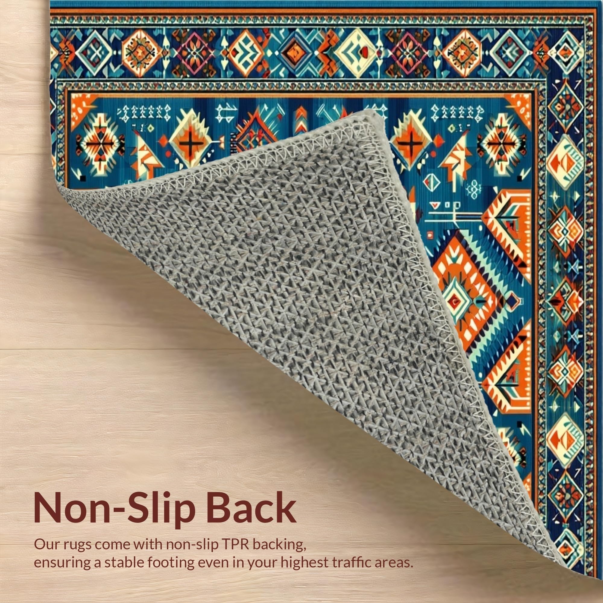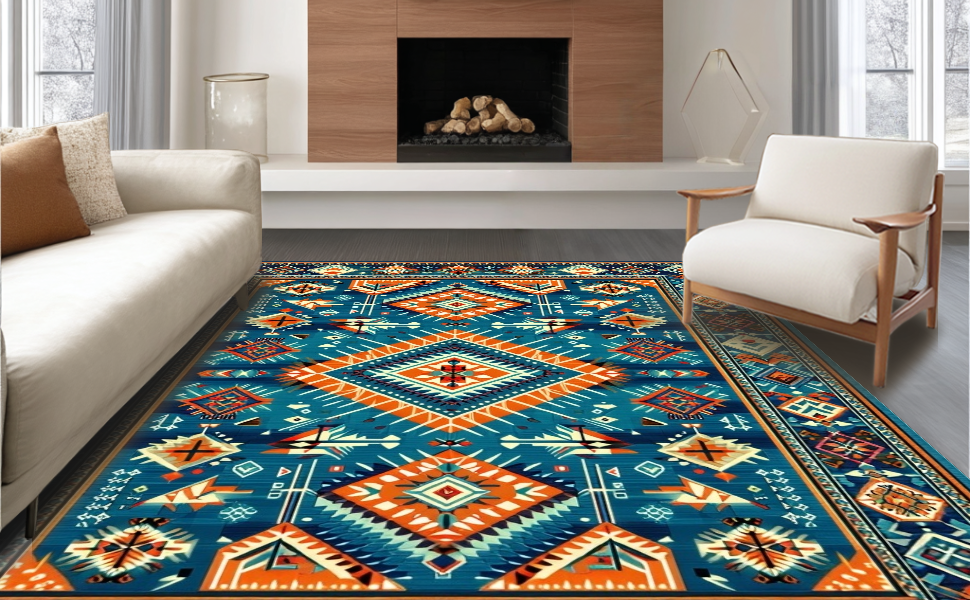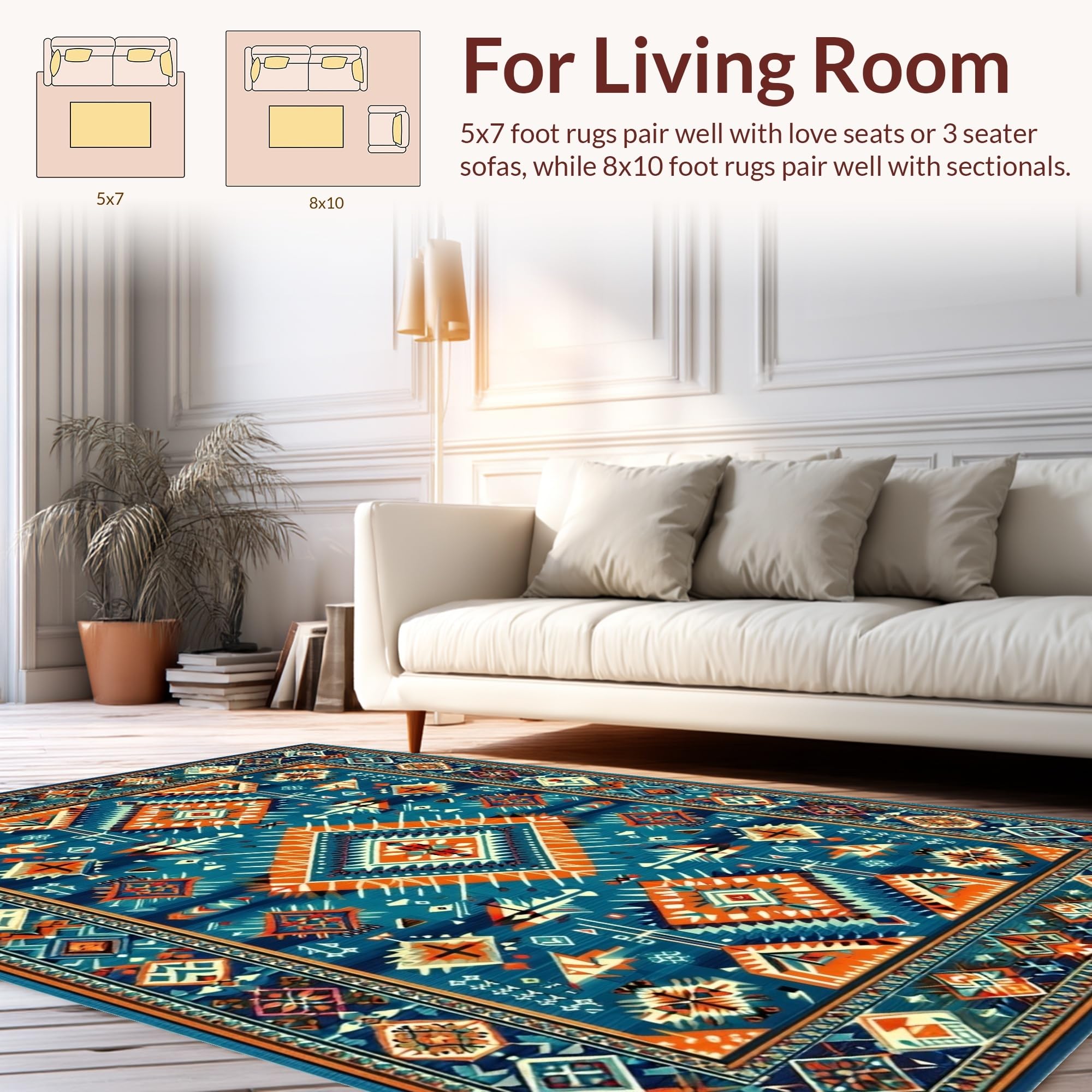 Ultra Soft Area Rug, Non Slip, Stain Resistant, Washable Area Rugs for Living Room, Bedroom, Artistic Vibrant Medallion Charm(Blue) Overview: