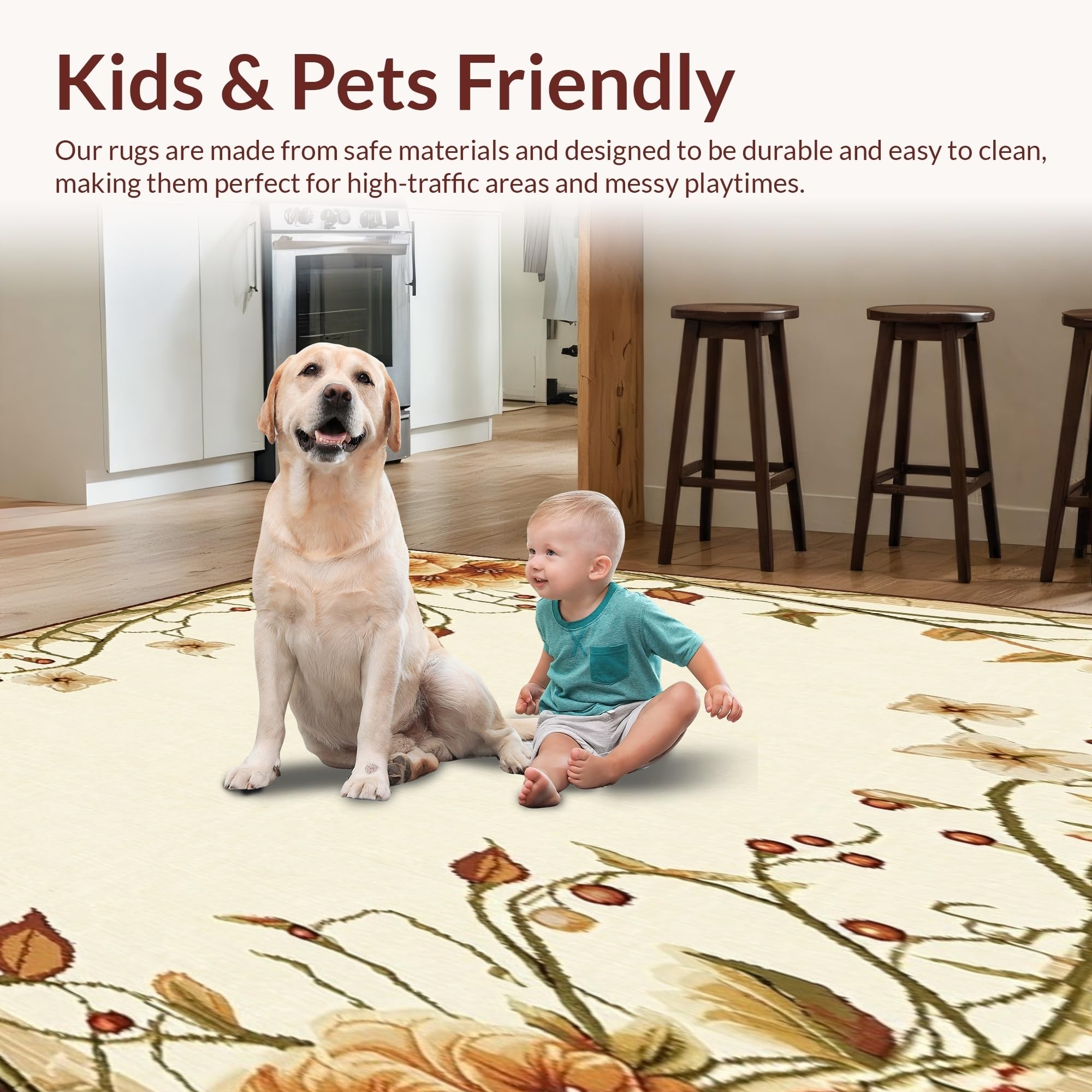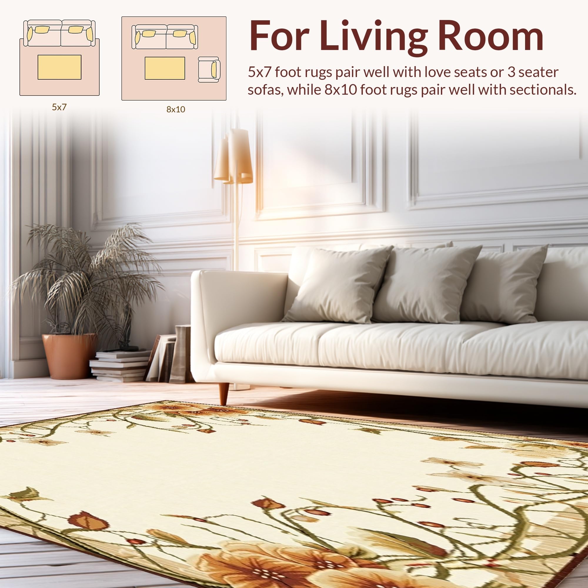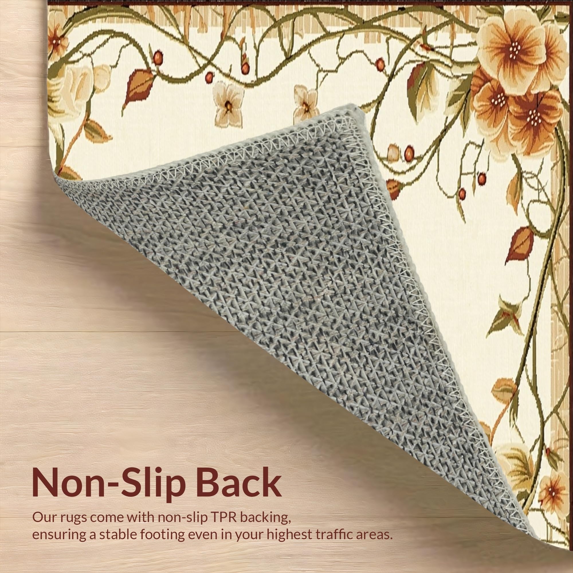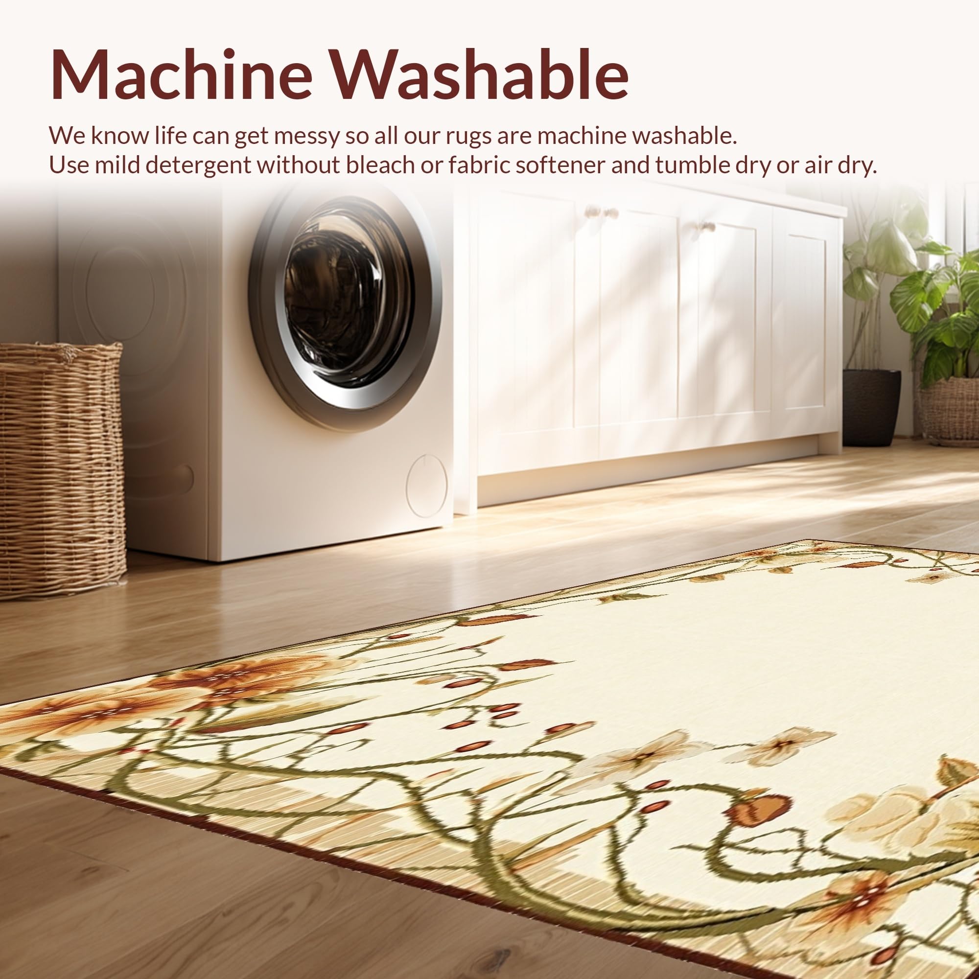 Ultra Soft Area Rug, Non Slip, Stain Resistant, Washable Area Rugs for Living Room, Bedroom, Artistic Vine & Bloom Accent with Earthy Tones for Living Spaces(Beige) Overview: