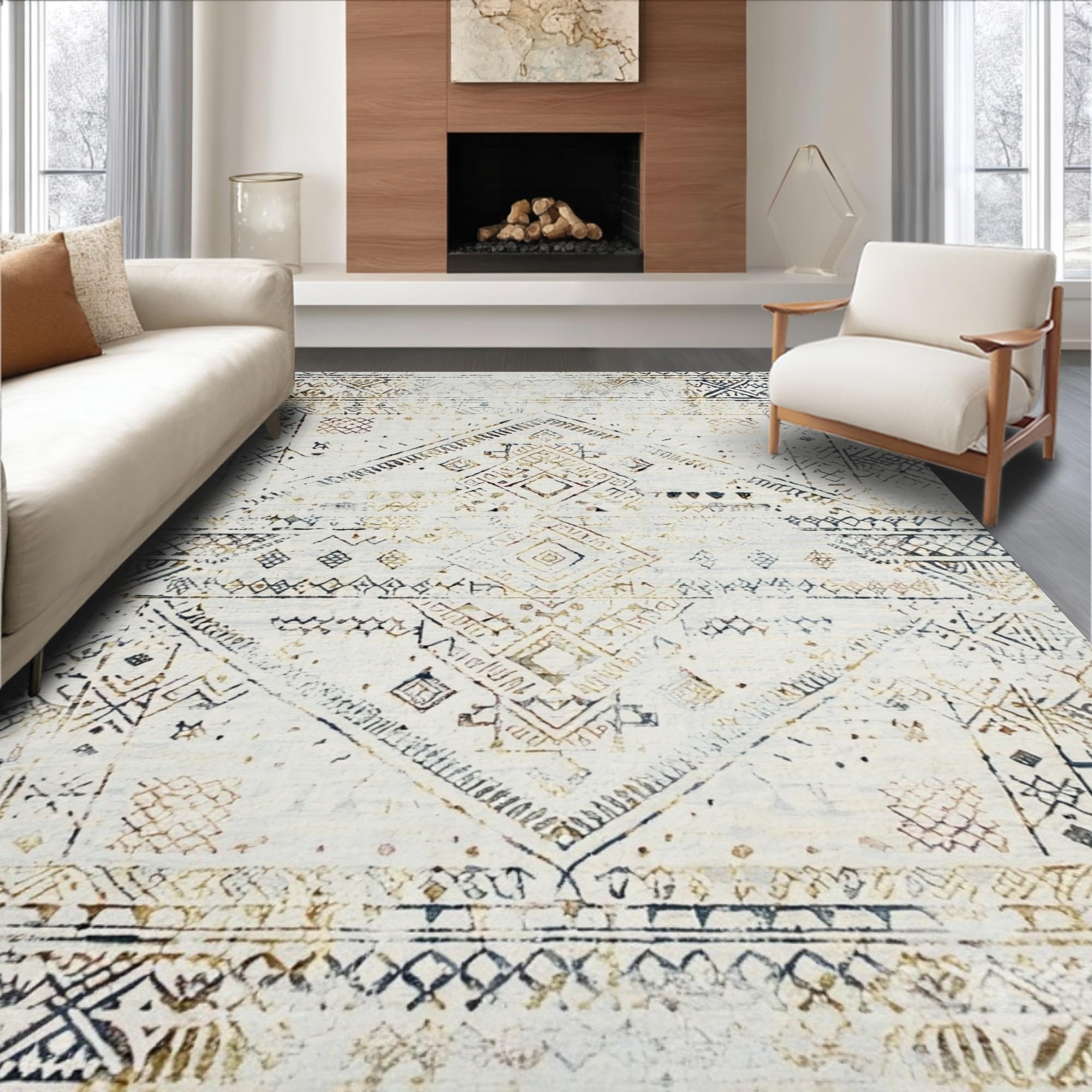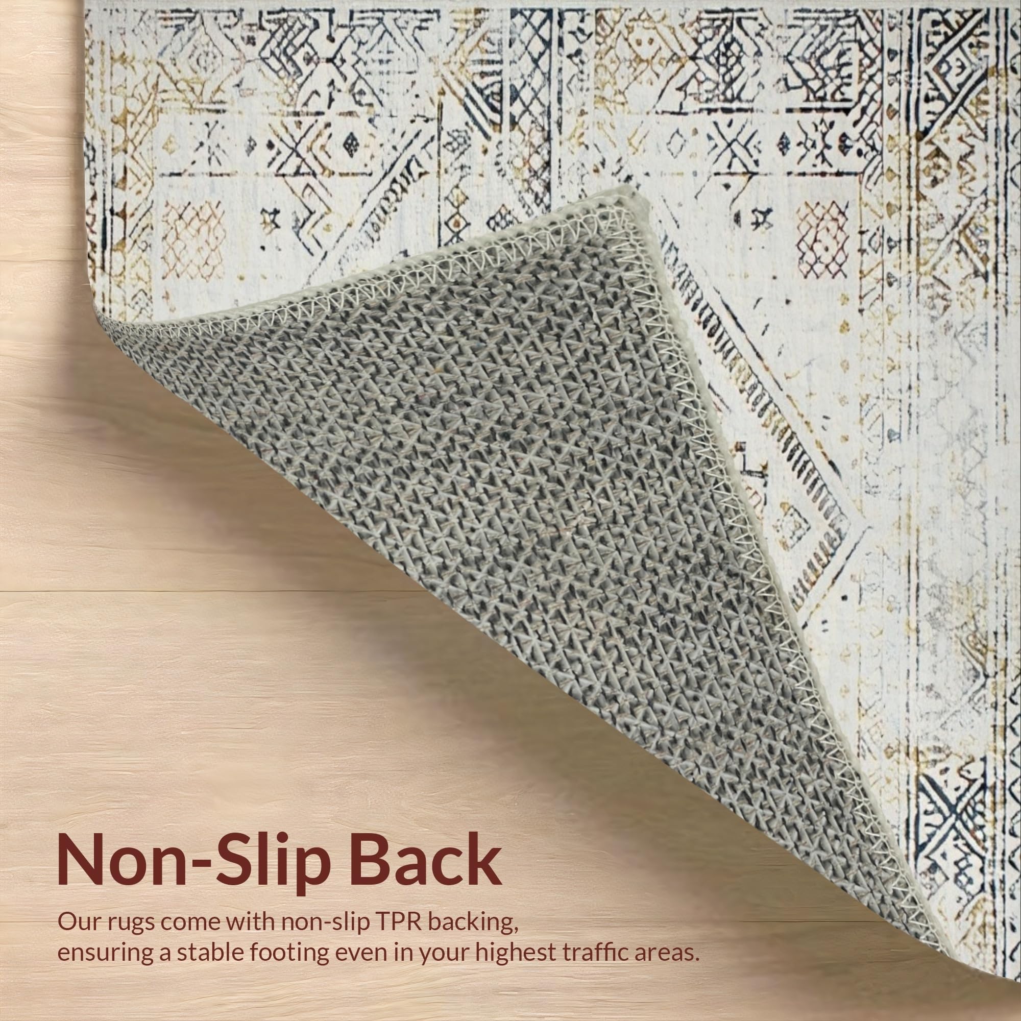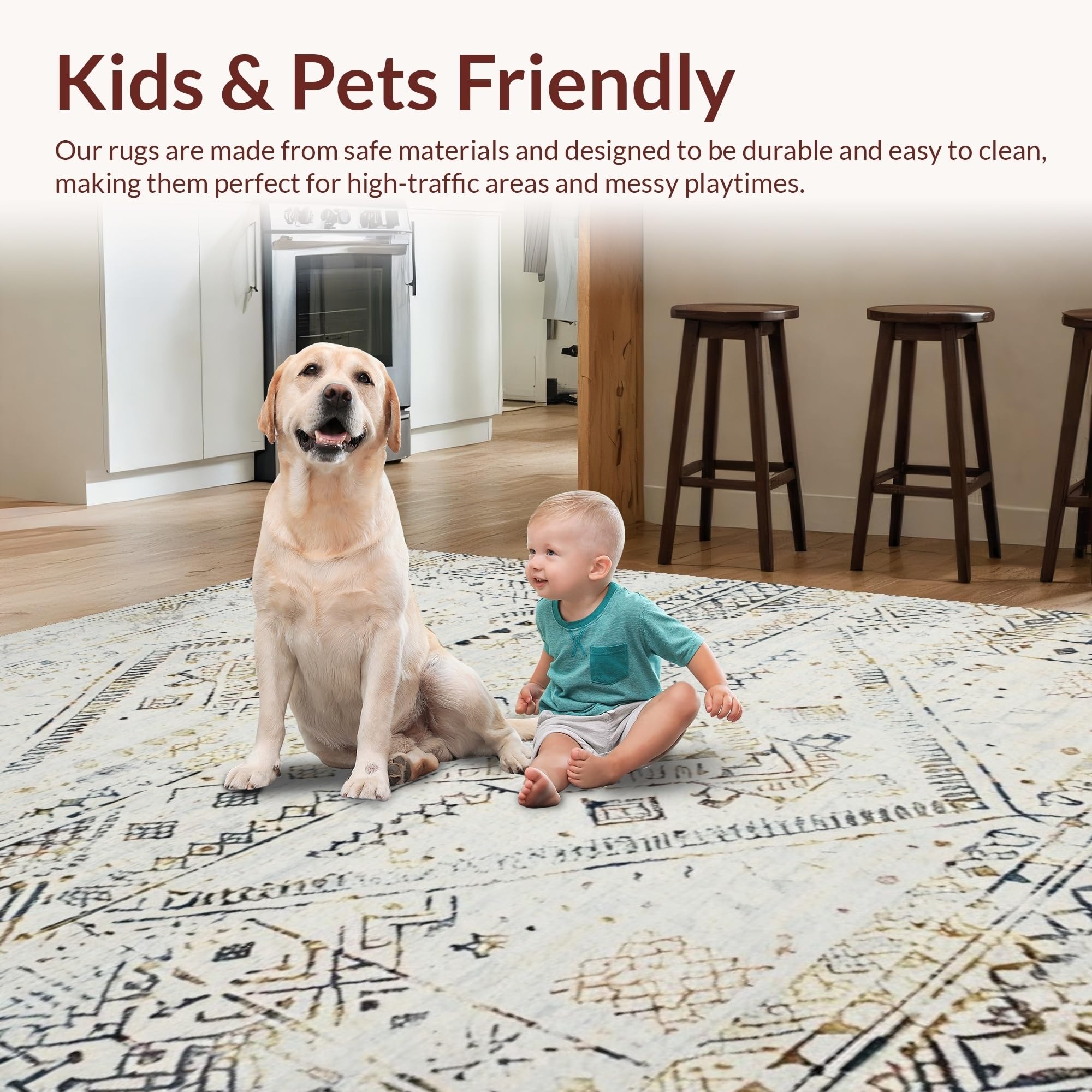 Ultra Soft Area Rug, Non Slip, Stain Resistant, Washable Area Rugs for Living Room, Bedroom, Artistic Vintage Ogee Pattern Fusion(Beige) Overview: