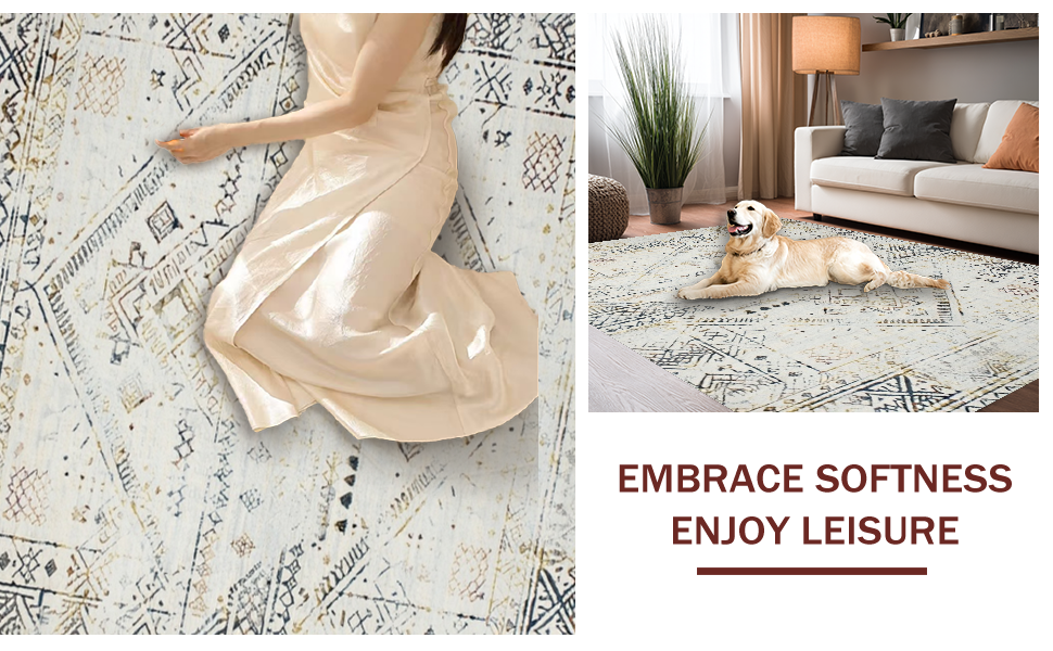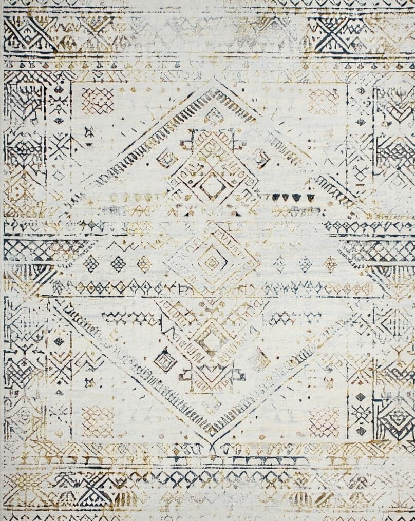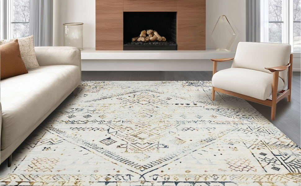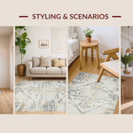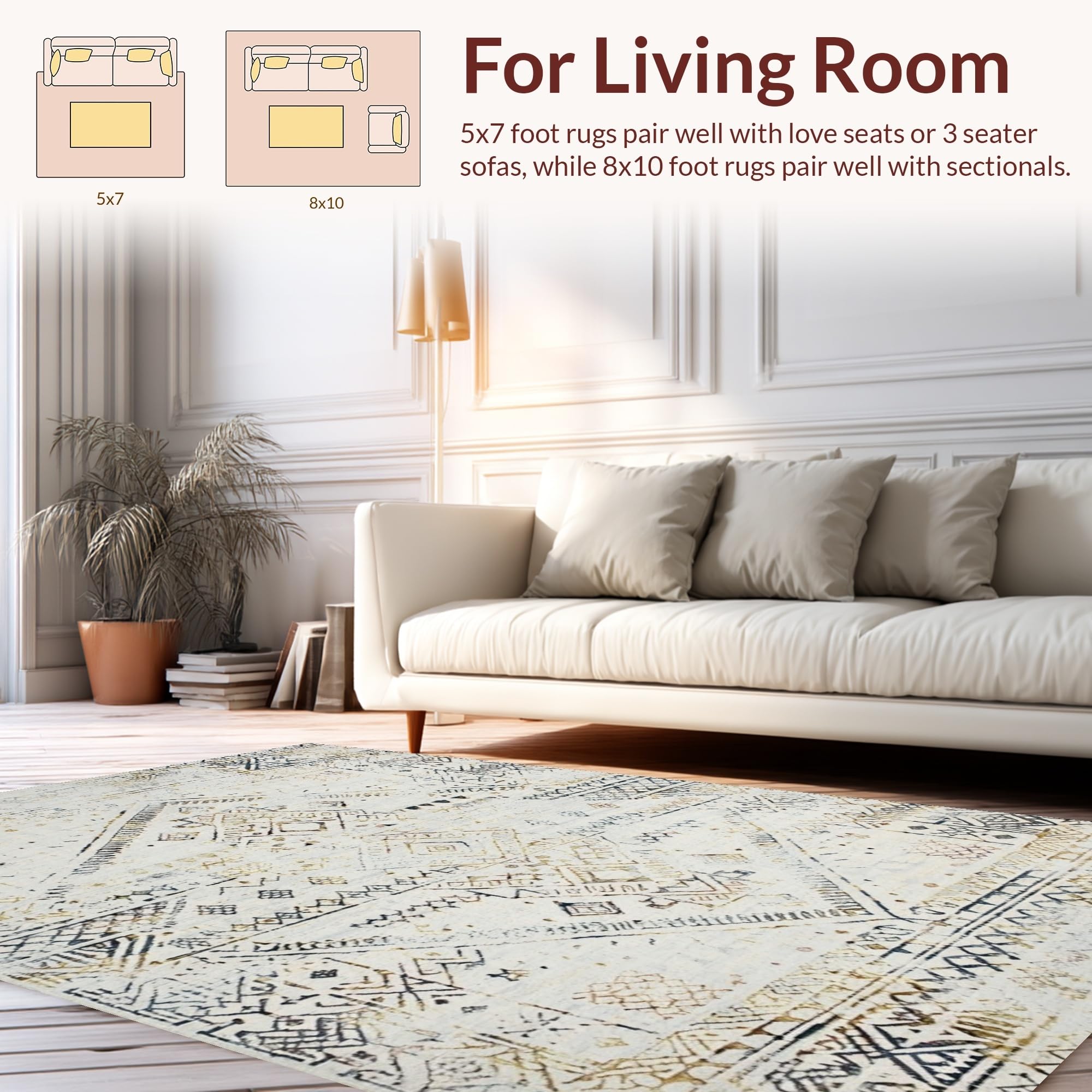 Ultra Soft Area Rug, Non Slip, Stain Resistant, Washable Area Rugs for Living Room, Bedroom, Artistic Vintage Ogee Pattern Fusion(Beige) Overview: