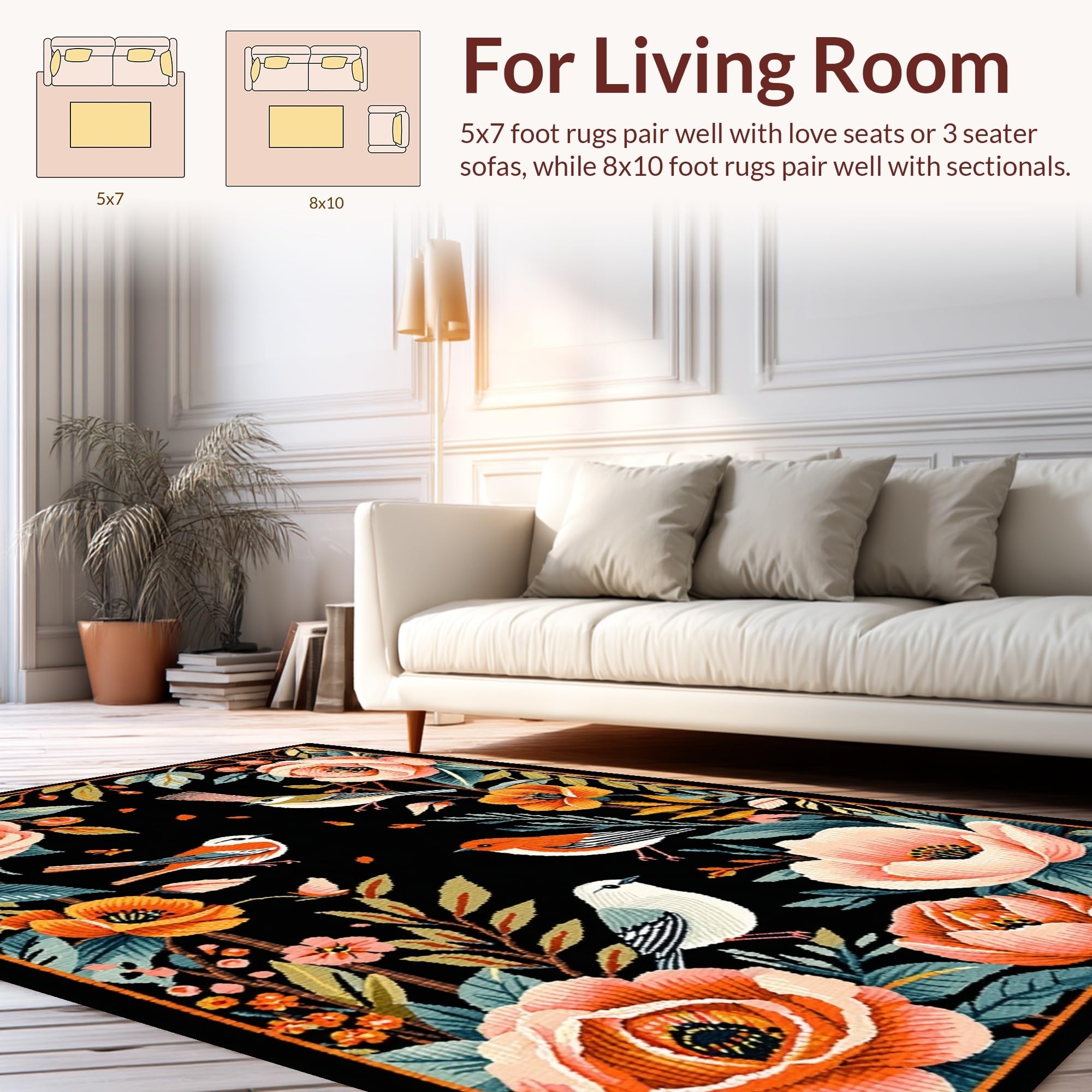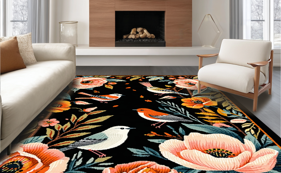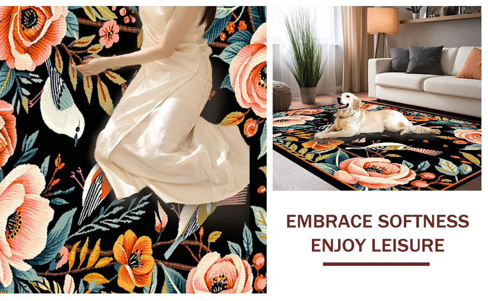Ultra Soft Area Rug, Non Slip, Stain Resistant, Washable Area Rugs for Living Room, Bedroom, Artistic Vivid Animal Print(Black) Overview: