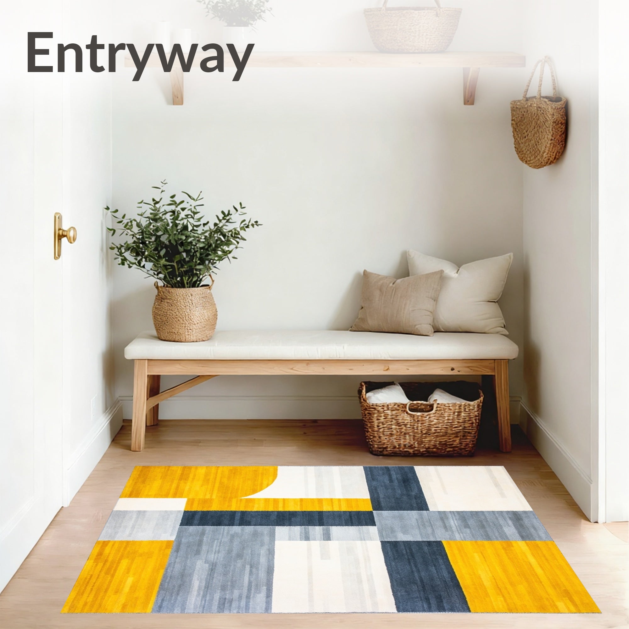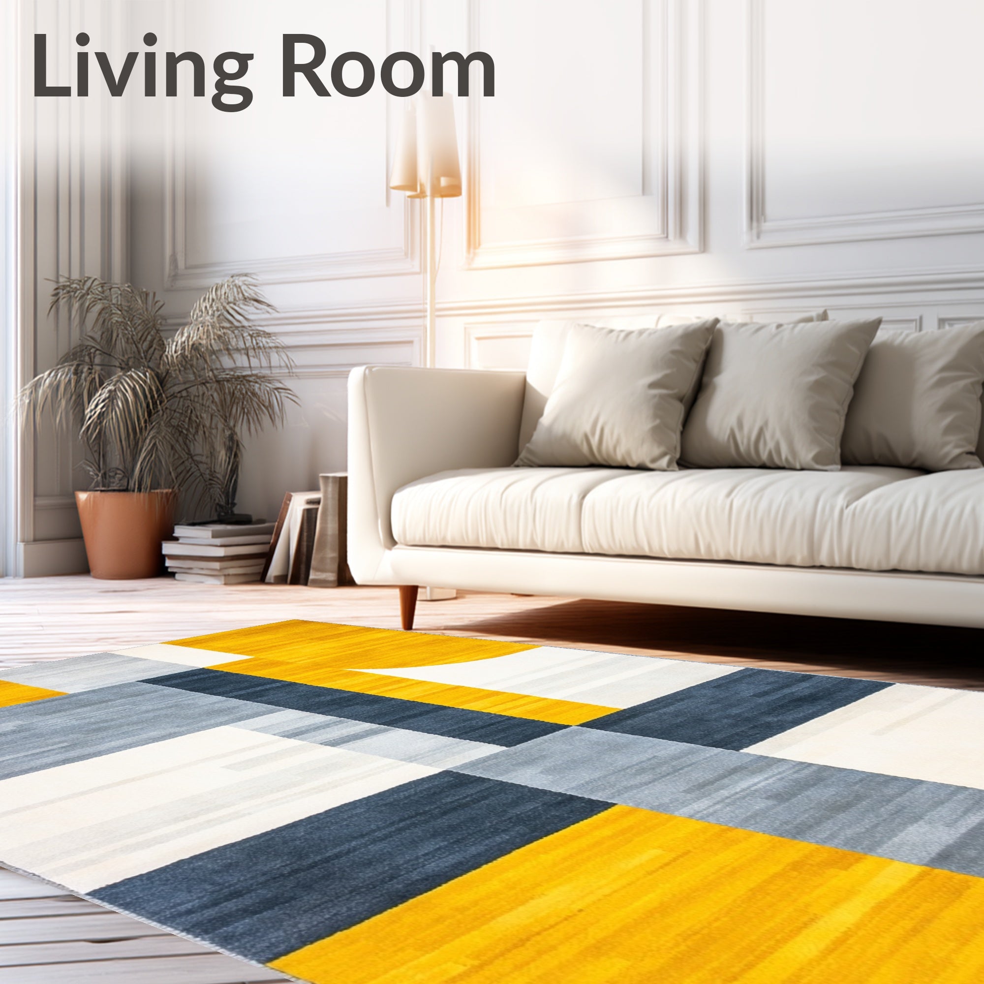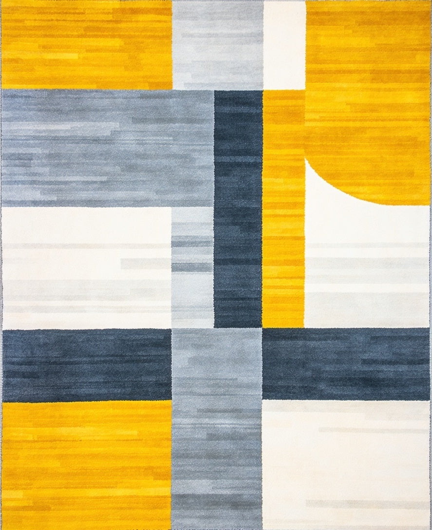 Flatwoven High Traffic Area Rug, Artistic Gray and Sunshine Yellow Color Design, Non Slip, Stain Resistant, Washable Area Rugs for Living Room, Bedroom (Yellow) Overview: