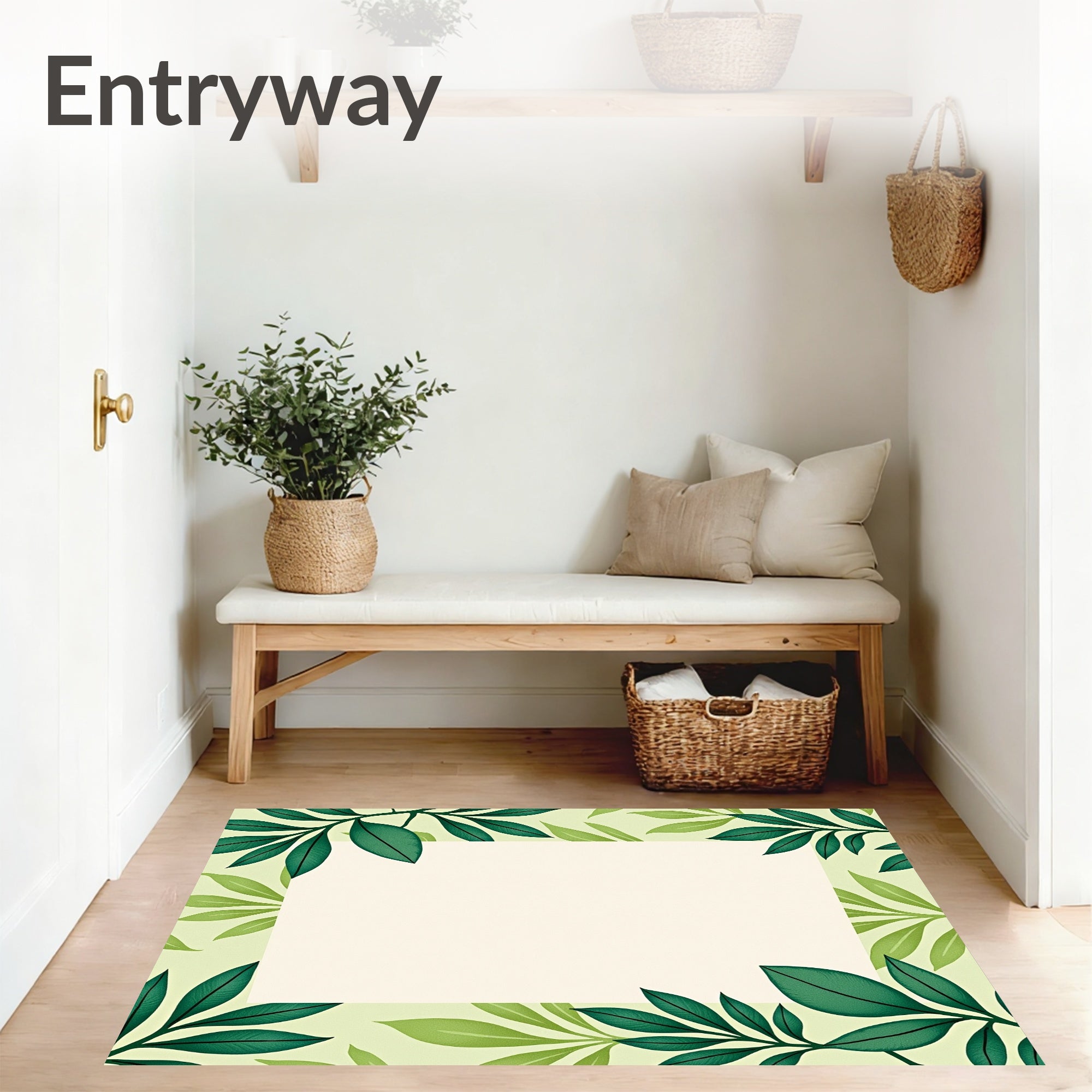 Ultra Soft Area Rug, Non Slip, Stain Resistant, Washable Area Rugs for Living Room, Bedroom, Artistic Watercolor Jungle Foliage Abstract Modern Design(Green) Overview: