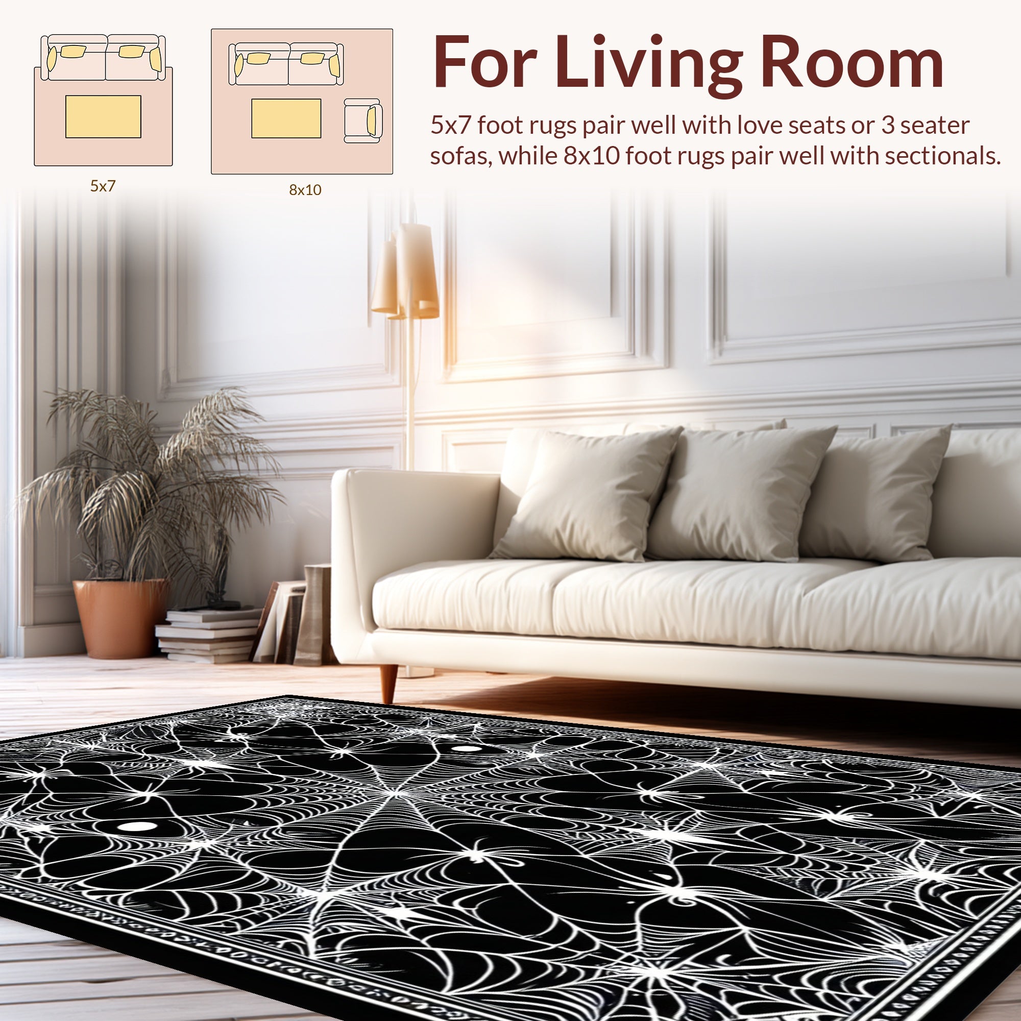 Flatwoven High Traffic Area Rug, Artistic Web Inspired, Non Slip, Stain Resistant, Washable Area Rugs for Living Room, Bedroom (Black) Overview: