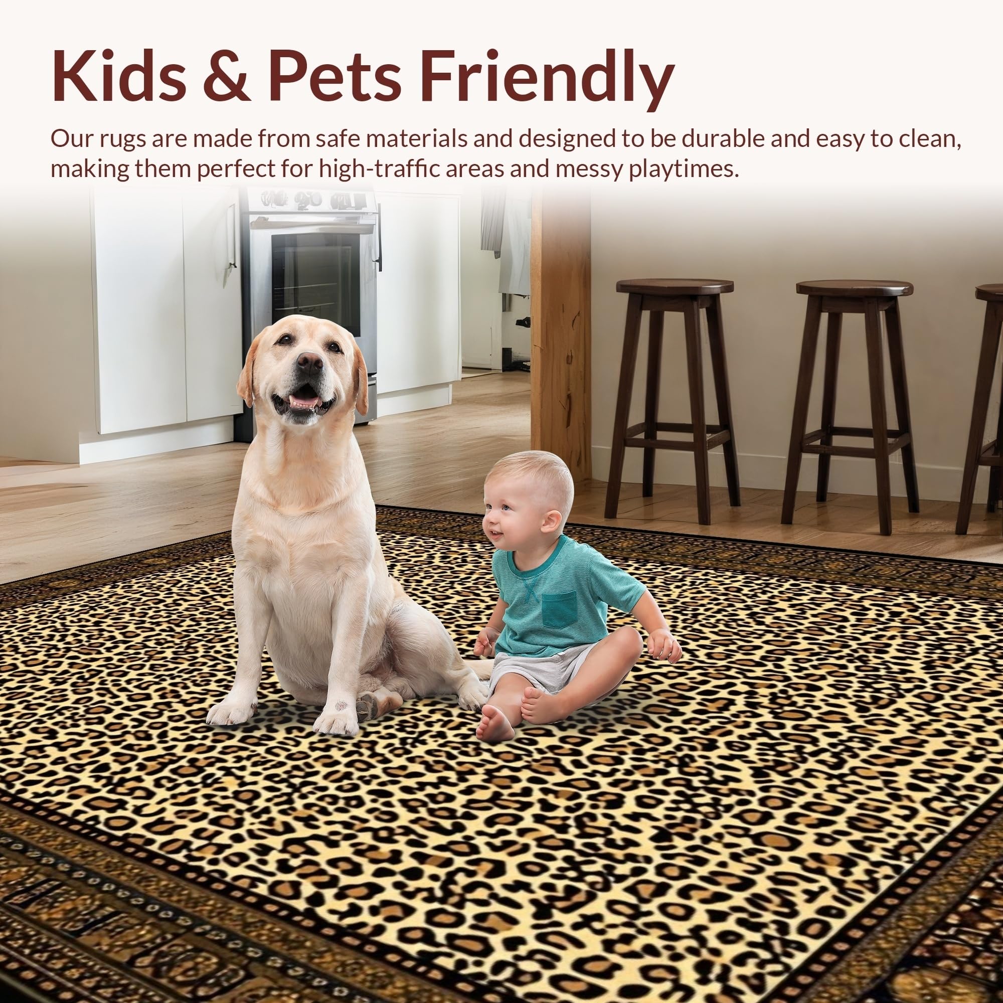 Ultra Soft Area Rug, Non Slip, Stain Resistant, Washable Area Rugs for Living Room, Bedroom, Artistic Wildlife Graphic Statement(Beige) Overview: