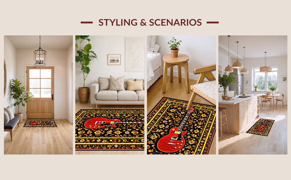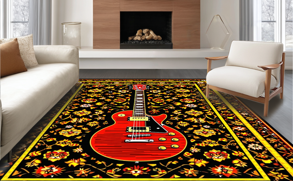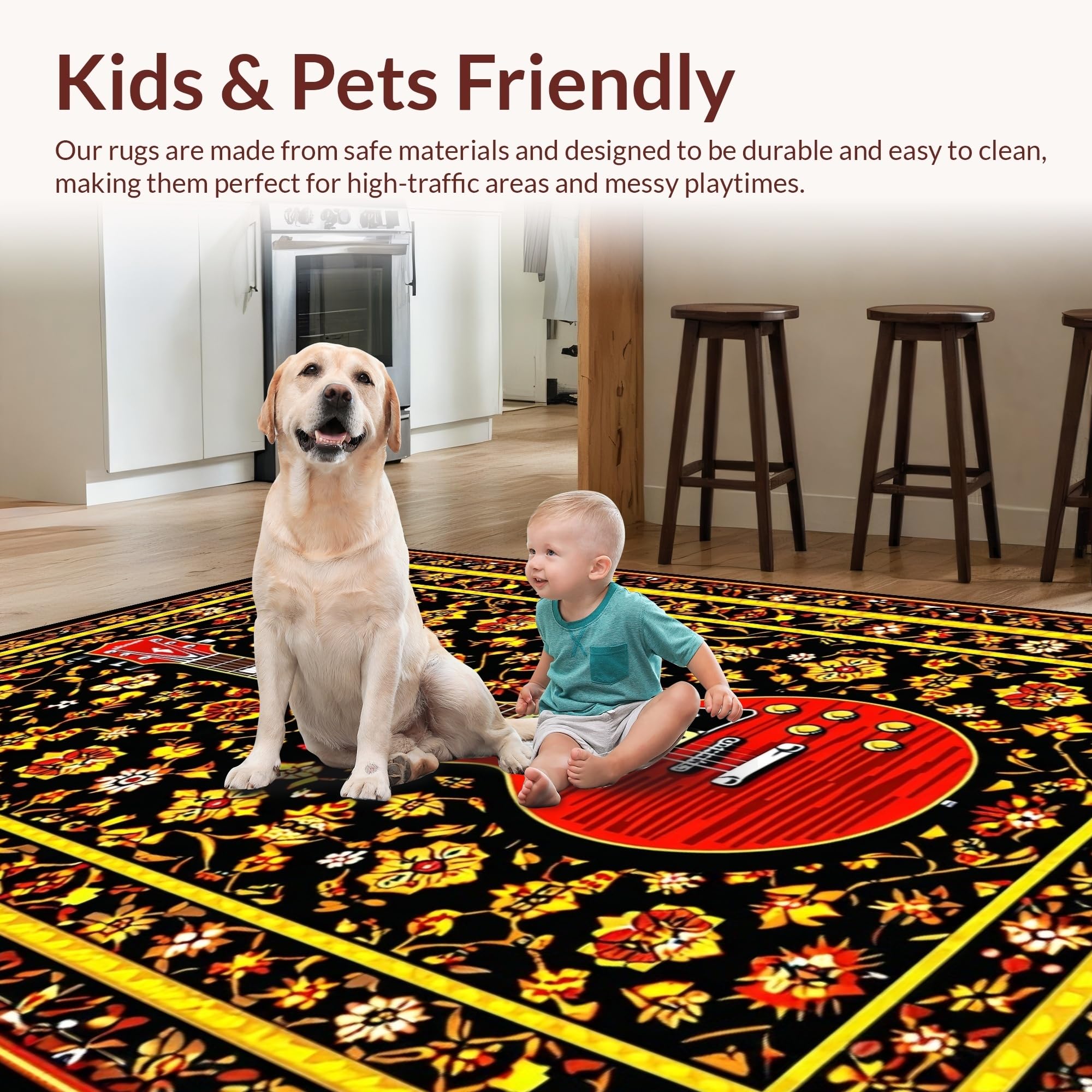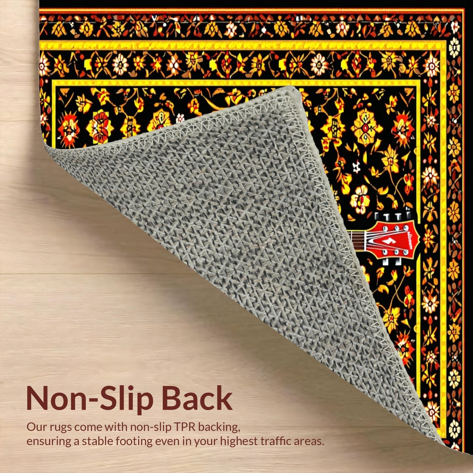 Ultra Soft Area Rug, Non Slip, Stain Resistant, Washable Area Rugs for Living Room, Bedroom, Artistic Yellow and Brown Trellis Motif(Black) Overview: