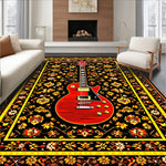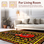 Flatwoven High Traffic Area Rug, Artistic Yellow and Trellis Motif, Non Slip, Stain Resistant, Washable Area Rugs for Living Room, Bedroom (Black) Overview: