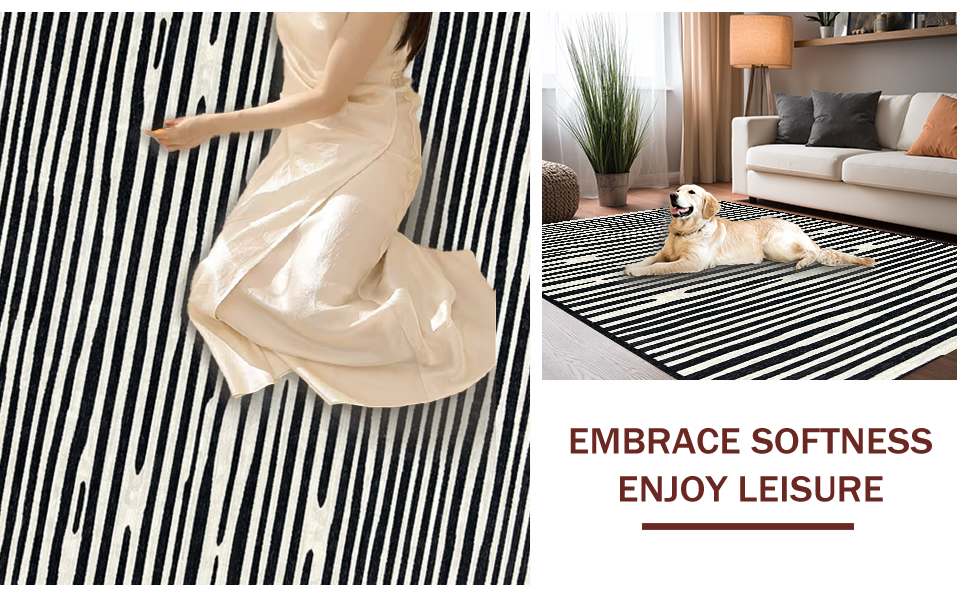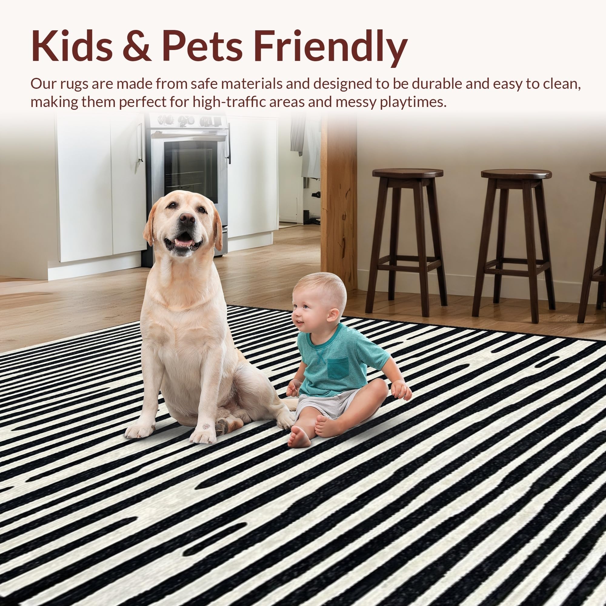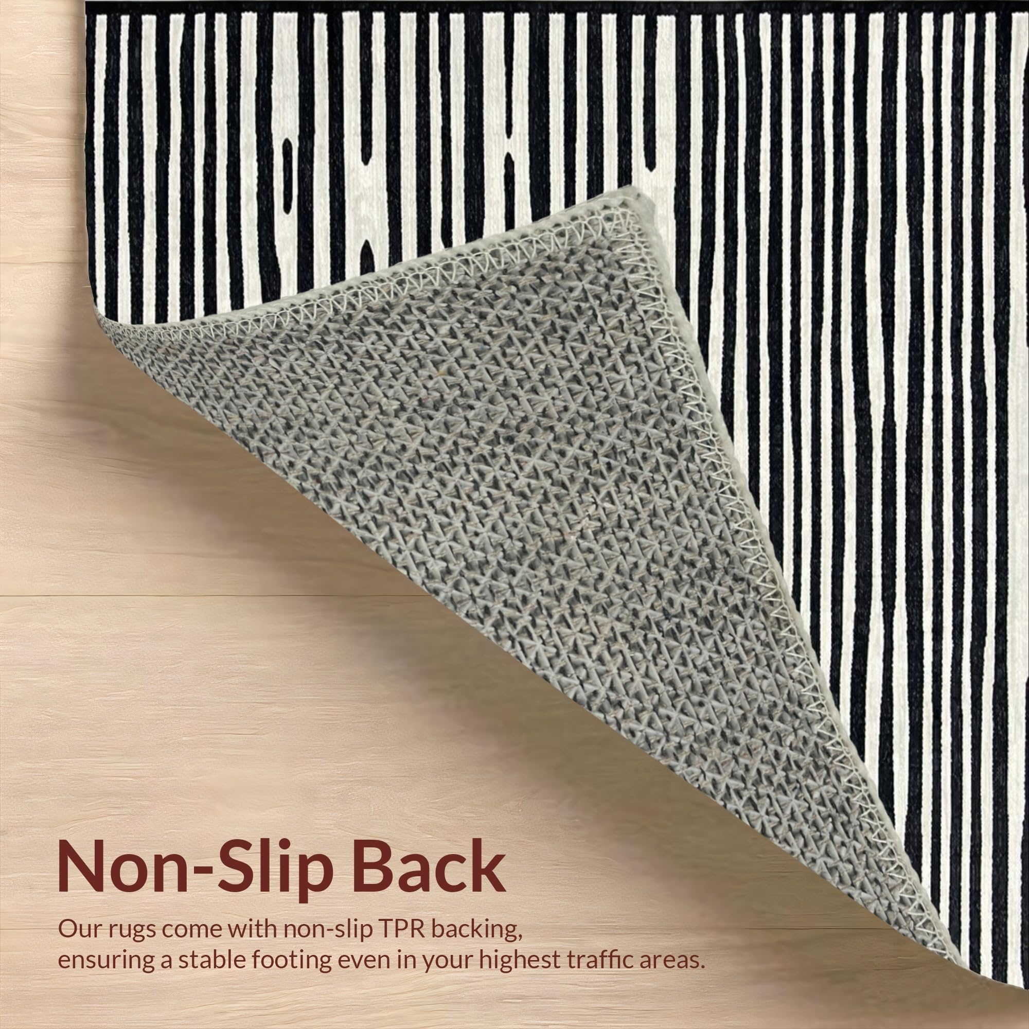Ultra Soft Area Rug, Non Slip, Stain Resistant, Washable Area Rugs for Living Room, Bedroom, Artistic Zebra Print Aesthetic Charm(Black) Overview: