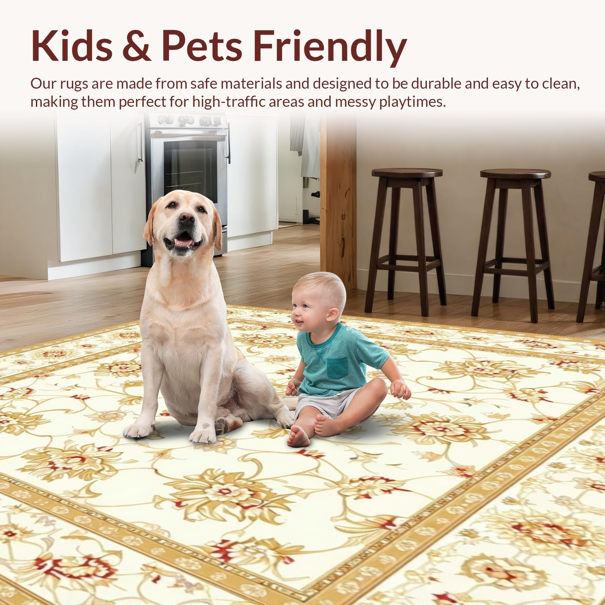 Ultra Soft Area Rug, Non Slip, Stain Resistant, Washable Area Rugs for Living Room, Bedroom, Astra Easy Clean Non Shed Traditional Beige Area(Beige) Overview: