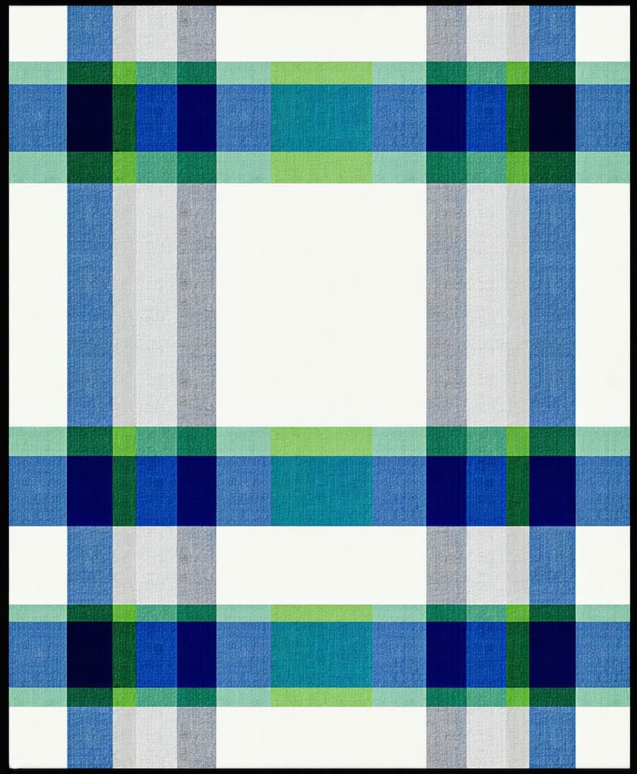 Asymmetric Blue Green and Beige Plaid Featuring Bold Linear(Blue)